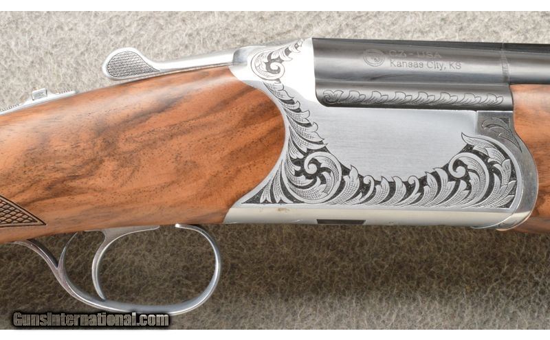 Description: This is a new in case CZ-USA Supreme Field shotgun in 12 gauge. The shotgun is in the factory case and is as new. The 28 inch blue barrel have a vent rib and ejectors. The Grade III stock shows off the grain structures that Turkish walnut is famous for. Wood of this grade is usually reserved for guns starting at 3 time the price. The receiver is one-piece CNCed with polished nickel chrome and deep relief engravings cut by hand. This shotgun is an outstanding looking firearm and comes with a full set of 5 extended chokes in the factory hard case. 12 Gauge SOLD Chambers: 3 inch Over/Under with ejectors. Metal Condition: As New in Case. Wood Condition: Very nice grade III walnut with a checkered pistol grip. ANIB. Bore Condition: As new. Barrels: 28 inch blue with a vent rib. Triggers: SST silver color trigger. Stock Dimensions: 14 3/8 inch LOP. Fore End: Checkered walnut with an engraved release. Butt Pad: Black rubber. Weight: 7 lbs. 8 oz. Sights: Single white front bead on the vent rib. Chokes: Comes with a full set of 5 extended chokes tubes. Item Location: Owatonna, MN |