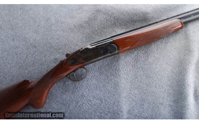 Description: This case colored action has sideplates and scroll engraving. This gun has its blemishes but has a tight action. SOLD Caliber Info: .410 Chambers: 3 Metal Condition: Rust on areas left in the white (muzzle, extractor, etc.) and on the receiver. Some handling marks. Wood Condition: Numerous dings and scratches. A chip on the Schnabel tip of the forend on the right side. Bore Condition: Some pitting. Barrels: 26" vented top and mid rib barrels. Triggers: Single Selective Stock: Round knob pistol grip. Stock Dimensions: 14 3/4" LOP, 1 3/8" DAC, 1 7/8" DAH Fore End: Schnabel Butt Pad: Maker's butt pad. Weight: 6 lbs. 2 oz. Sights: Front bead. Chokes: Fixed - IC/Mod Item Location: Gonzales, LA |