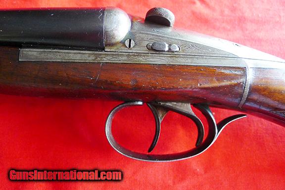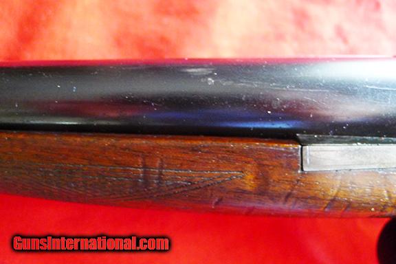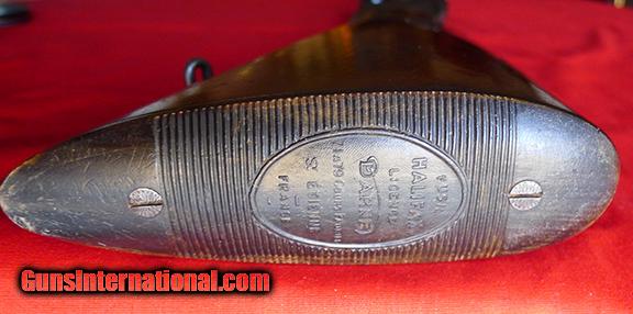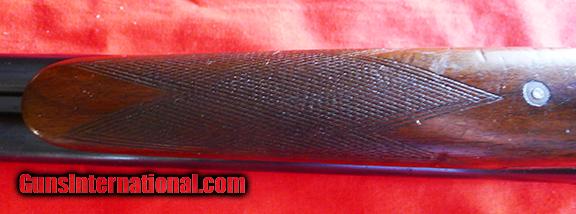 Description: The Darne shotgun is a most interesting piece of work. Most of us have never seen one, let alone shot one. They are extremely high quality in any grade. This one is in very fine condition for it's age, guessing pre-war. The conventional wisdom is that at serial #50,000 they started putting letters in front of the number. This one contradicts that thinking as it is in the 57,000 range. Bbls are bright and shinny, no real rust or pitting, about 90% blue, perhaps 50% casehardning. No dents, one scratch on left side of bbl just forward of the action. Wood is very nice especially for a Halifax. All in all I would rate it VG-E. It weighs five lbs. 13 oz. on my scale. Bbls are 29 3/4" +. My guage shows this to have 2 3/4" chambers. This is a great quail and other bird gun. I don't know about the choke's, I'm sure they are in the coding under the bbls but I don't know how to read them. The LOP is:14", DAC is:1.750", DAB is: 2.5". As with any gun, especially one of this age, have a qualified gunsmith inspect it to make sure it is safe to fire. Please be sure this is the gun for you. I don't want to send it more than once! Any questions, please call me at 479-253-5008 SOLD Curio/Relic: Yes |