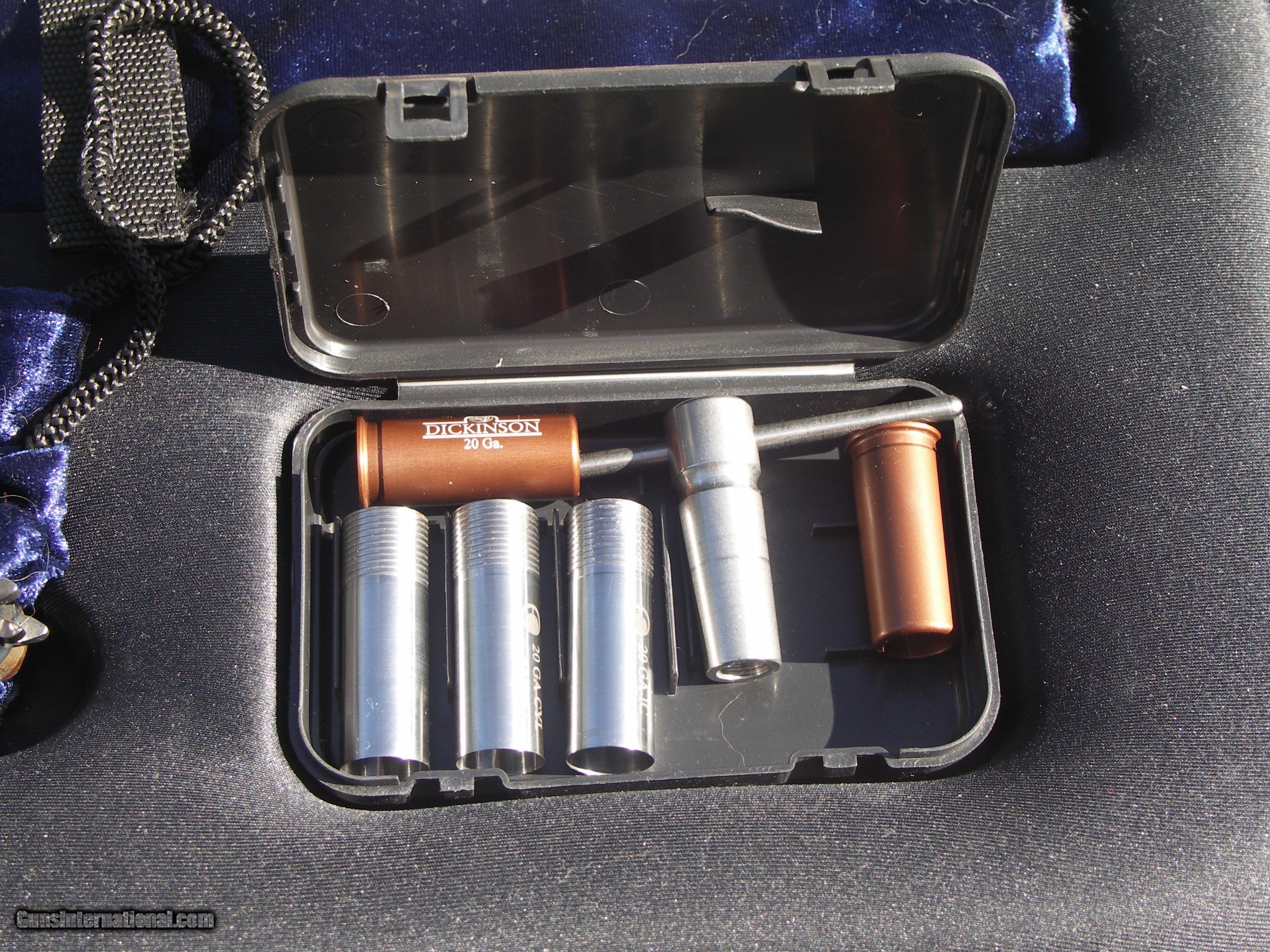 Description: This is a new in the box Georgous 20 Gauge Side by Side with choke tibes. UNFIRED. Includes a semihard travel case and the original box. Made in Turkey. 28 inch barrels. Double triggers. Tang safety. 5 Choke tubes and wrench. English straight grip stock. Color case hardened receiver. S/N TRM0128, Includes manual and Warantee card. SOLD Manufacturer: DICKENSON ARMS Model: Plantaton Serial Number: TRM0128 Barrel Length: 28 Caliber Info: 20 Gauge Chambers: 3" Chambers Ejectors: Automatic Condition: As new unfired Metal Condition: NEW Wood Condition: NEW Bore Condition: NEW Barrels: 28 inch Barrel Type: Side by Side Action: Side Lock Triggers: Double Gauge Info: 20 Gauge Stock: English Straight Stock Dimensions: 16-1/2 x 1-3/8 Stock Comb: 1-1/2 inch Stock Heel: 2-1/4 inch Fore End: Splinter Butt Pad: Checkered LOP: 14-3/4 Rib: Solid Matt Finish: Blued Weight: 6-1/2 Pounds Sights: Single Brass Bead Chokes: 5 Tubes Engraving: basic Extras: Original Box Case: Semi- Hard Item Location: WI |