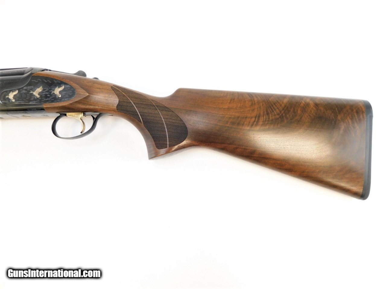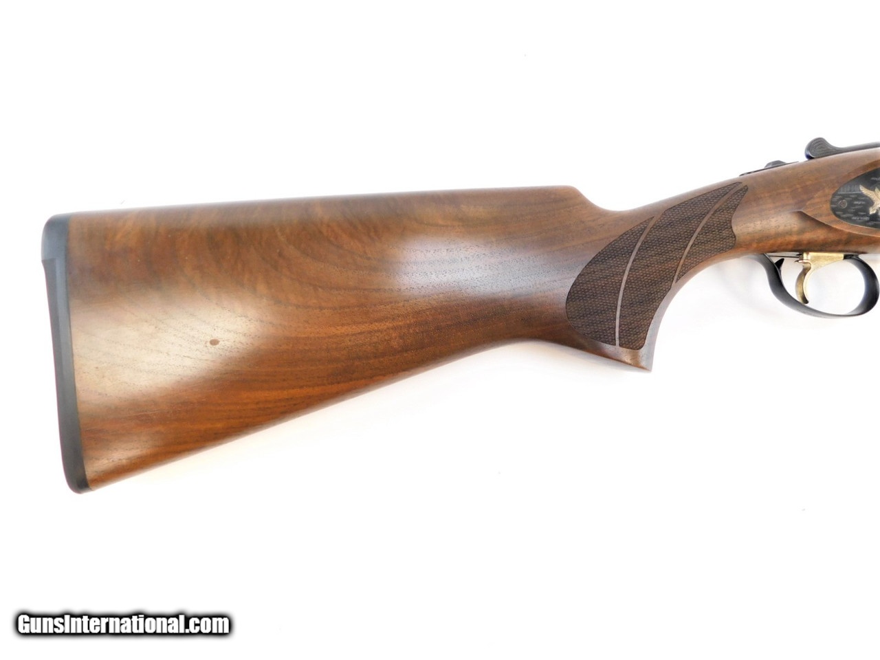 Description: Manufacturer: Dickinson Arms Model: 712 Elasso - Demo Model Action: Over/Under Caliber: 12 Gauge, 2-3/4", 3" Chamber Capacity: 2 Rounds Barrel: 28" Receiver: Aluminum, Black - Gold Duck Engraved Trigger: Single Features Ejectors Safety: Manual Stock: Checkered Walnut Pistol Grip Forend: Checkered Walnut Sight: Brass Bead Chokes: Full, Improved Modified, Modified, Cylinder, Improved Cylinder Length of Pull: 14.50" Overall Length: 45.5" Weight: 7.7 lbs This firearm was displayed in a demo expo by Dickinson Arms. This shotgun is Brand New and may have been fired outside the factory for demo purposes. These models may have extremely minor handling marks. Any handling marks or blemishes will be pointed out with red arrows in the pictures above. Pictures above are of the actual firearm you'll be receiving. SOLD |