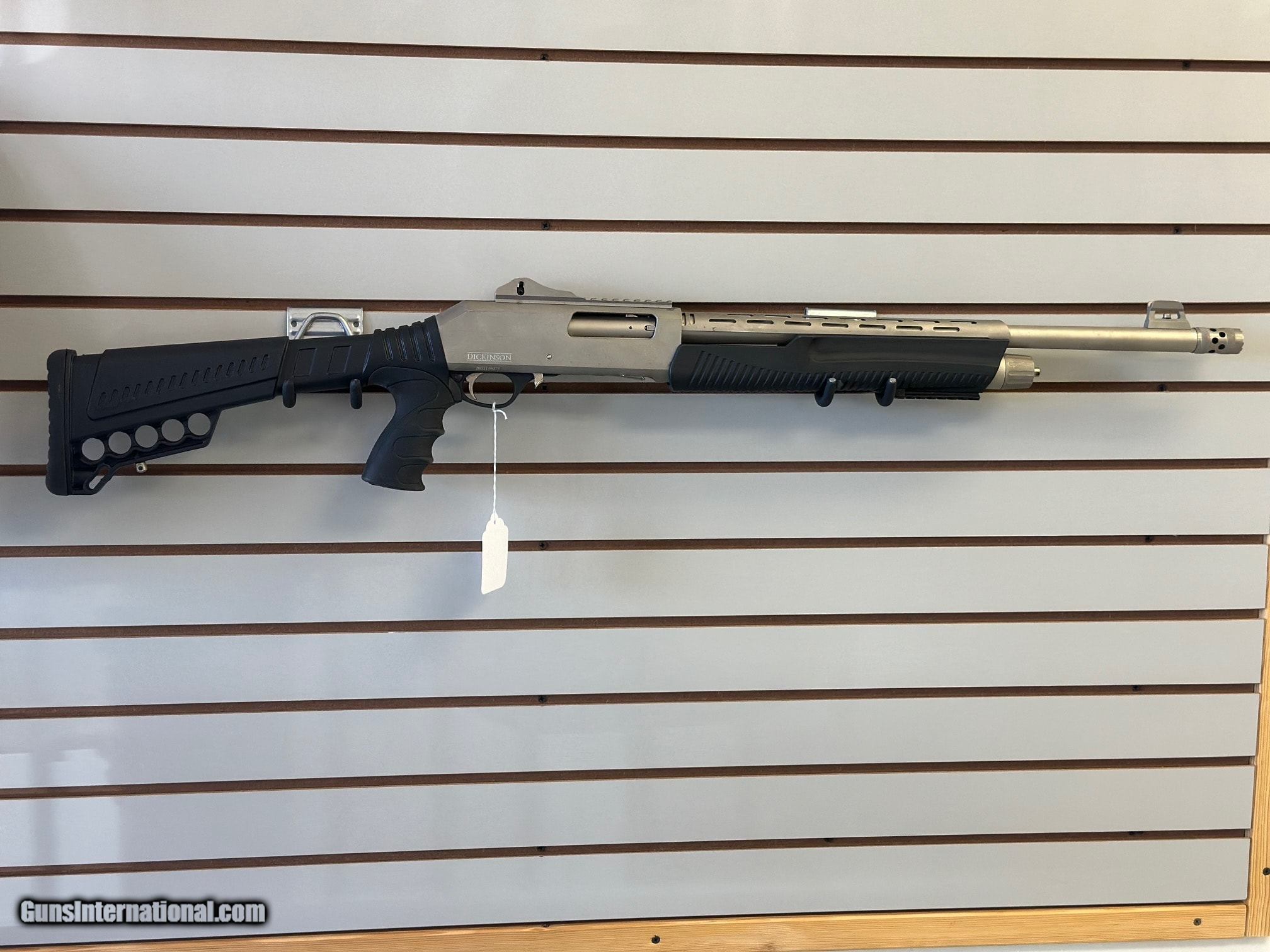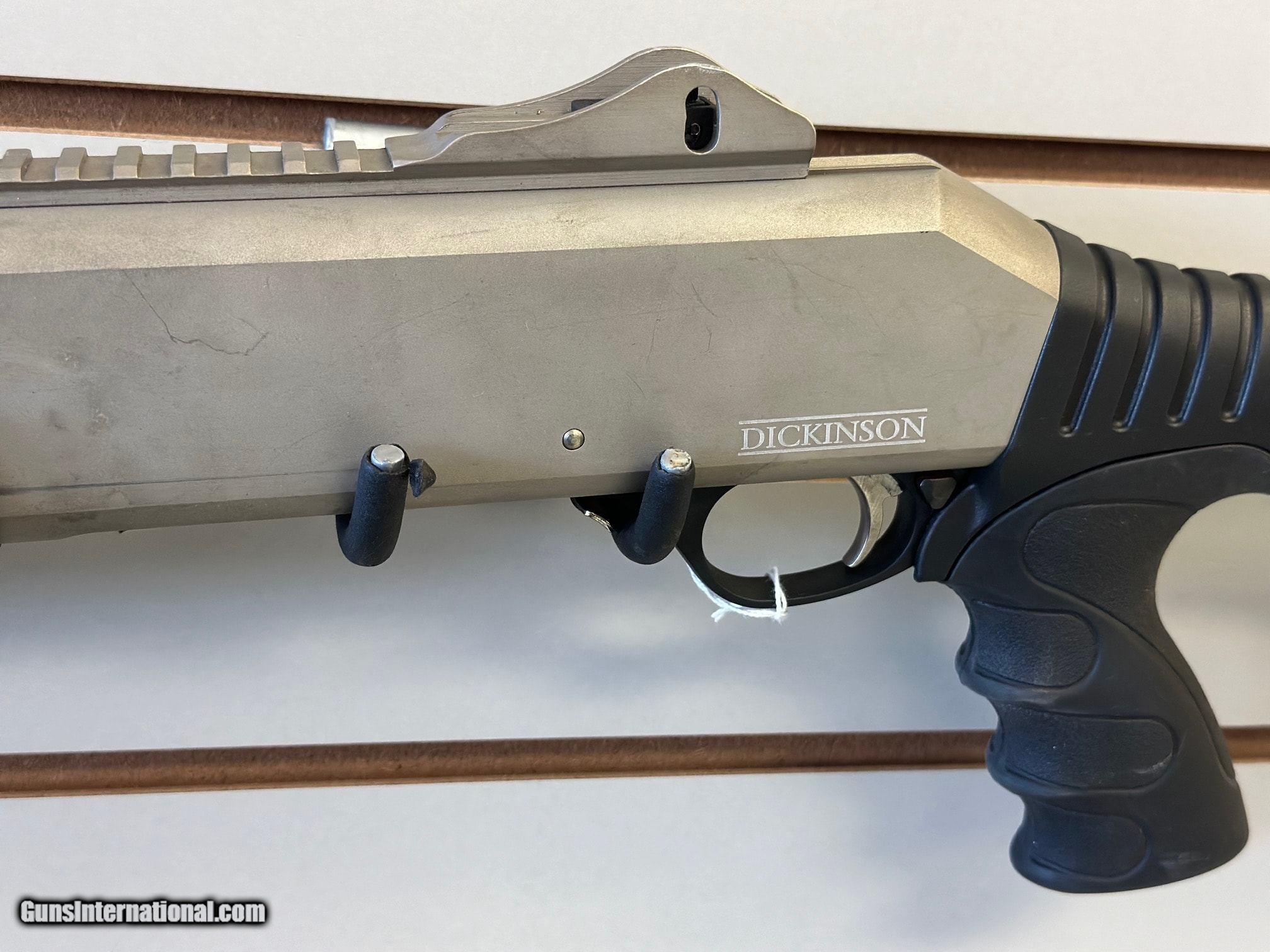 Description: Guns Listing ID: 1062538 Dickinson® Shotguns are specifically engineered to utilize as few mechanical parts as possible, and less moving parts means reliable operation when you need it most. The Dickinson® Commando Shotgun features a 18.5\" barrel for ultimate maneuverability making it perfect for home defense. It also features a unique and really cool looking muzzle brake to help minimize recoil. A ghost ring rear sight delivers lightning-fast target acquisition while leaving your objective in clear focus, and a Picatinny rail atop the receiver and on the forend is ideal for mounting accessories. This fine shotgun is finished off with a highly resilient marine finish. This shotgun is the total package, and at a price that won‚‚t break the bank. 18.5\" barrel with removable muzzle brake Highly resilient ultra durabel marine finish Synthetic stock with shell holders Thick recoil pad for comfort Finger groove pistol grip Ghost ring rear sight Picatinny rails on top of receiver and on forend Heat shield included Fixed cylinder bore Shotgun comes with black hard case SOLD Manufacturer: DICKINSON ARMS Model: COMMANDO Condition: Used - Non-Certified Barrels: 18.5 BARREL Gauge Info: 12 GA Finish: NICKEL |