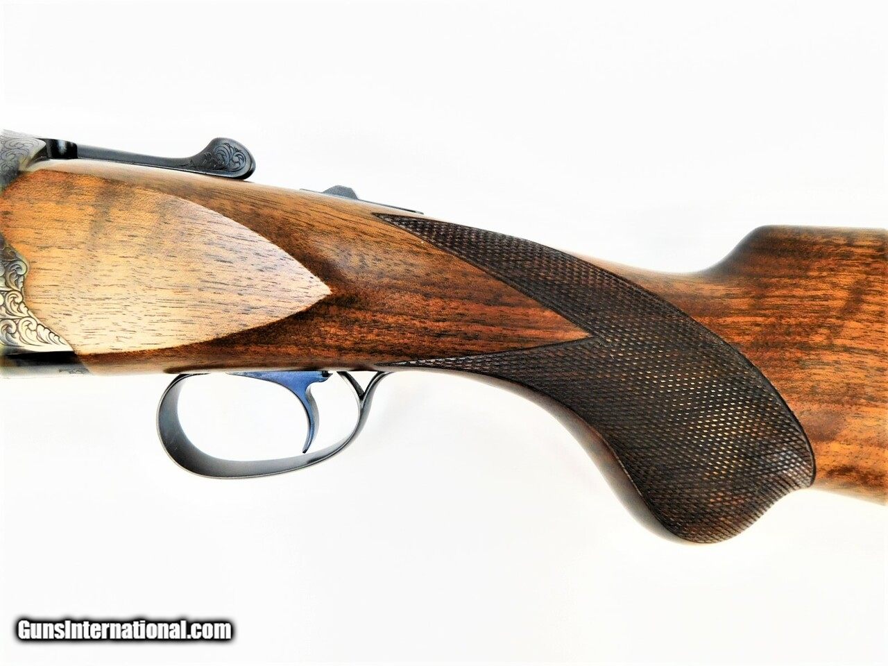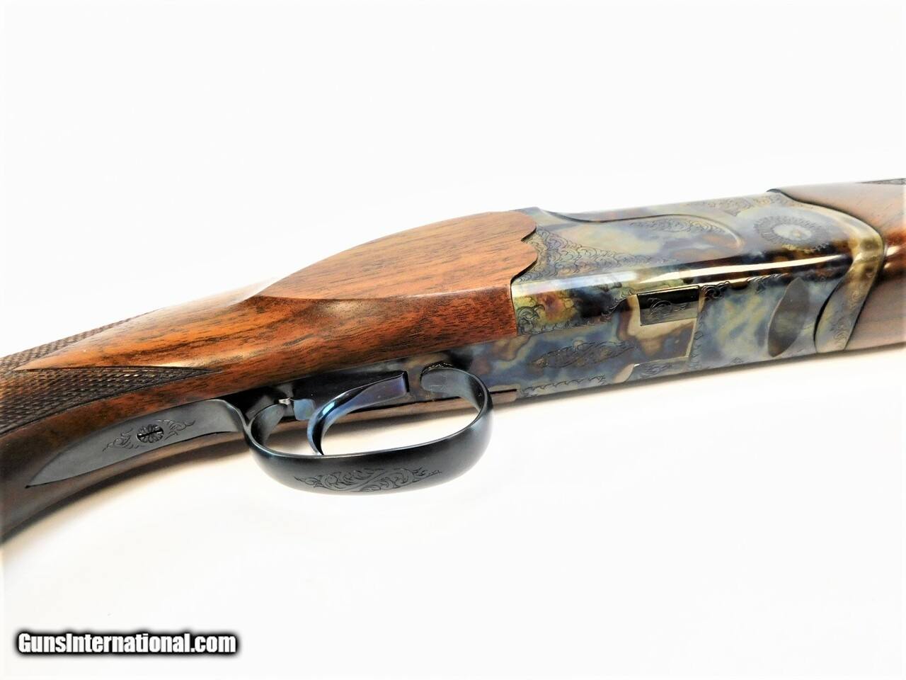 Description: Manufacturer: Dickinson Arms Model: Custom Elite Series - Demo Model Action: Over / Under Caliber: 12 Gauge, 3" Chamber Capacity: 2 Rounds Barrel: 26" Blued Receiver: Color Case Hardening, Hand Engraved Trigger: Single Safety: Manual Stock: Turkish Walnut, Pistol Grip, Hand Rubbed Oil Box/Lock - Ejector Forend: Beavertail, Hand Rubbed Oil Buttplate: Wood Checkered Sight: Brass Bead Chokes: Full, Improved Modified, Modified, Cylinder, Improved Cylinder Overall Length: 44" Length of Pull: 14.75" Weight: 7.45 lbs This firearm was displayed in a demo expo showing off the gorgeous wood & features of Dickinson Arms Custom Models. This shotgun is Brand New and may have been fired outside the factory for demo purposes. These models may have extremely minor handling marks. Any handling marks or blemishes will be pointed out with red arrows in the pictures above. Pictures above are of the actual firearm you'll be receiving. SOLD |