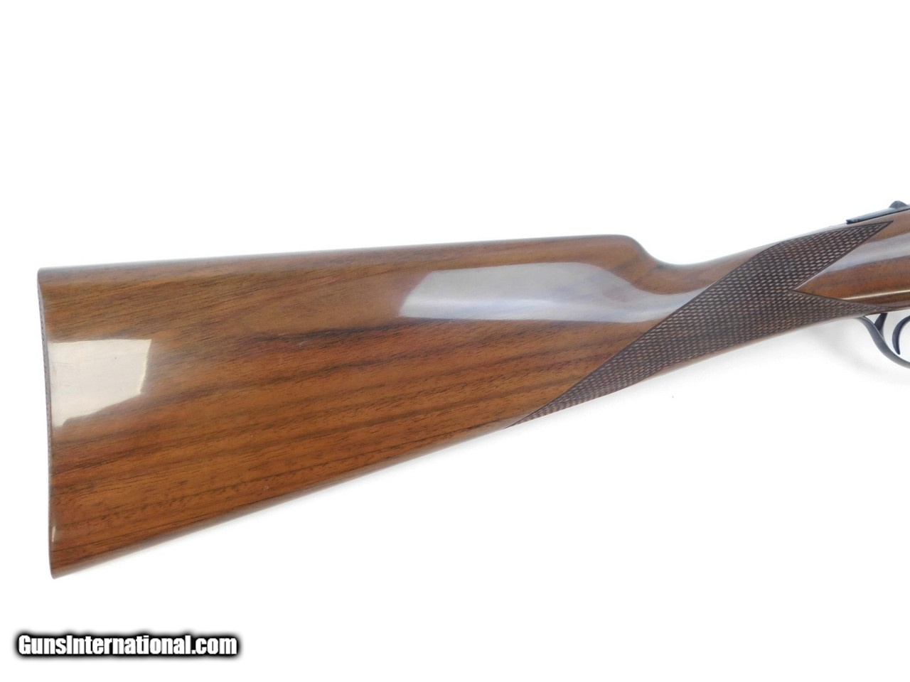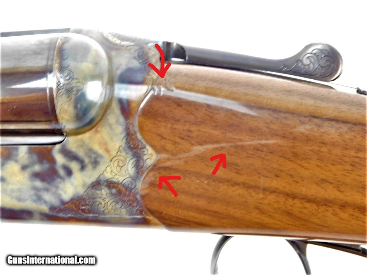 Description: Manufacturer: Dickinson Arms Model: Custom Estate - Demo Model Action: Side By Side Caliber: 12 Gauge, 3" Chamber Capacity: 2 Rounds Barrel: 28" Blued Receiver: Color Case Hardening Trigger: Double Safety: Manual Ejectors Stock: Premium Grade Turkish Walnut, English Grip Hand Rubbed Oil Forend: Standard Hand Rubbed Oil Buttplate: Wood Checkered Sight: Brass Bead Chokes: Full, Improved Modified, Modified, Cylinder, Improved Cylinder Overall Length: 45.25" Weight: 7 lbs Length of Pull: 14.75" Drop of Comb: 1.25" Drop of Heel: 2.50" This firearm was displayed in a demo expo showing off the gorgeous wood & features of Dickinson Arms Custom Models. This shotgun is Brand New and may have been fired outside the factory for demo purposes. These models may have extremely minor handling marks. Any handling marks or blemishes will be pointed out with red arrows in the pictures above. Pictures above are of the actual firearm you'll be receiving. SOLD |