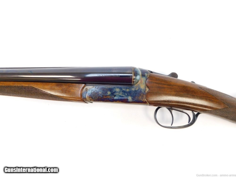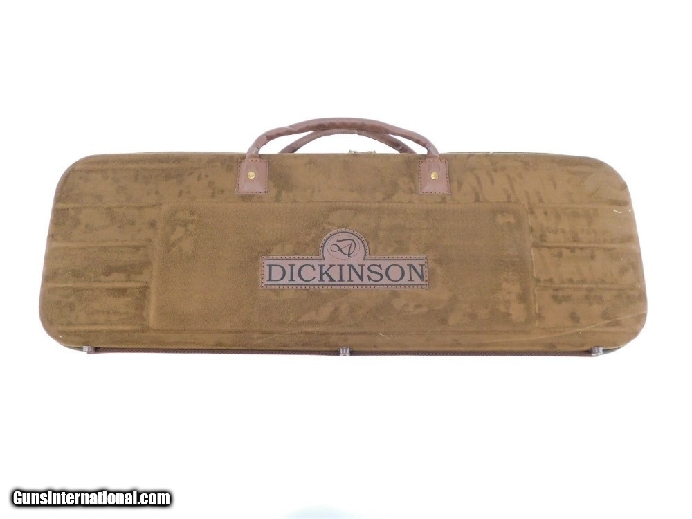 Description: Manufacturer: Dickinson Arms Model: Custom Estate - Demo Model Action: Side By Side Caliber: 12 Gauge, 3" Chamber Capacity: 2 Rounds Barrel: 28" Blued Receiver: Color Case Hardening Trigger: Double Safety: Manual Stock: Premium Grade Turkish Walnut, English Grip Hand Rubbed Oil Forend: Standard Hand Rubbed Oil Buttplate: Wood Checkered Sight: Brass Bead Chokes: Full, Improved Modified, Modified, Cylinder, Improved Cylinder Overall Length: 45.50" Weight: 6 lbs Length of Pull: 14.75" Includes: Dickinson Brown Soft Hard Case This firearm was displayed in a demo expo showing off the gorgeous wood & features of Dickinson Arms Custom Models. This shotgun is Brand New and may have been fired outside of the factory for demo purposes. These models may have extremely minor handling marks. Any handling marks or blemishes will be pointed out with red arrows in the pictures above. Pictures above are of the actual firearm you'll be receiving. SOLD |