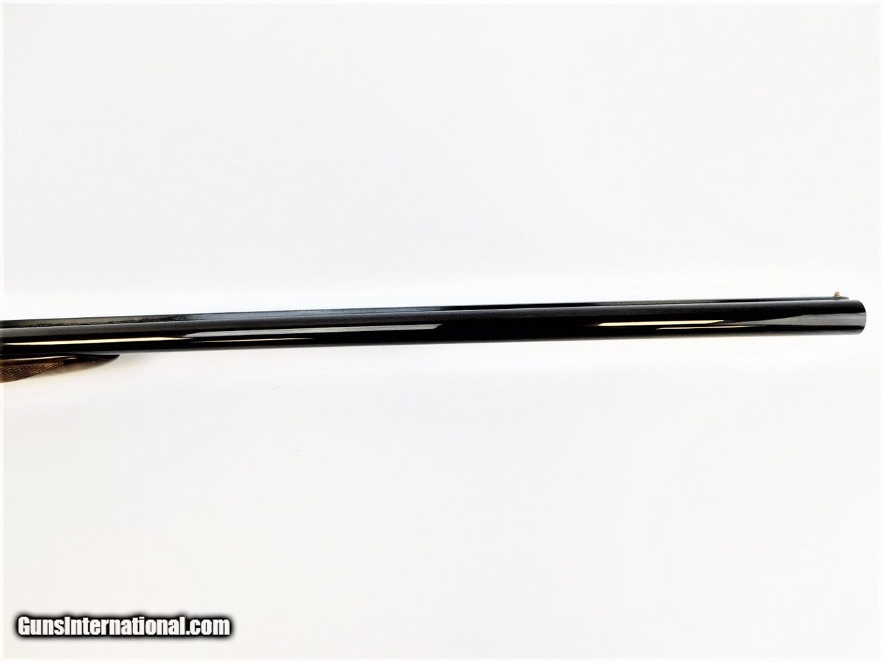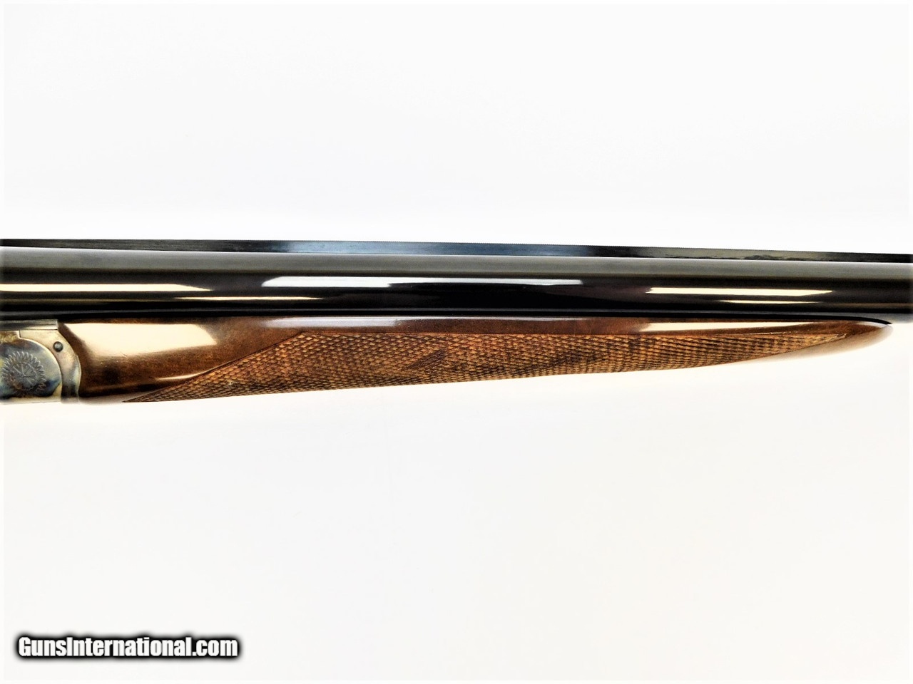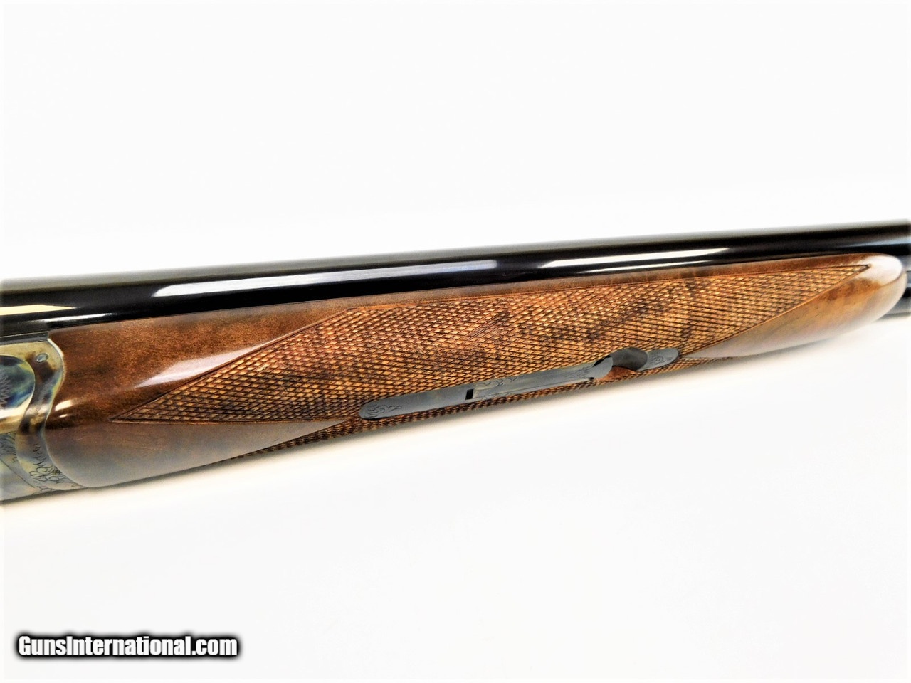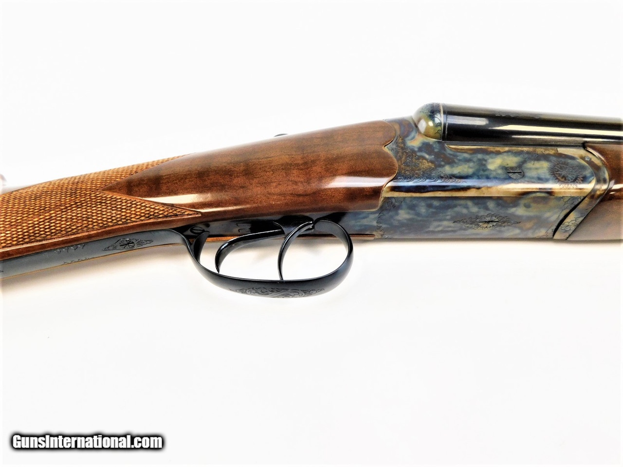 Description: Manufacturer: Dickinson Arms Model: Custom Estate - Demo Model Action: Side By Side Caliber: 20 Gauge, 3" Chamber Capacity: 2 Rounds Barrel: 28" Blued Receiver: Color Case Hardening Trigger: Double Safety: Manual Stock: Premium Grade Turkish Walnut, English Grip Hand Rubbed Oil Forend: Standard Hand Rubbed Oil Buttplate: Wood Checkered Sight: Brass Bead Chokes: Full, Improved Modified, Modified, Cylinder, Improved Cylinder Overall Length: 45.50" Weight: 6 lbs Length of Pull: 14.75" Drop of Comb: 1.25" Drop of Heel: 2.50" Includes: Dickinson Soft Hard Case This firearm was displayed in a demo expo showing off the gorgeous wood & features of Dickinson Arms Custom Models. This shotgun is Brand New and may have been fired outside the factory for demo purposes. These models may have extremely minor handling marks. Any handling marks or blemishes will be pointed out with red arrows in the pictures above. Pictures above are of the actual firearm you'll be receiving. SOLD |