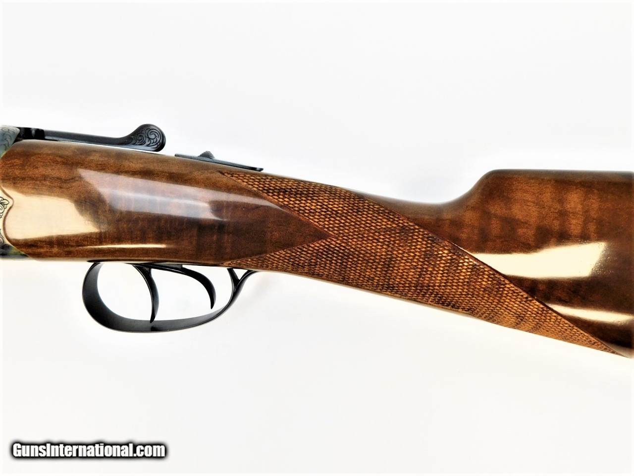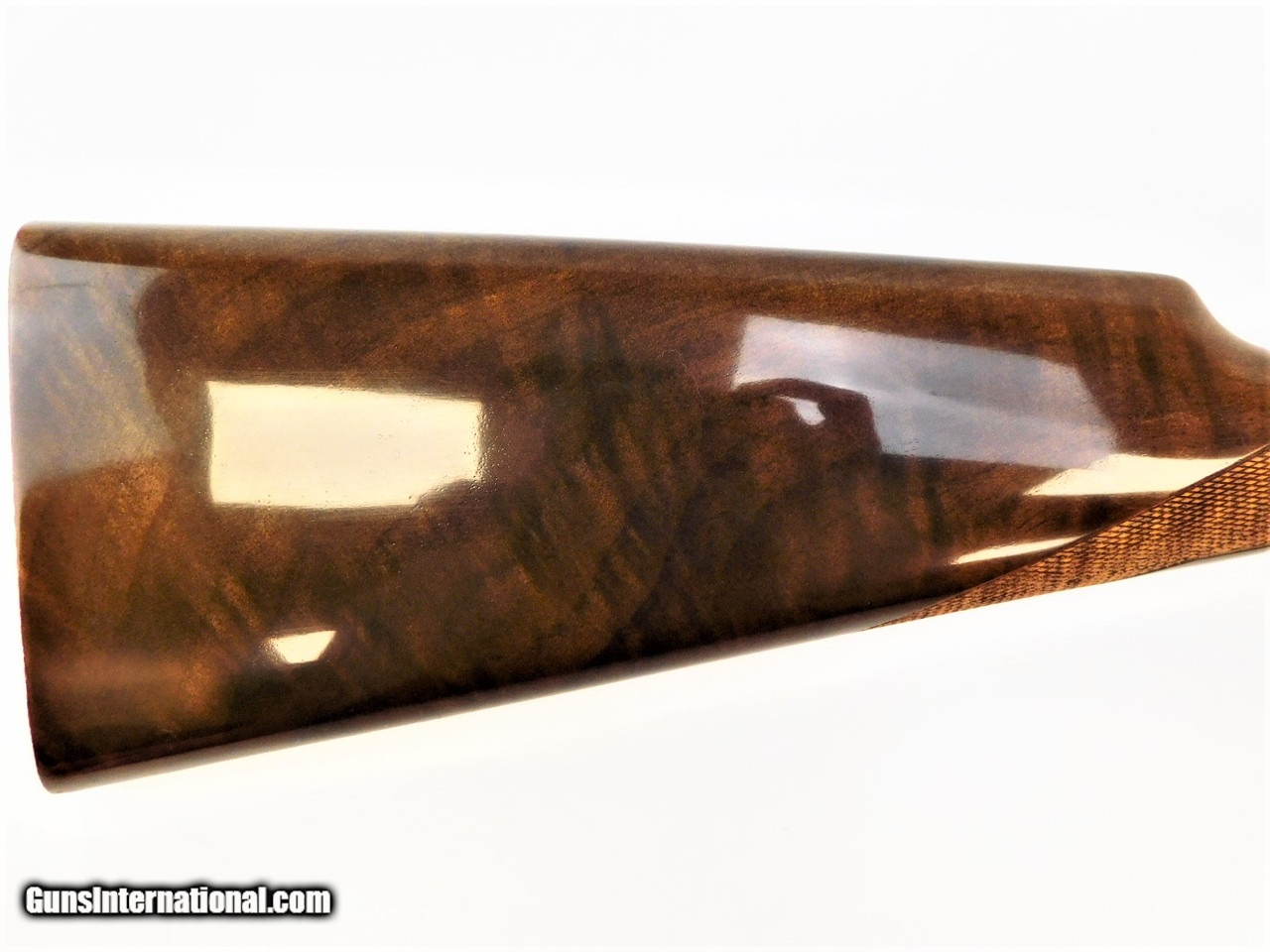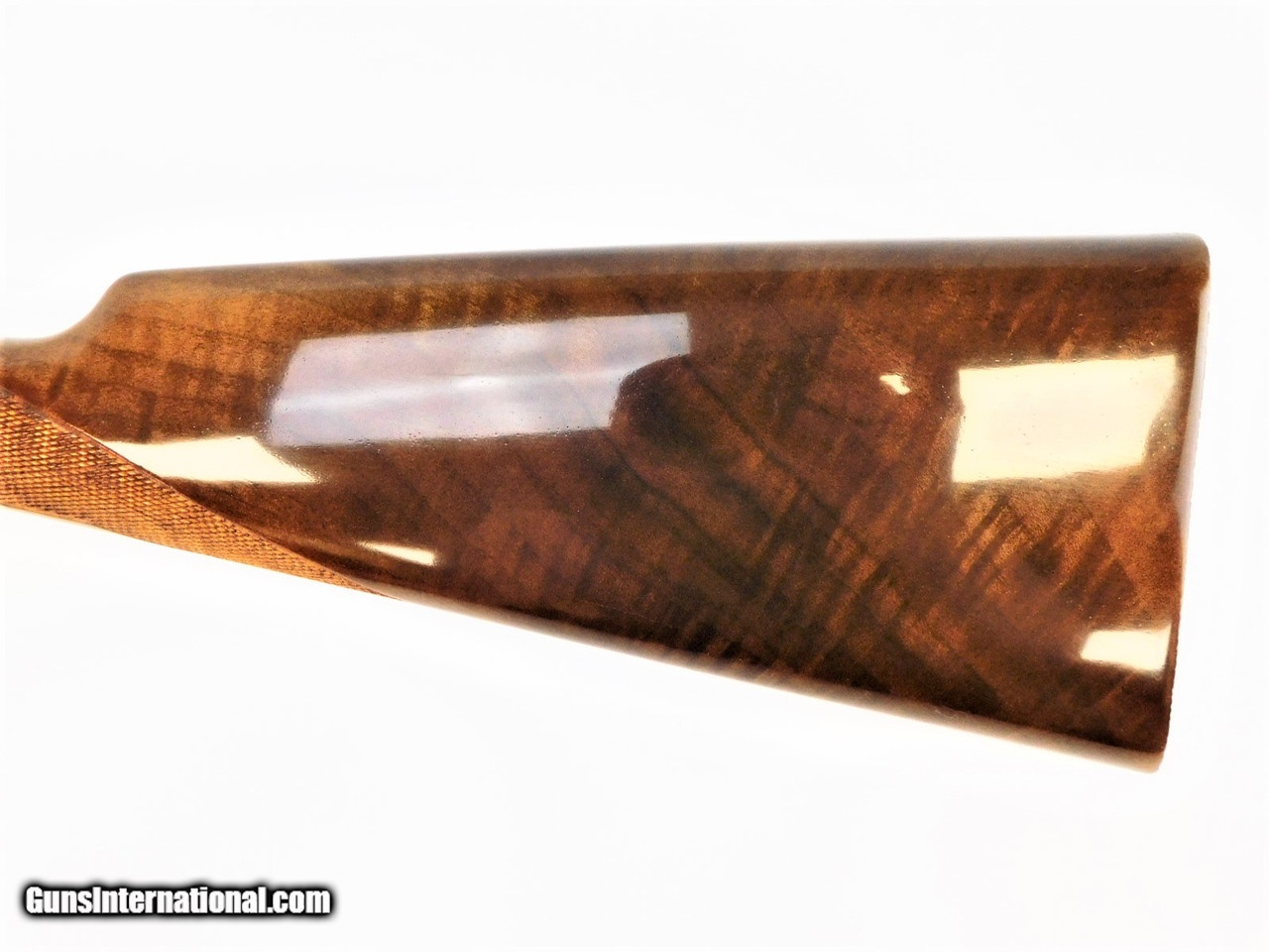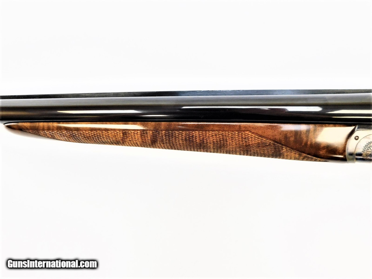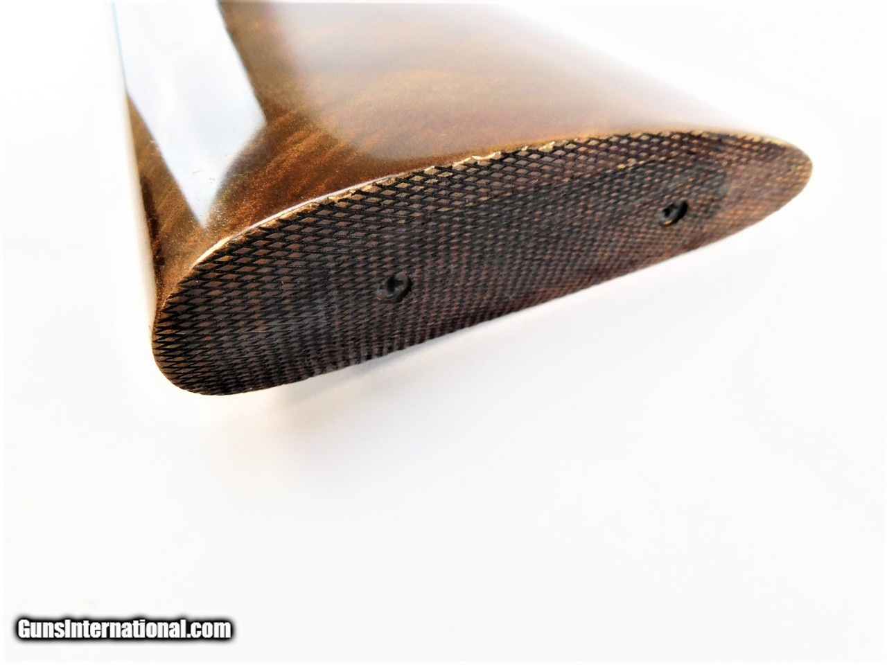 Description: Manufacturer: Dickinson Arms Model: Custom Estate - Demo Model Action: Side By Side Caliber: 20 Gauge, 3" Chamber Capacity: 2 Rounds Barrel: 28" Blued Receiver: Color Case Hardening Trigger: Double Safety: Manual Stock: Premium Grade Turkish Walnut, English Grip Hand Rubbed Oil Forend: Standard Hand Rubbed Oil Buttplate: Wood Checkered Sight: Brass Bead Chokes: Full, Improved Modified, Modified, Cylinder, Improved Cylinder Overall Length: 45.50" Weight: 6 lbs Length of Pull: 14.75" Drop of Comb: 1.25" Drop of Heel: 2.50" Includes: Dickinson Soft Hard Case This firearm was displayed in a demo expo showing off the gorgeous wood & features of Dickinson Arms Custom Models. This shotgun is Brand New and may have been fired outside the factory for demo purposes. These models may have extremely minor handling marks. Any handling marks or blemishes will be pointed out with red arrows in the pictures above. Pictures above are of the actual firearm you'll be receiving. SOLD |