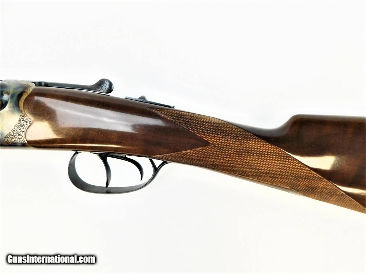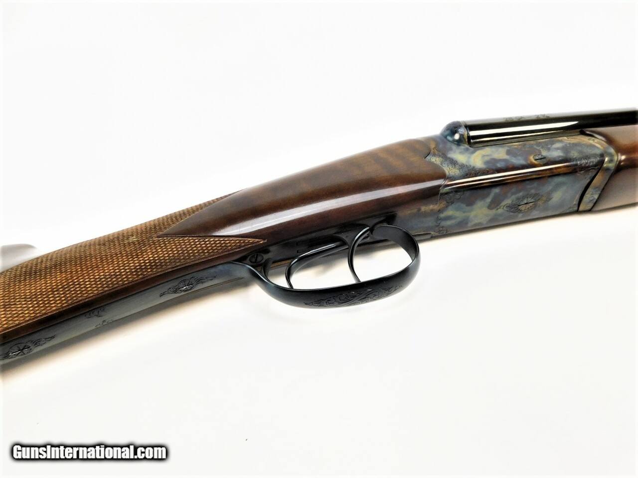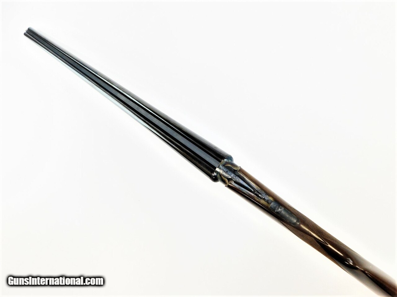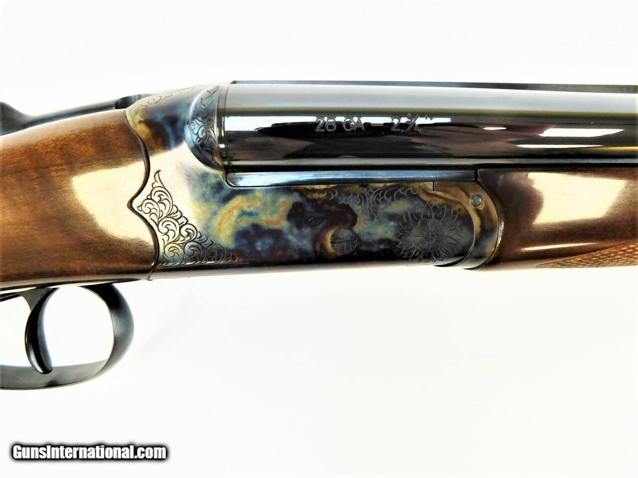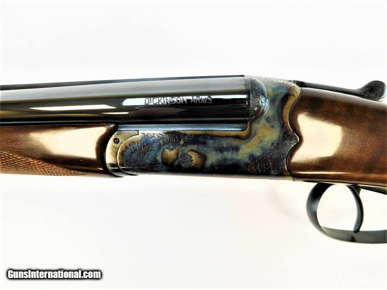 Description: Manufacturer: Dickinson Arms Model: Custom Estate - Demo Model Action: Side By Side Caliber: 28 Gauge, 2.75" Chamber Capacity: 2 Rounds Barrel: 28" Blued Receiver: Color Case Hardening Trigger: Double Safety: Manual Stock: Premium Grade Turkish Walnut, English Grip Hand Rubbed Oil Forend: Standard Hand Rubbed Oil Buttplate: Wood Checkered Sight: Brass Bead Chokes: Full, Improved Modified, Modified, Cylinder, Improved Cylinder Overall Length: 45" Weight: 5.25 lbs Length of Pull: 14.75" Drop of Comb: 1.25" Drop of Heel: 2.50" Includes: Dickinson Soft Hard Case This firearm was displayed in a demo expo showing off the gorgeous wood & features of Dickinson Arms Custom Models. This shotgun is Brand New and may have been fired outside the factory for demo purposes. These models may have extremely minor handling marks. Any handling marks or blemishes will be pointed out with red arrows in the pictures above. Pictures above are of the actual firearm you'll be receiving. SOLD |