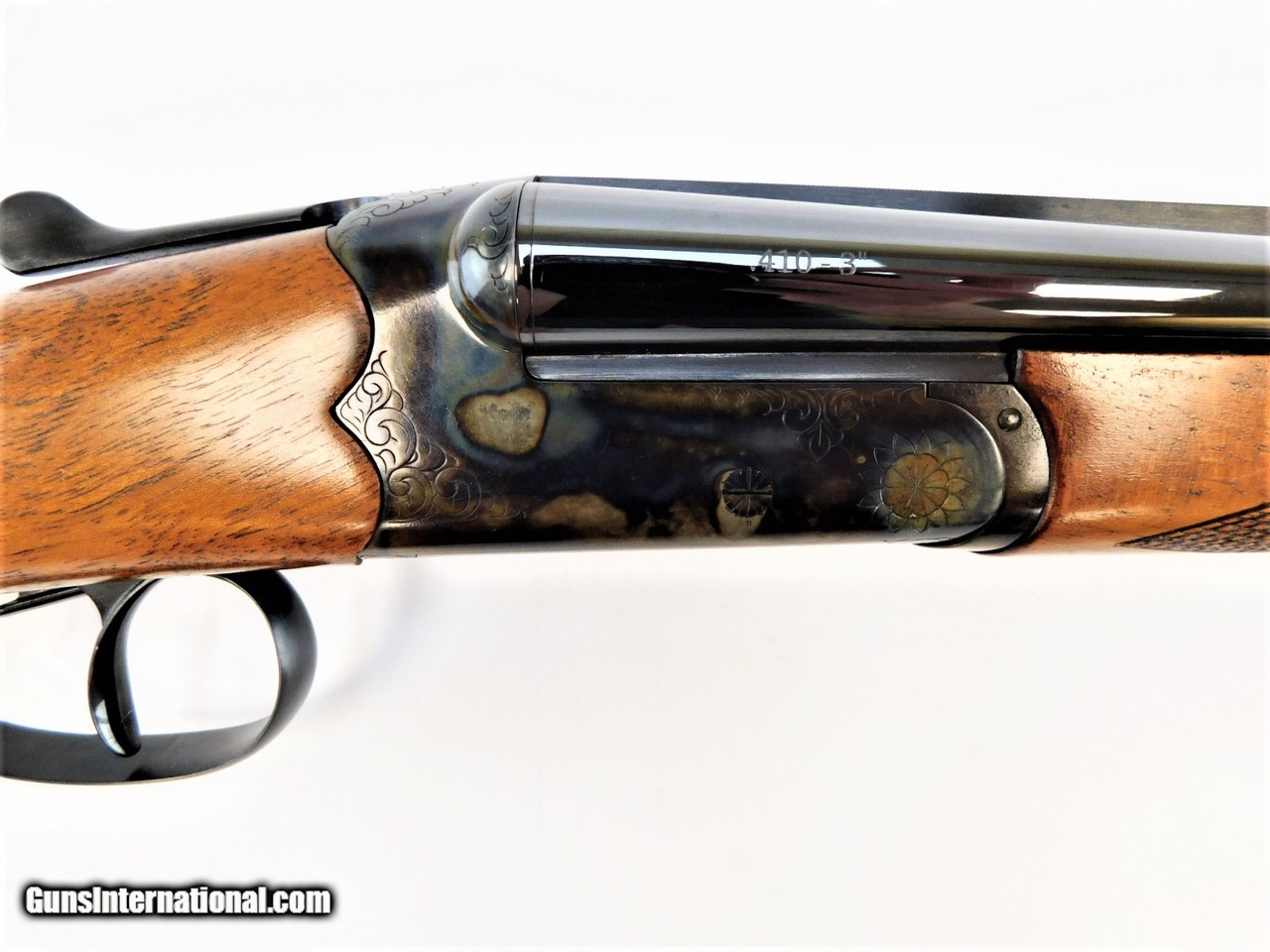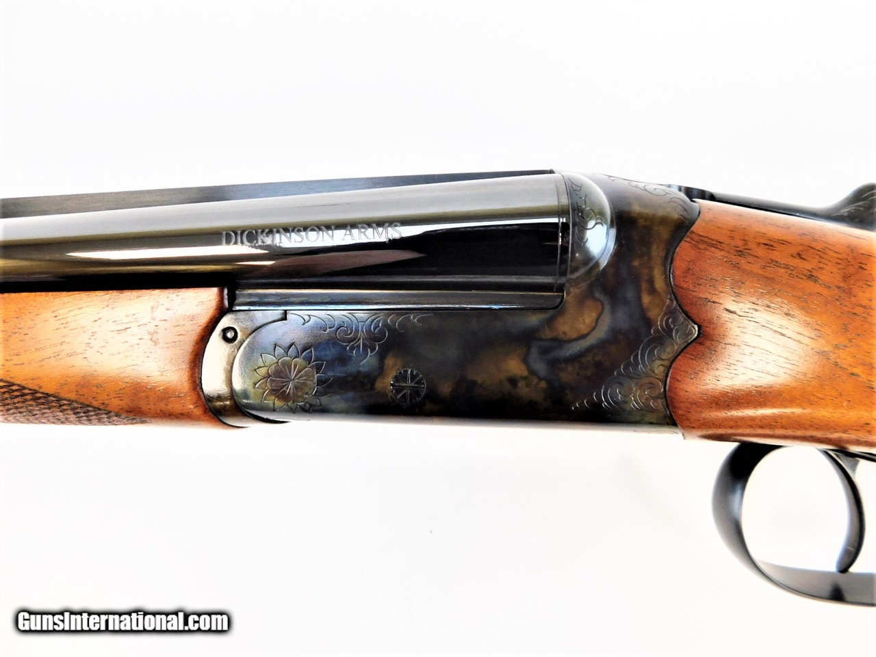 Description: Manufacturer: Dickinson Arms Model: Custom Estate - Demo Model Action: Side By Side Caliber: 410 Gauge, 3" Chamber Capacity: 2 Rounds Barrel: 30" Blued Receiver: Color Case Hardening Trigger: Double Ejectors Safety: Manual Stock: Premium Grade Turkish Walnut, English Grip Hand Rubbed Oil Forend: Standard Hand Rubbed Oil Buttplate: Wood Checkered Sight: Brass Bead Chokes: Fixed Modified *** Overall Length: 47.25" Weight: 6.1 lbs Length of Pull: 14.75" Drop of Comb: 1.25" Drop of Heel: 2.50" Includes Dickinson Brown Soft Hard Case This firearm was displayed in a demo expo showing off the gorgeous wood & features of Dickinson Arms Custom Models. This shotgun is Brand New and may have been fired outside the factory for demo purposes. These models may have extremely minor handling marks. Any handling marks or blemishes will be pointed out with red arrows in the pictures above. Pictures above are of the actual firearm you'll be receiving. SOLD |