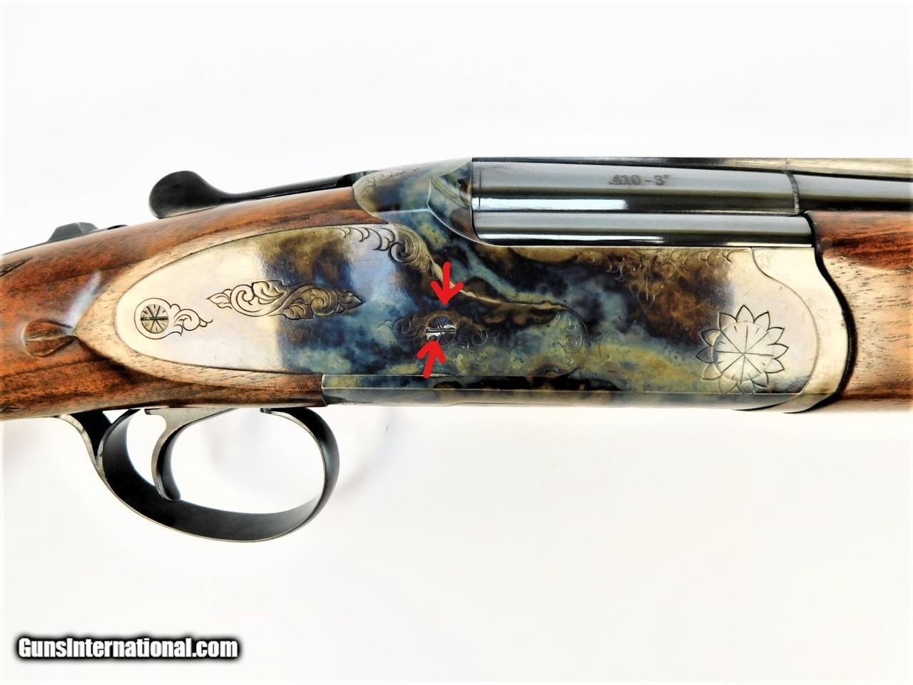 Description: Manufacturer: Dickinson Arms Model: Custom Hunter Lux Plantation - Demo Model Action: Over/Under Caliber: 410 Gauge, 3" Chamber Capacity: 2 Rounds Barrel: 26" Blued Receiver: Color Case Hardening, English Scroll Trigger: Single Safety: Manual Stock: Premium Grade Turkish Walnut, Pistol Grip, Hand Rubbed Oil Forend: Beavertail Style, Hand Rubbed Oil Buttplate: Rubber Checkered Sight: Brass Bead Chokes: Fixed Overall Length: 43.75" Length of Pull: 14.75" Weight: 5.9 lbs Includes Dickinson Brown Soft Hard Case This firearm was displayed in a demo expo showing off the gorgeous wood & features of Dickinson Arms Custom Models. This shotgun is Brand New Out of the Box and has never been fired outside of the factory. These models may have extremely minor handling marks. Any handling marks or blemishes will be pointed out with red arrows in the pictures above. Pictures above are of the actual firearm you'll be receiving. SOLD |