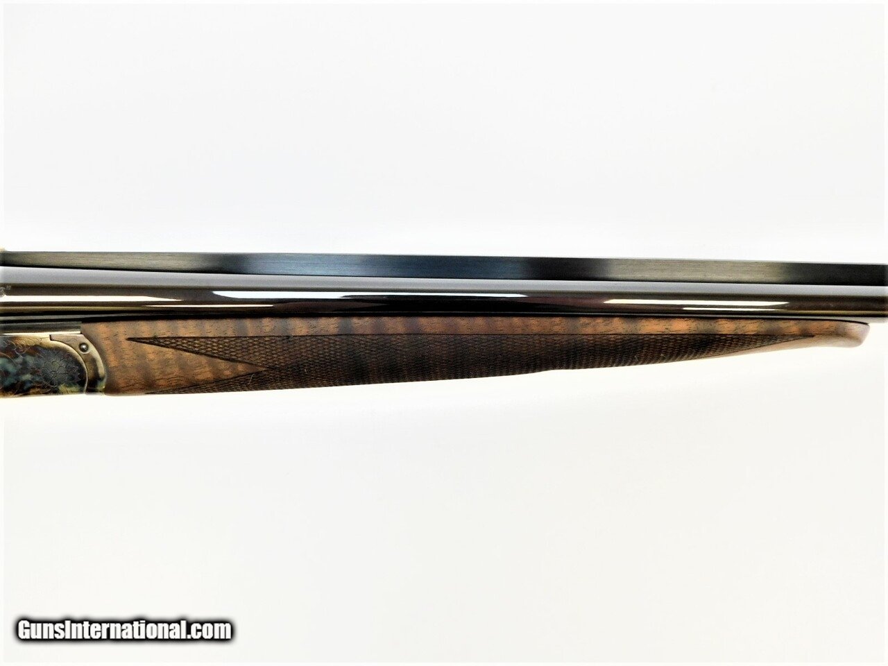 Description: Manufacturer: Dickinson Arms Model: Custom Planation Side-by-Side - Demo Model Caliber: .410 Gauge, 3" Chamber Auto Ejectors Capacity: 2 Rounds Barrel Length: 28" Double Trigger Chokes: Fixed Modified *** Receiver: True Bone Charcoal Case Hardened Finish Stock: Premium Grade 3 Turkish Walnut Stock, English Grip, Hand Rubbed Oil Finish Weight: 5.8 lbs Sights: Brass Bead Includes Dickinson Brown Soft Hard Case This firearm was displayed in a demo expo showing off the gorgeous wood & features of Dickinson Arms Custom Models. This shotgun is Brand New and may have been fired outside the factory for demo purposes. These models may have extremely minor handling marks. Any handling marks or blemishes will be pointed out with red arrows in the pictures above. Pictures above are of the actual firearm you'll be receiving. SOLD |