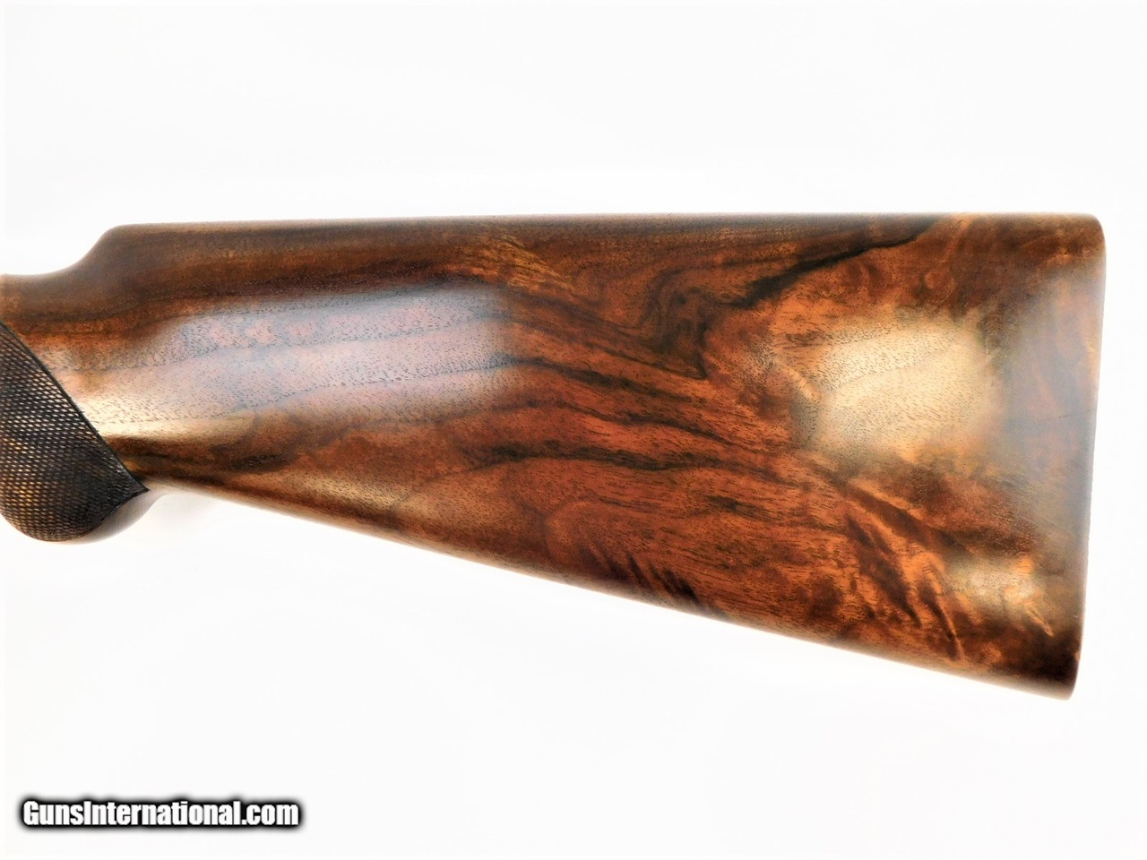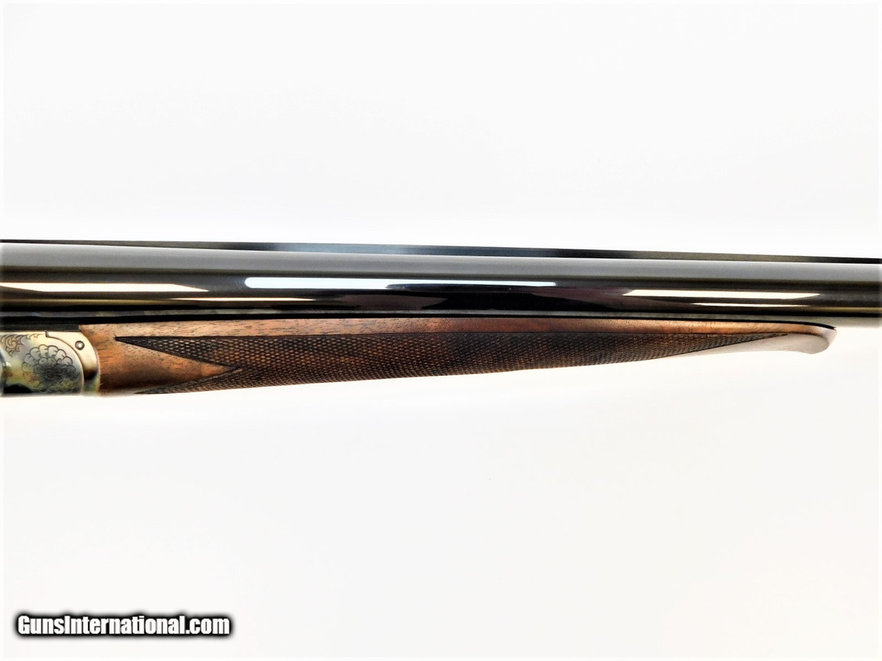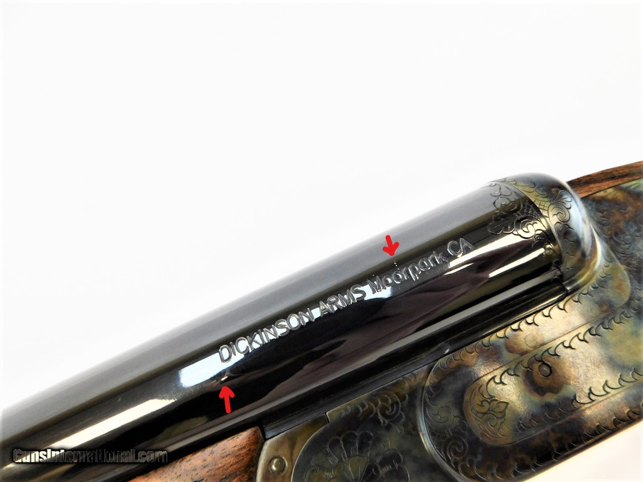 Description: Manufacturer: Dickinson Arms Model: Custom Prestige - Demo Model Serial Number: TRK0665 Action: Side By Side Caliber: 12 Gauge, 3" Chamber Capacity: 2 Rounds Barrel: 30" Blued Receiver: Color Case Hardening, Hand Engraved Trigger: Single Ejectors Safety: Manual Stock: Premium Grade Turkish Walnut, Prince of Wales Grip Hand Rubbed Oil Forend: Standard Hand Rubbed Oil Buttplate: Wood Checkered Sight: Brass Bead Chokes: Full, Improved Modified, Modified, Cylinder, Improved Cylinder Overall Length: 45.50" Weight: 6.6 lbs Length of Pull: 14.75" Drop of Comb: 1.25" Drop of Heel: 2.50" Includes: Dickinson Brown Soft Hard Case This firearm was displayed in a demo expo showing off the gorgeous wood & features of Dickinson Arms Custom Models. This shotgun is Brand New Out of the Box and has never been fired outside of the factory. These demo models may have minor handling marks. The most distinctive handling marks or blemishes will be pointed out in the pictures above. SOLD |