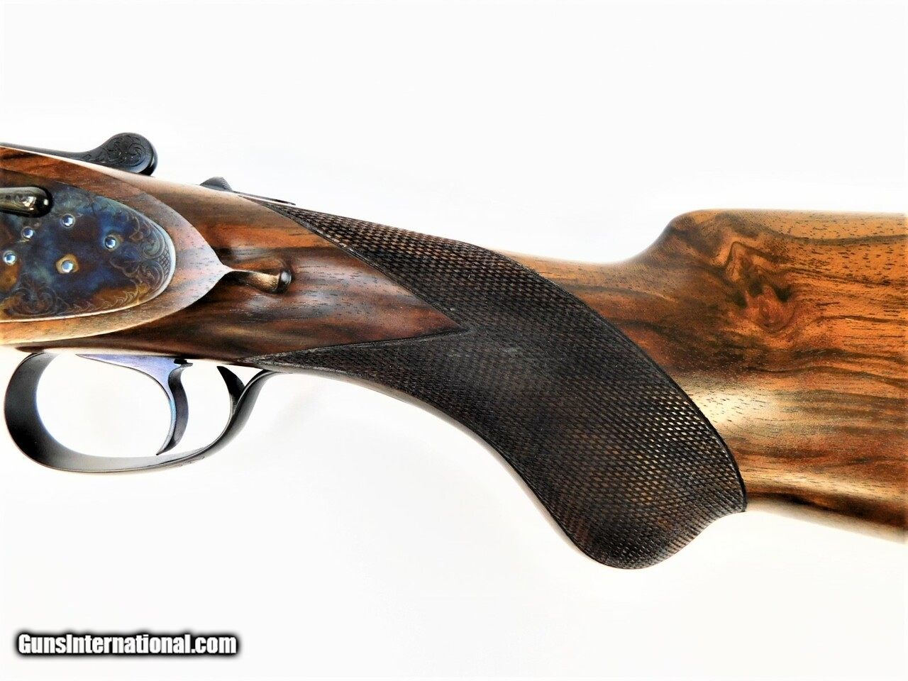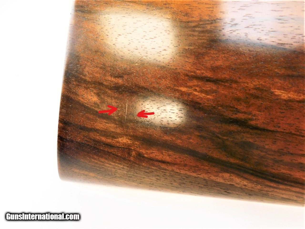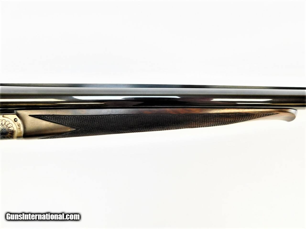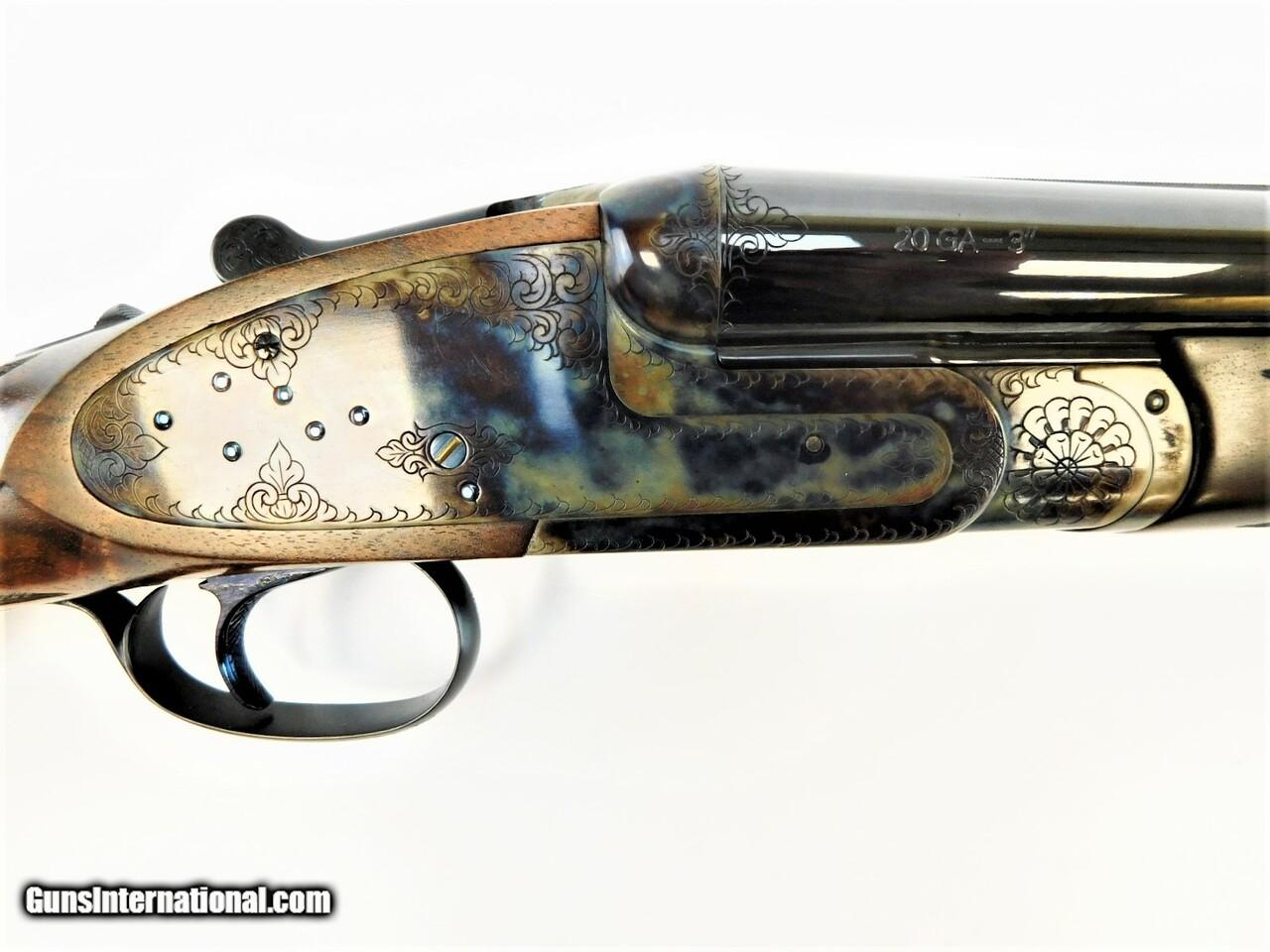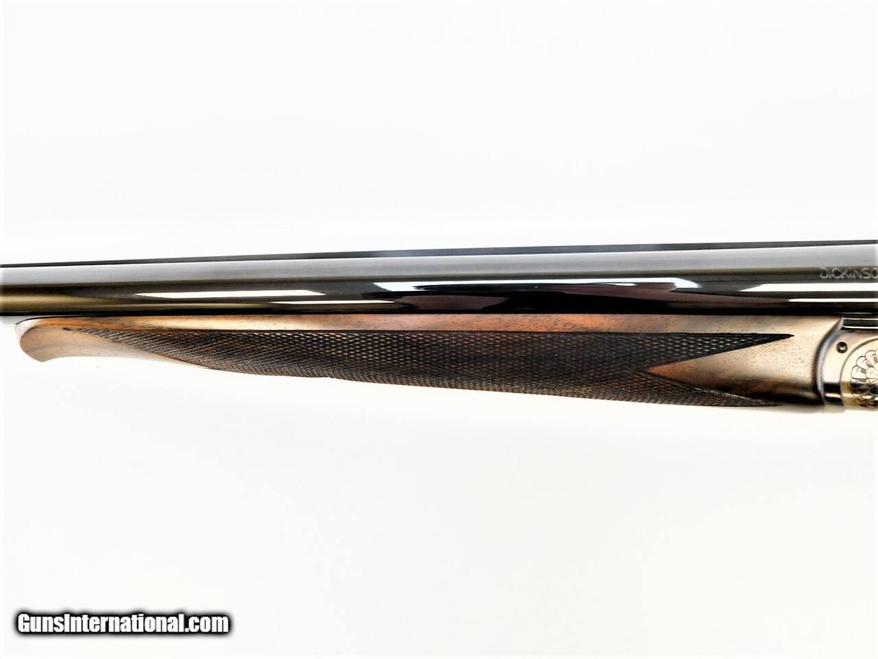 Description: Manufacturer: Dickinson Arms Model: Custom Prestige - Demo Model Action: Side By Side Caliber: 20 Gauge, 3" Chamber Capacity: 2 Rounds Barrel: 26" Blued Receiver: Color Case Hardening, Hand Engraved Trigger: Single Safety: Manual Stock: Premium Grade 3 Turkish Walnut, Prince of Wales Grip Hand Rubbed Oil Forend: Standard Hand Rubbed Oil Buttplate: Wood Checkered Sight: Brass Bead Chokes: Full, Improved Modified, Modified, Cylinder, Improved Cylinder Overall Length: 43.75" Length of Pull: 14.75" Weight: 7.2 lbs This firearm was displayed in a demo expo showing off the gorgeous wood & features of Dickinson Arms Custom Models. This shotgun is Brand New Out of the Box and has never been fired outside of the factory. These models may have extremely minor handling marks. Any handling marks or blemishes will be pointed out with red arrows in the pictures above. Pictures above are of the actual firearm you'll be receiving. SOLD |