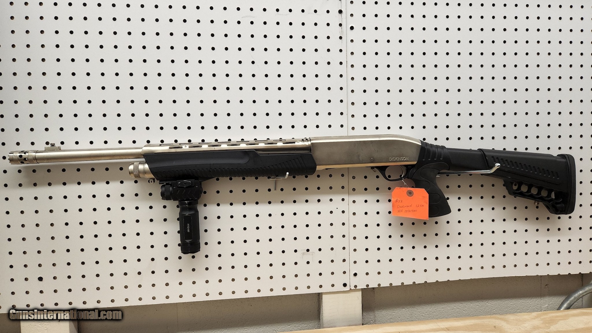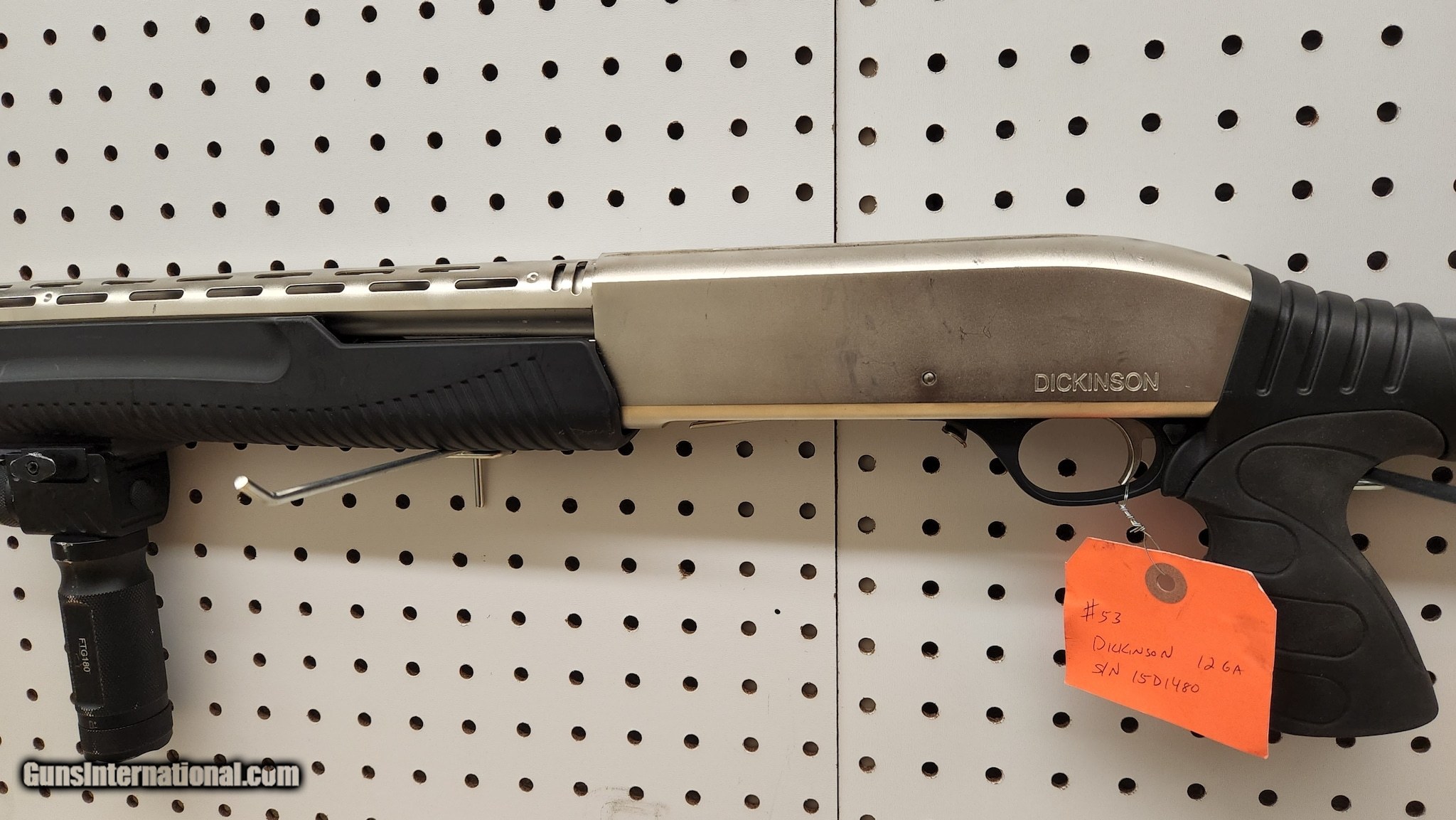 Description: Guns Listing ID: 579554 Comes with flashlight foregrip attachment SOLD Manufacturer: DICKINSON ARMS Model: DEFENSE MARINECOTE Condition: Used - Non-Certified Barrels: 20" BARREL Gauge Info: 12 GA |