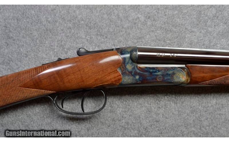 Description: Pre-owned Dickinson Arms Estate 28 Gauge SXS Boxlock Shotgun, 28" barrel, English style wood stock, color case-hardened metal finish. Serial # TRL0160 28 Gauge SOLD Chambers: 2 3/4 Metal Condition: Good Condition Wood Condition: Good Condition Bore Condition: Bright and shiny Barrels: 28 inches Triggers: Double trigger Stock Dimensions: LOP 14 1/2 Weight: 6 lbs Sights: Front brass bead Chokes: "Full, Improved, Modified, Improved cylinder, Skeet Item Location: Springfield, OR |