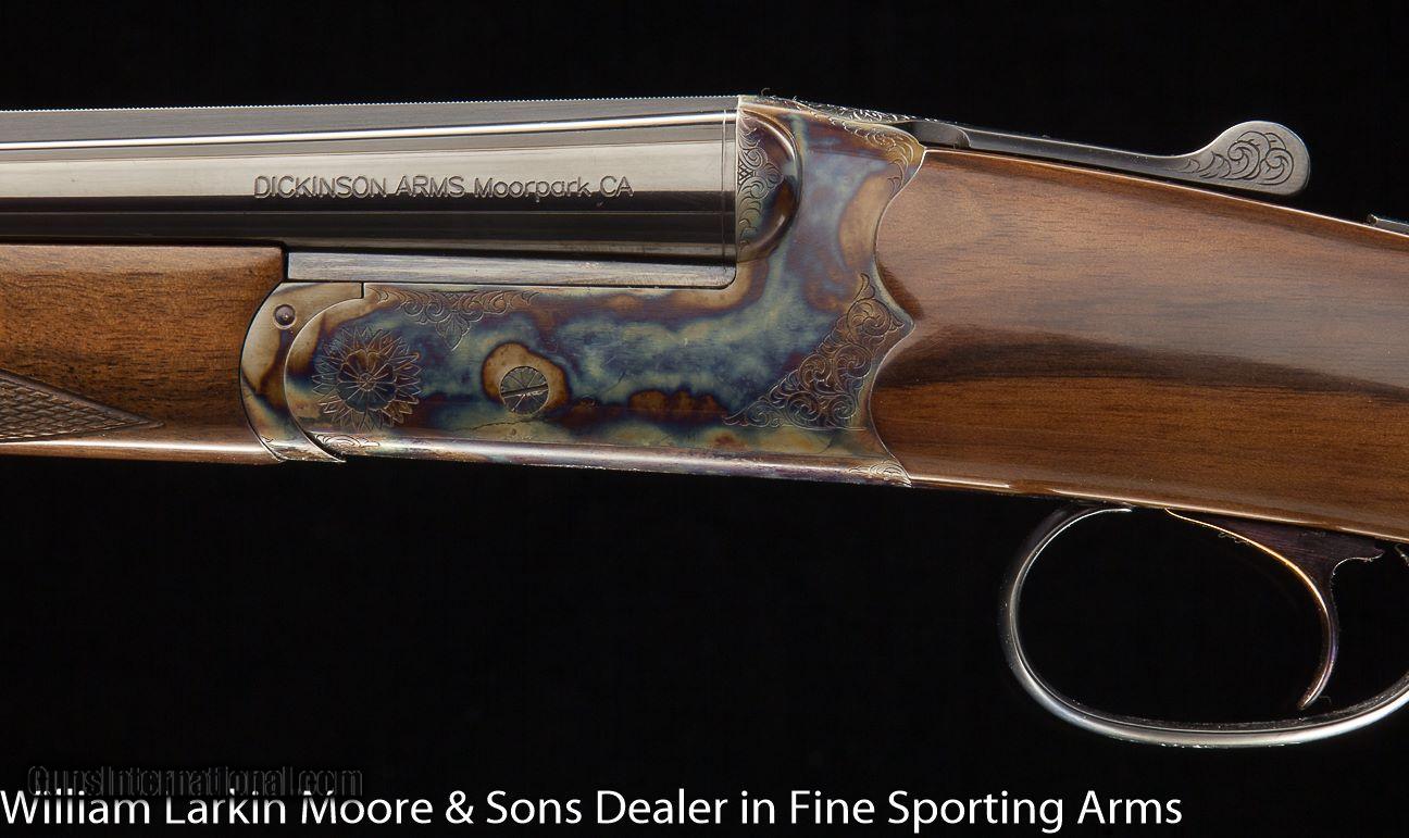 Description: ID # 6609 Make DICKINSON ARMS Model Estate TRL Configuration SXS Gauge / Caliber .410 Price $2,500.00 Serial # TRL0010 Country of Origin Turkey Barrel Length (in Inches) 28 Choke R Choke tubes Choke L Choke tubes Trigger ST (Single) Stock Configuration Straight Grip Forearm Type Splinter Forearm Rib Type Level Flat Rib Receiver FinishCasehardened Engraving Type Scroll Border Engraving Other Options Gloss finish wood, Checkered butt, Original box and papers, 3" chambers Condition AS NEW, UNFIRED in box Weight 5#4oz Dimensions 1 3/8 x 2 1/8 x 14 1/2 with 1/4 cast off SOLD |