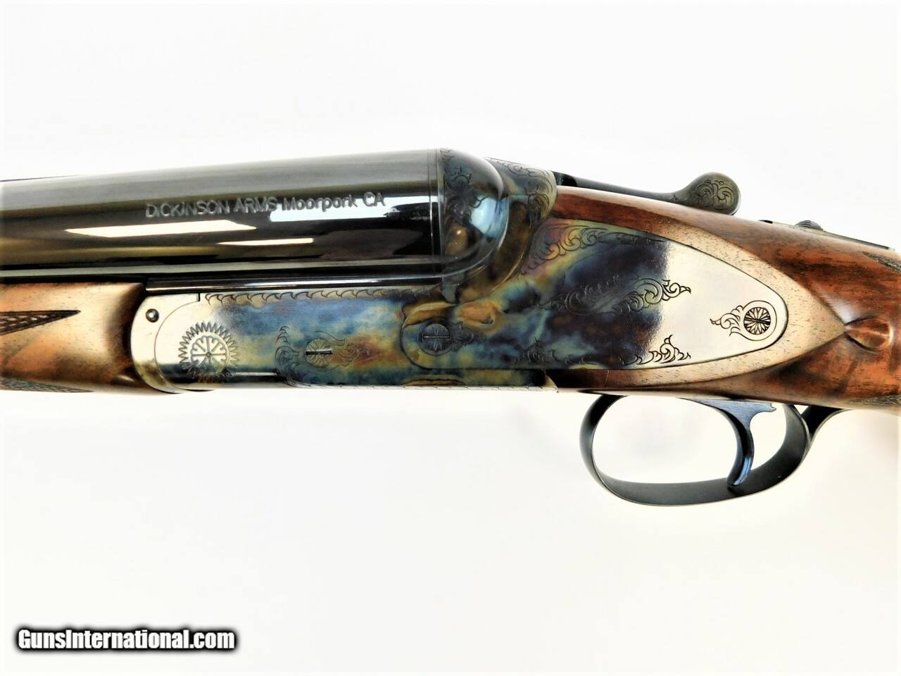 Description: Manufacturer: Dickinson Arms Model: Planation - Demo Model Action: Side-by-Side Caliber: 12 Gauge, 3" Chamber Capacity: 2 Rounds Barrel: 28" Blued Receiver: Color Case Hardened Trigger: Single Automatic Ejectors Safety: Manual Stock: Grade 2.5 Turkish Walnut, Pistol Grip, Hand Rubbed Oil Forend: Turkish Walnut, Hand Rubbed Oil Buttplate: Wood Checkered Sight: Brass Bead Chokes: Full, Improved Modified, Modified, Cylinder, Improved Cylinder Length of Pull: 14.75" Overall Length: 46" Weight: 5.8 lbs This firearm was displayed in a demo expo by Dickinson Arms. This shotgun is Brand New and may have been fired outside the factory for demo purposes. These models may have extremely minor handling marks. Any handling marks or blemishes will be pointed out with red arrows in the pictures above. Pictures above are of the actual firearm you'll be receiving. SOLD |