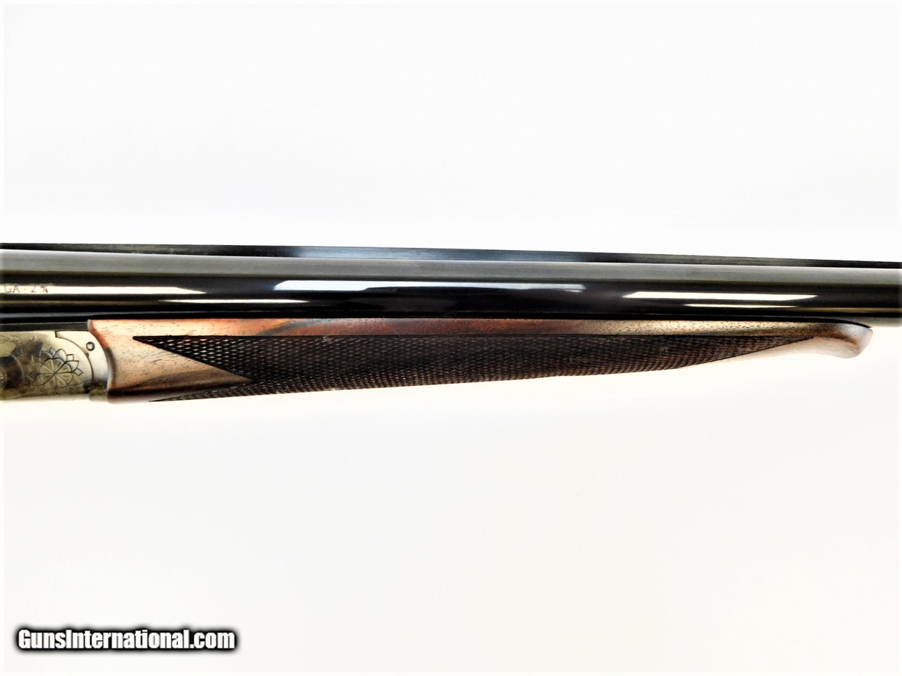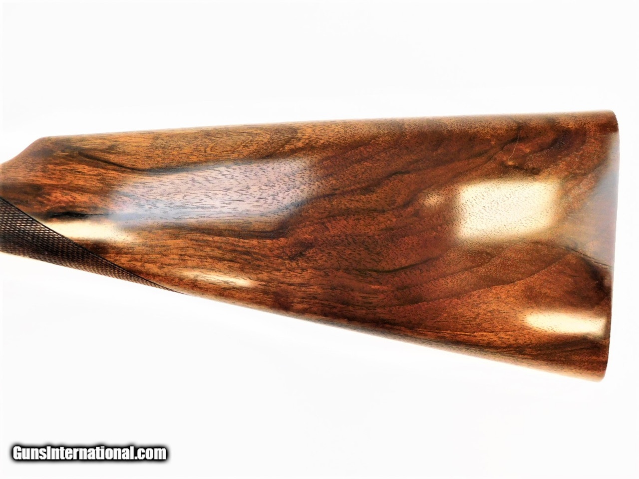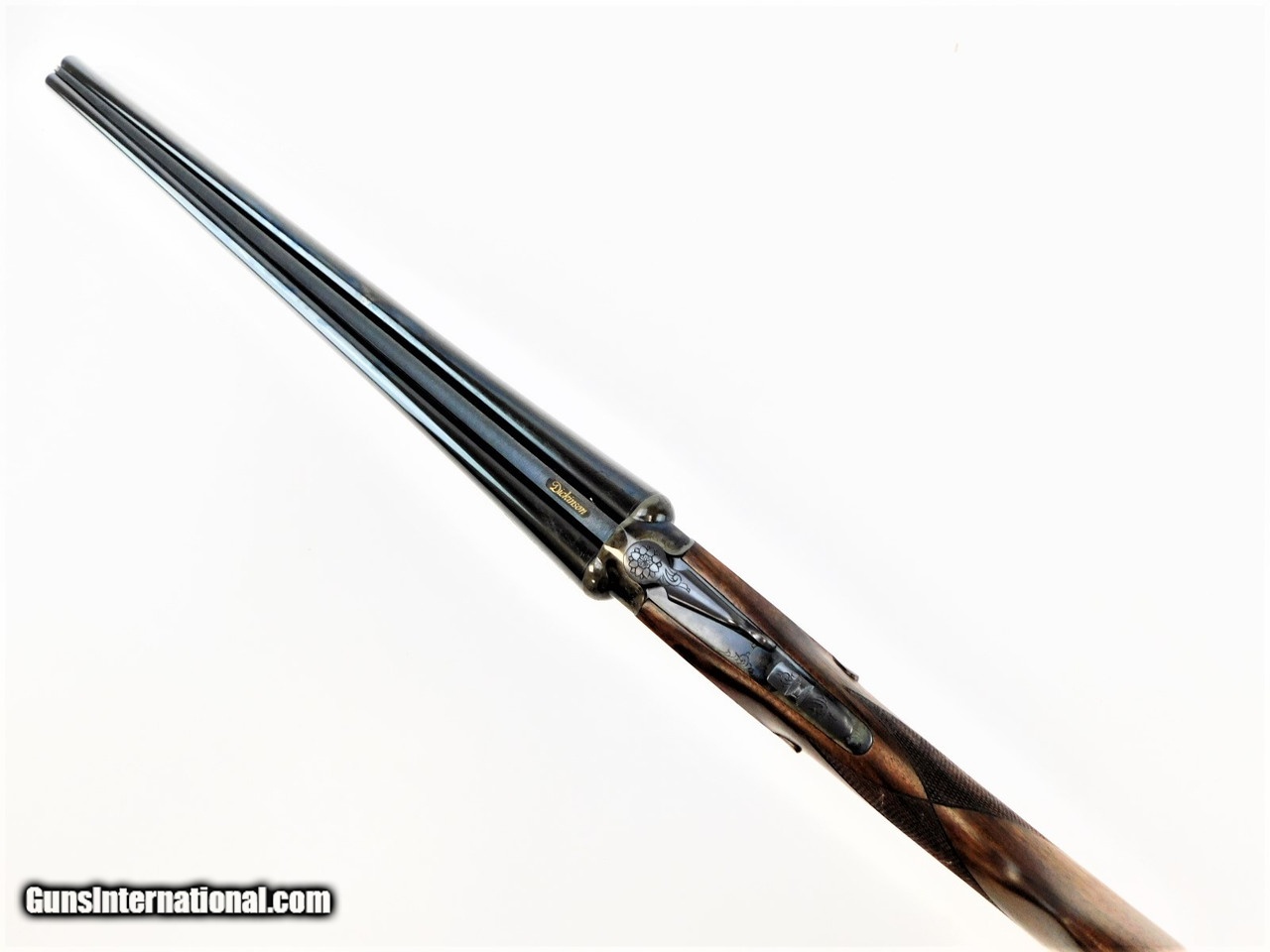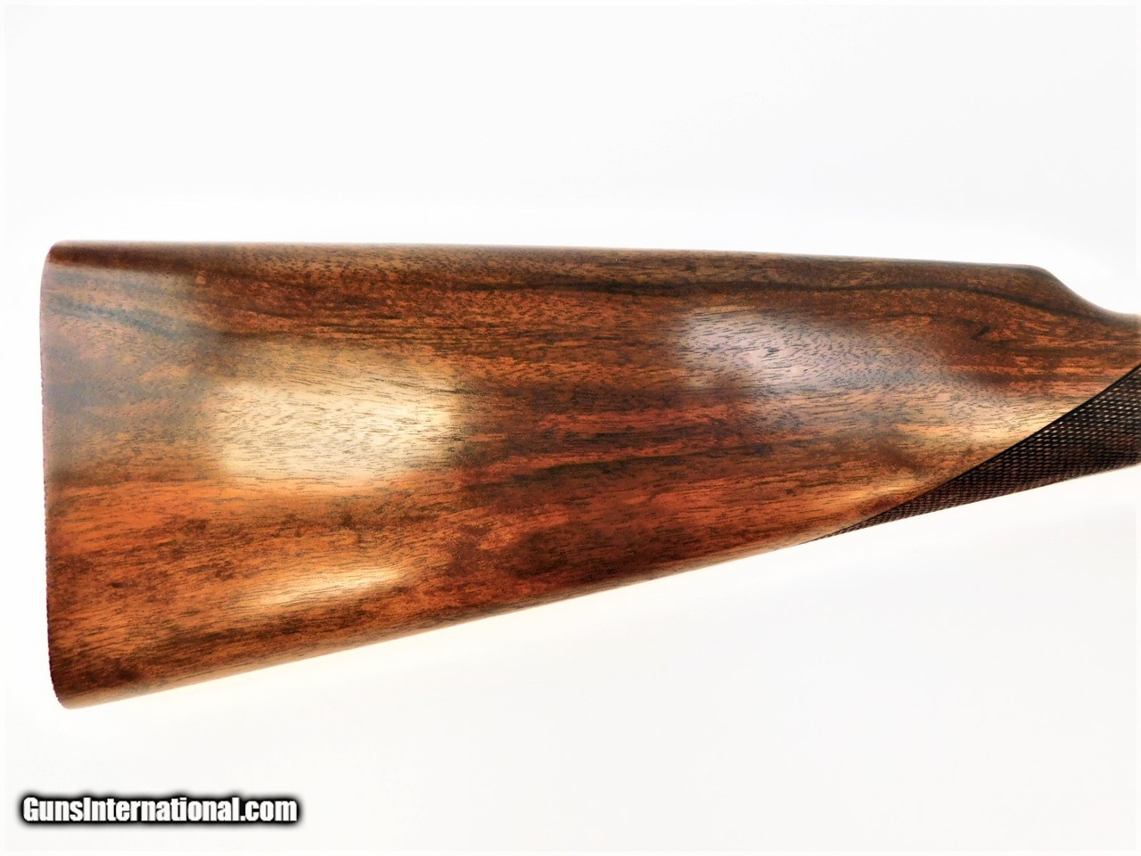 Description: Manufacturer: Dickinson Arms Model: Plantation Action: Sid-by-Side Caliber: 16 Gauge, 3" Chamber Capacity: 2 Rounds Barrel: 28" Blued Receiver: Color Case Hardening, English Scroll Trigger: Single Ejectors Safety: Manual Stock: Premium Grade Turkish Walnut, English Grip, Hand Rubbed Oil Forend: Standard Hand Rubbed Oil Length of Pull: 14.75" Buttplate: Wood Checkered Sight: Brass Bead Chokes: Full, Improved Modified, Modified, Cylinder, Improved Cylinder Overall Length: 45.50" Weight: 6.7 lbs This firearm was displayed in a demo expo showing off the gorgeous wood & features of Dickinson Arms Custom Models. This shotgun is Brand New and may have been fired outside the factory for demo purposes. These models may have extremely minor handling marks. Any handling marks or blemishes will be pointed out with red arrows in the pictures above. Pictures above are of the actual firearm you'll be receiving. SOLD |