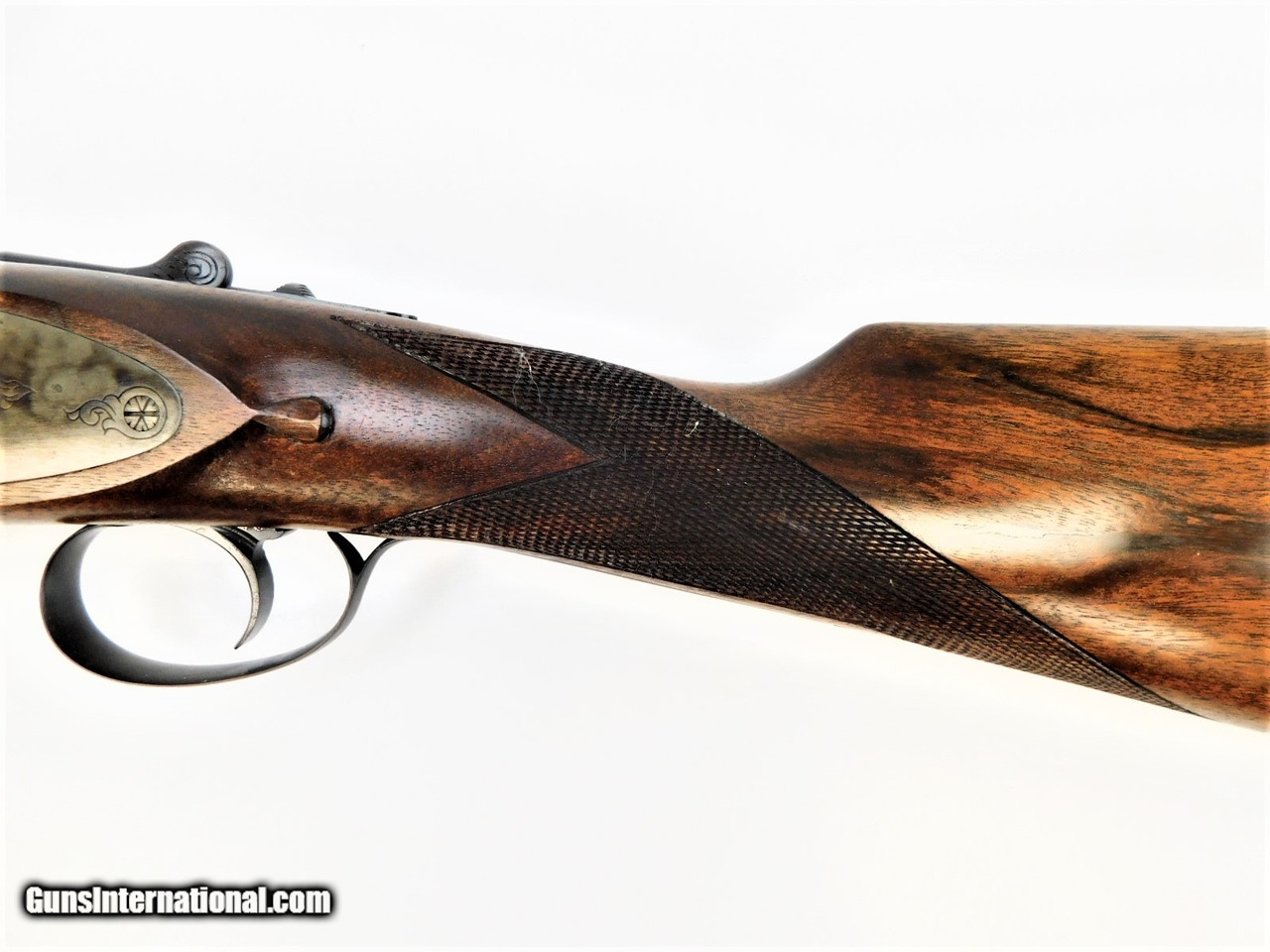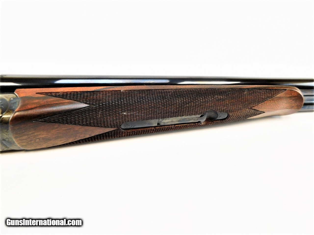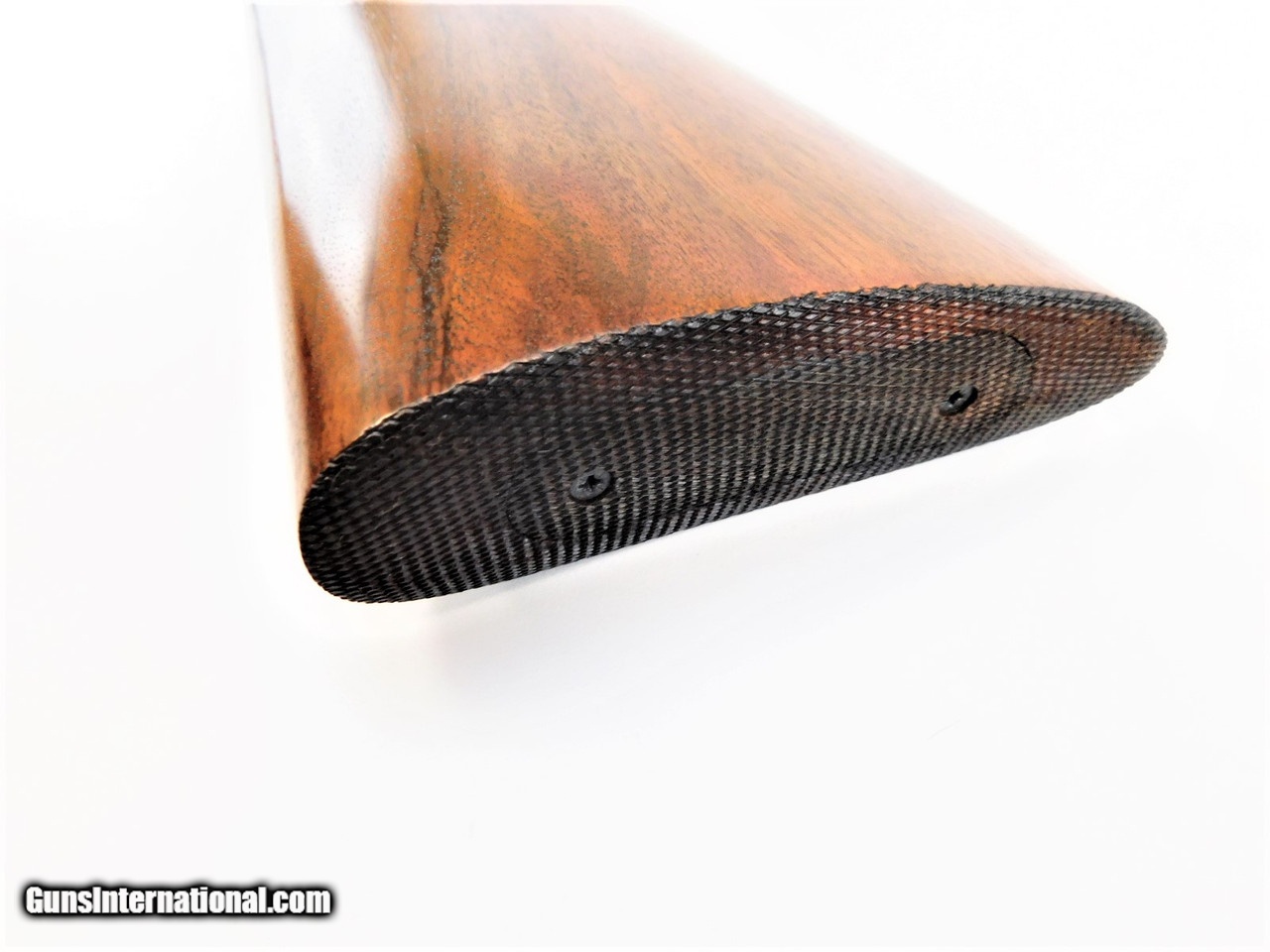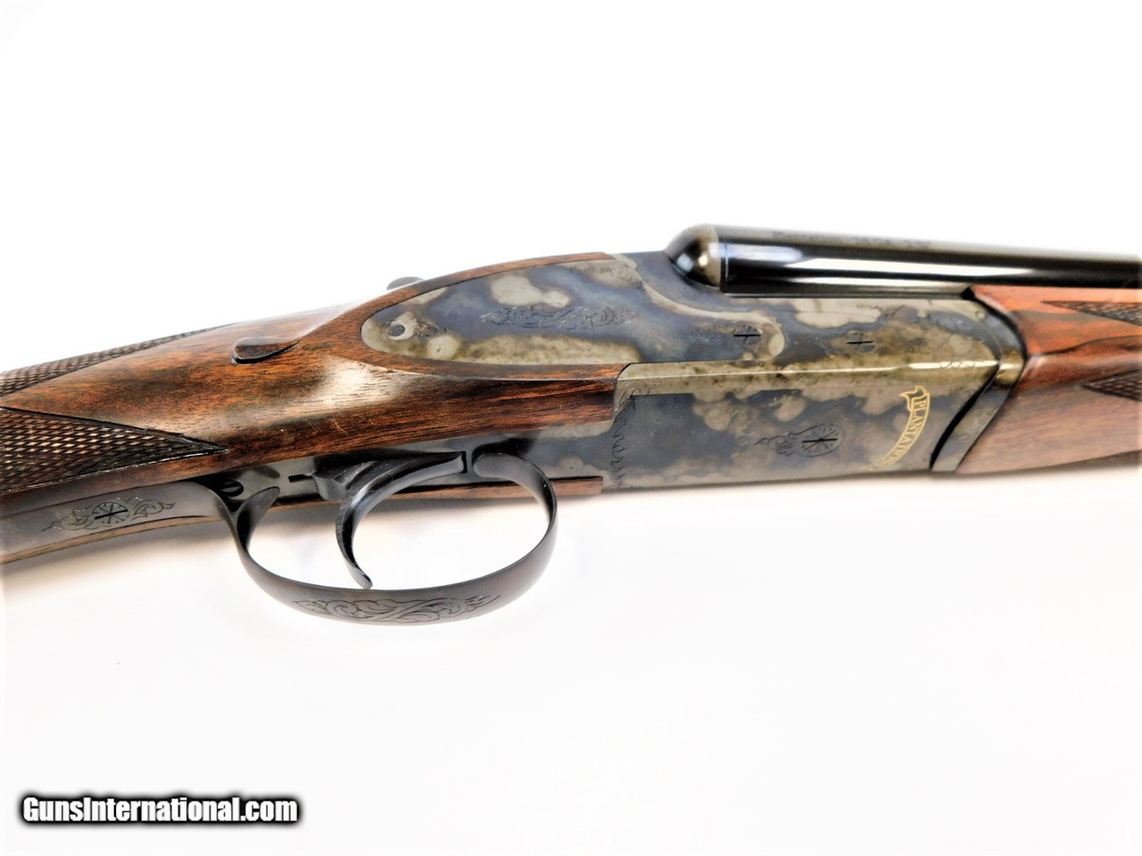 Description: Manufacturer: Dickinson Arms Model: Plantation Action: Sid-by-Side Caliber: 16 Gauge, 3" Chamber Capacity: 2 Rounds Barrel: 28" Blued Receiver: Color Case Hardening, English Scroll Trigger: Single Ejectors Safety: Manual Stock: Premium Grade Turkish Walnut, English Grip, Hand Rubbed Oil Forend: Standard Hand Rubbed Oil Length of Pull: 14.75" Buttplate: Wood Checkered Sight: Brass Bead Chokes: Full, Improved Modified, Modified, Cylinder, Improved Cylinder Overall Length: 45.50" Weight: 6.7 lbs This firearm was displayed in a demo expo showing off the gorgeous wood & features of Dickinson Arms Custom Models. This shotgun is Brand New and may have been fired outside the factory for demo purposes. These models may have extremely minor handling marks. Any handling marks or blemishes will be pointed out with red arrows in the pictures above. Pictures above are of the actual firearm you'll be receiving. SOLD |