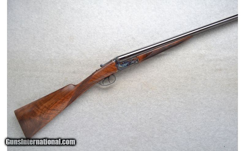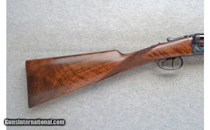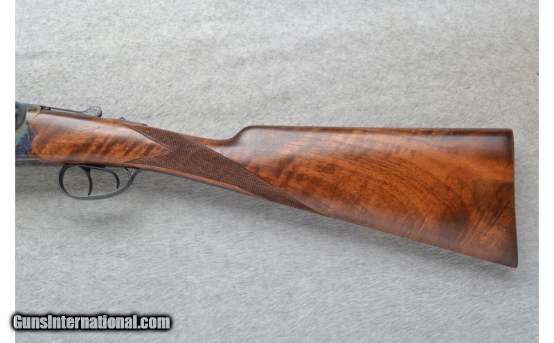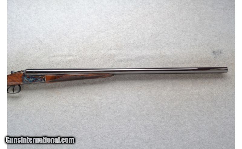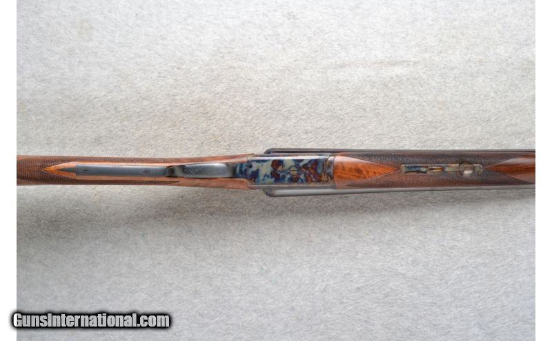 Description: This Dickinson Arms is a Side by Side model 12 Ga. shotgun. It has 28 inch barrels with ejectors and a solid rib. A brass bead front sight. With 3 inch chambers it has thin wall choke tubes and comes with 5. The butt stock is a checkered walnut straight grip. The forearm is a checkered grip walnut splinter. It has a lightly engraved case colored receiver. Double triggers. This is a very nice looking shotgun in like new condition. SOLD Manufacturer: Made in U.S.A. Caliber Info: 12 Ga. Chambers: 3 inch Side x Side with ejectors. Metal Condition: Excellent. Wood Condition: Excellent. Bore Condition: Clean, bright and shiny. Barrels: 28 inch blued with a solid rib. Triggers: Double triggers. Stock: Checkered walnut straight grip stock. Case colored receiver is lightly engraved. Stock Dimensions: LOP 14 3/4 inches. Fore End: Checkered grip walnut Splinter. Butt Pad: Checkered walnut butt. Weight: 6 lbs. 12 oz. Sights: Brass bead front. Chokes: Thin wall tubes. Comes with 5 tubes. F, IM, M, IC & Skeet. Extras: Comes in a Dickinson fitted case with Owners Manual, two cloth gun sleeves, 5 choke tubes, choke tube wrench and 2 snap caps. Item Location: Richfield, WI |