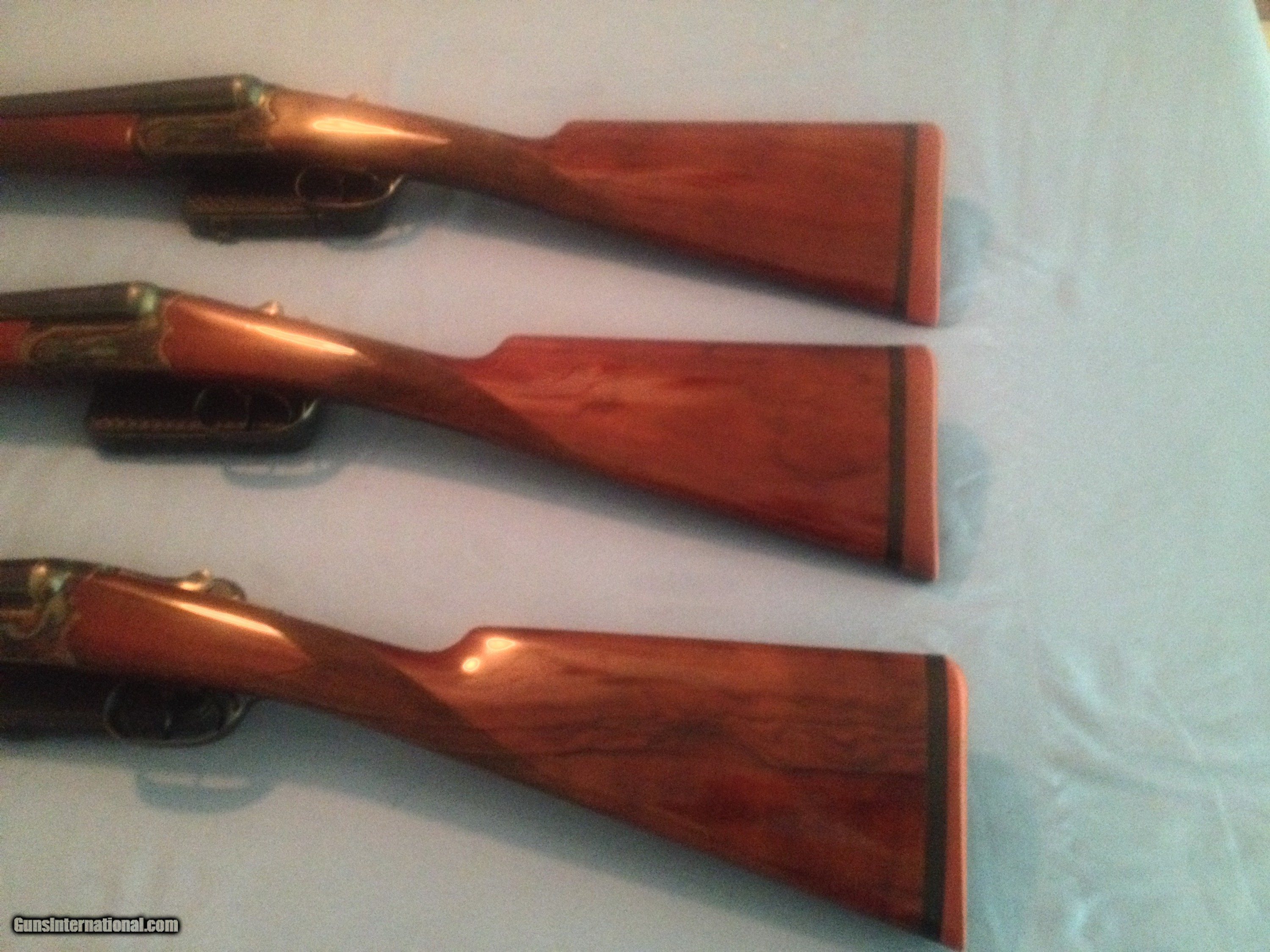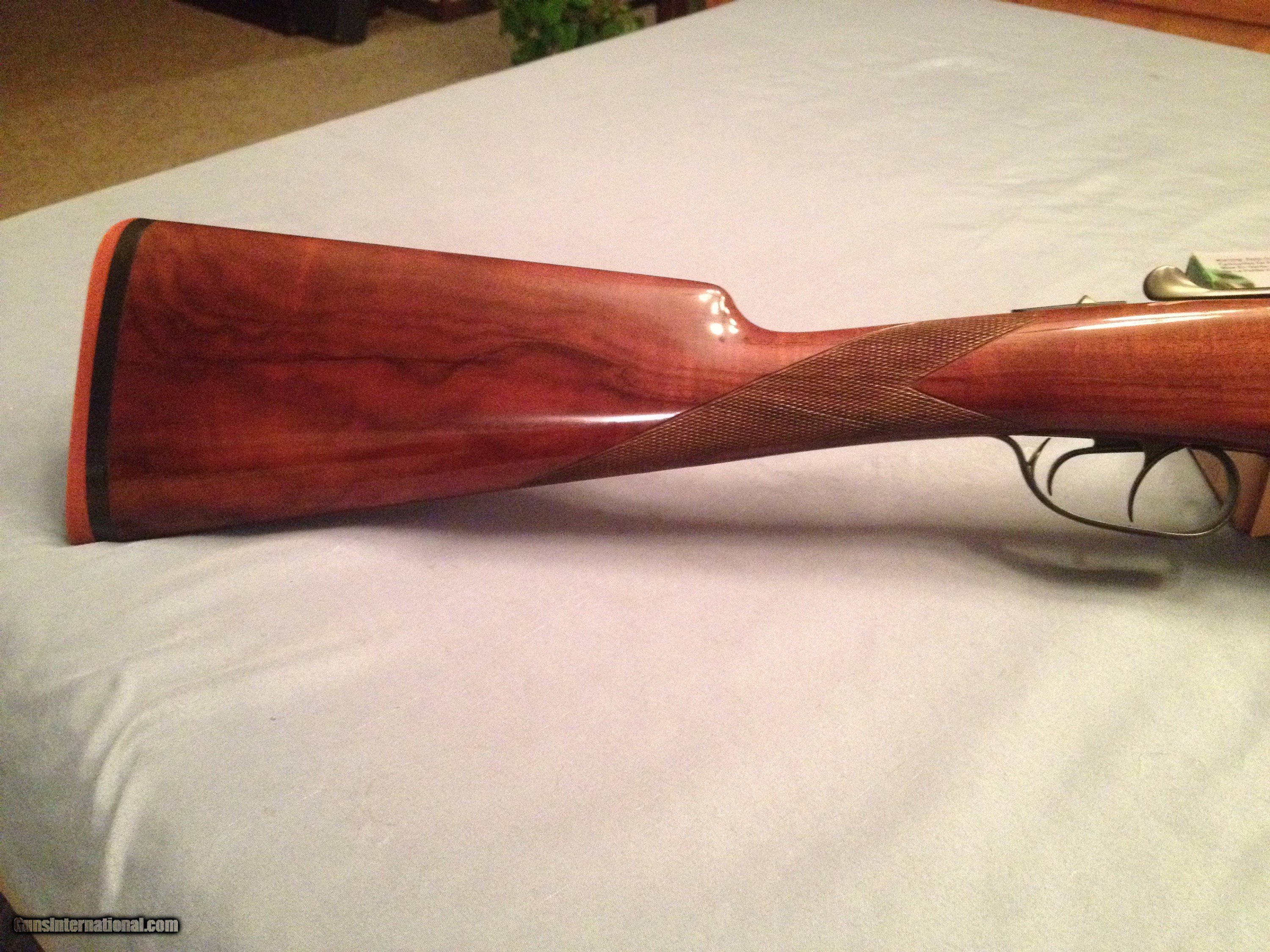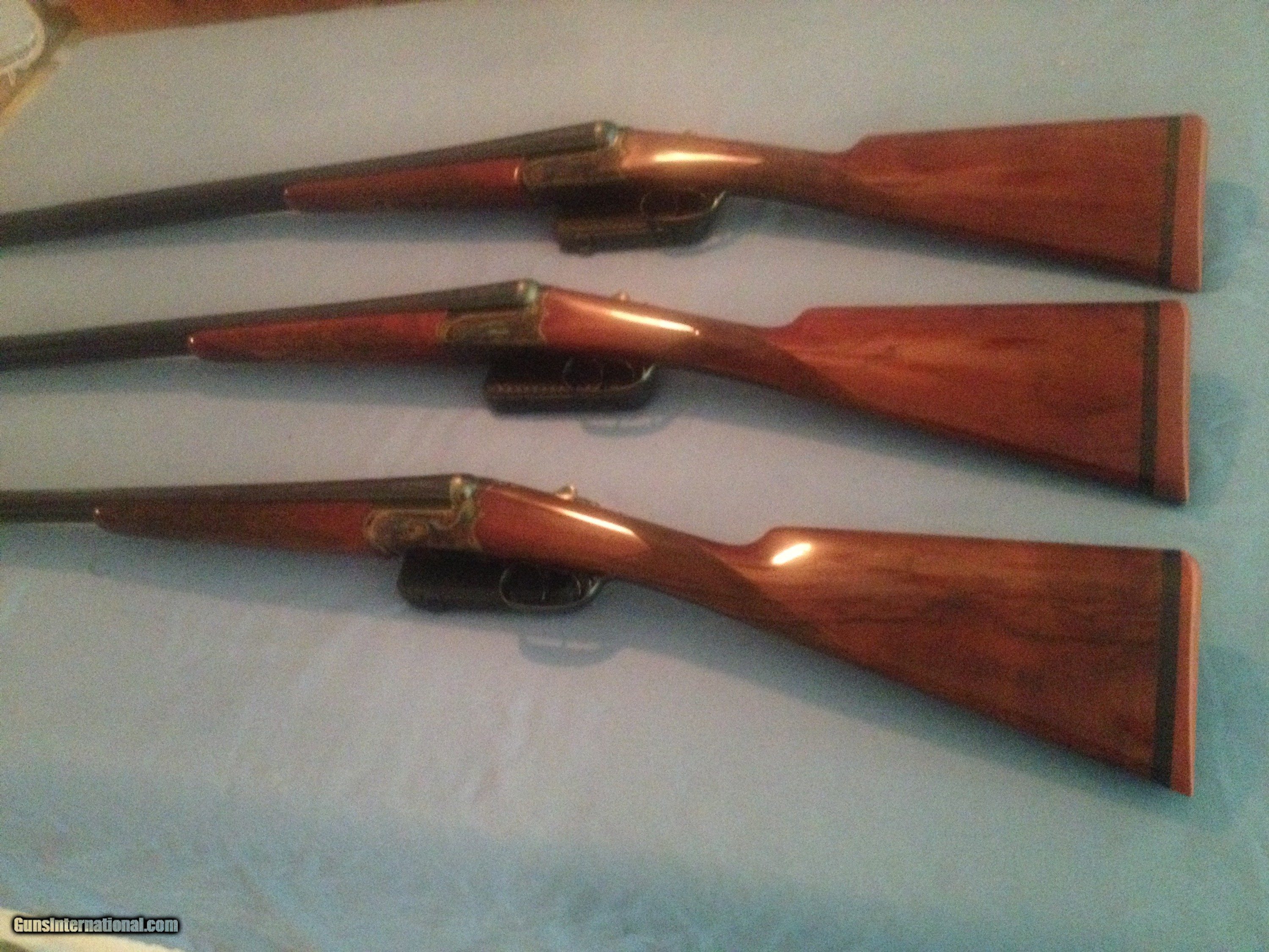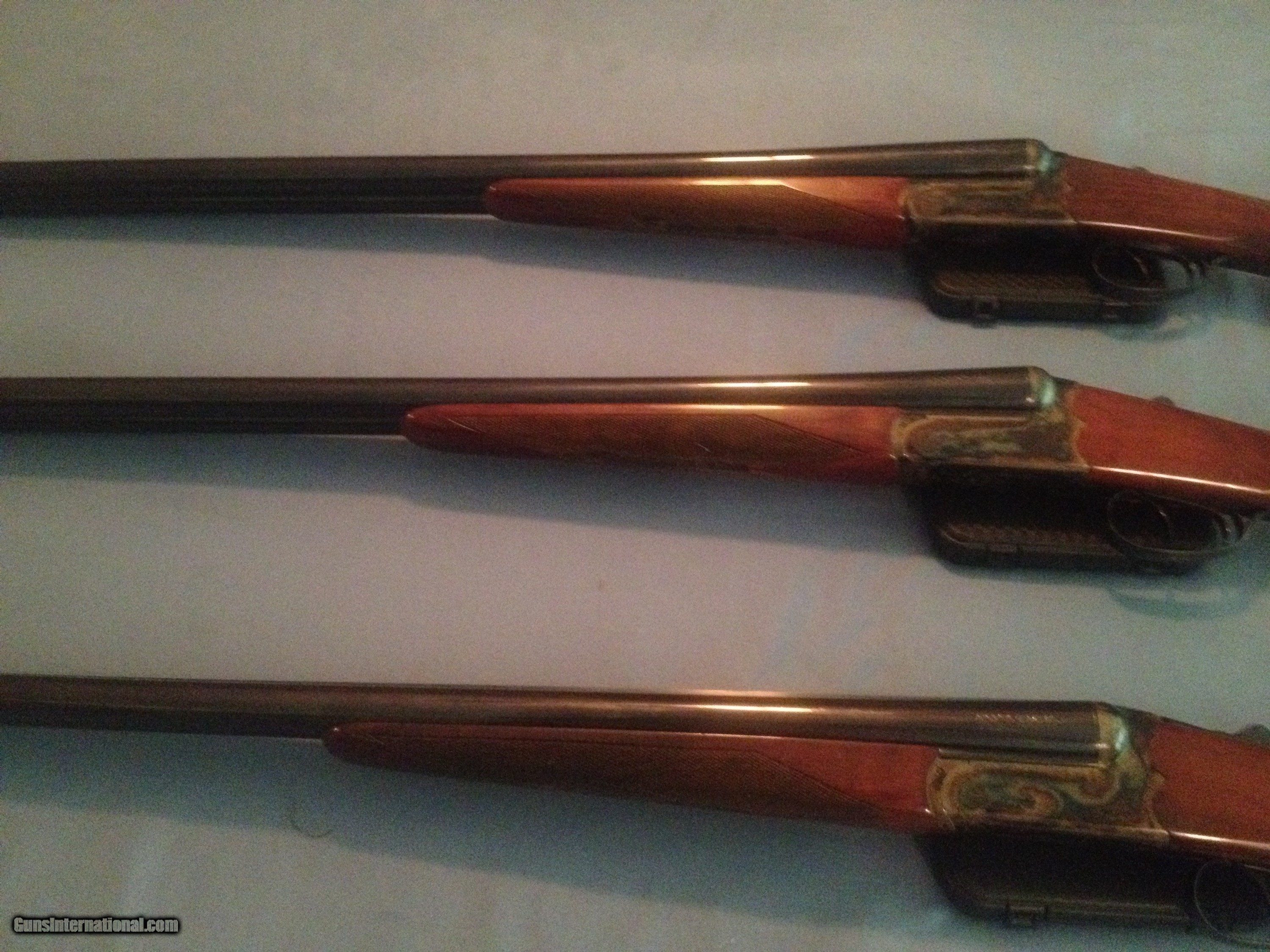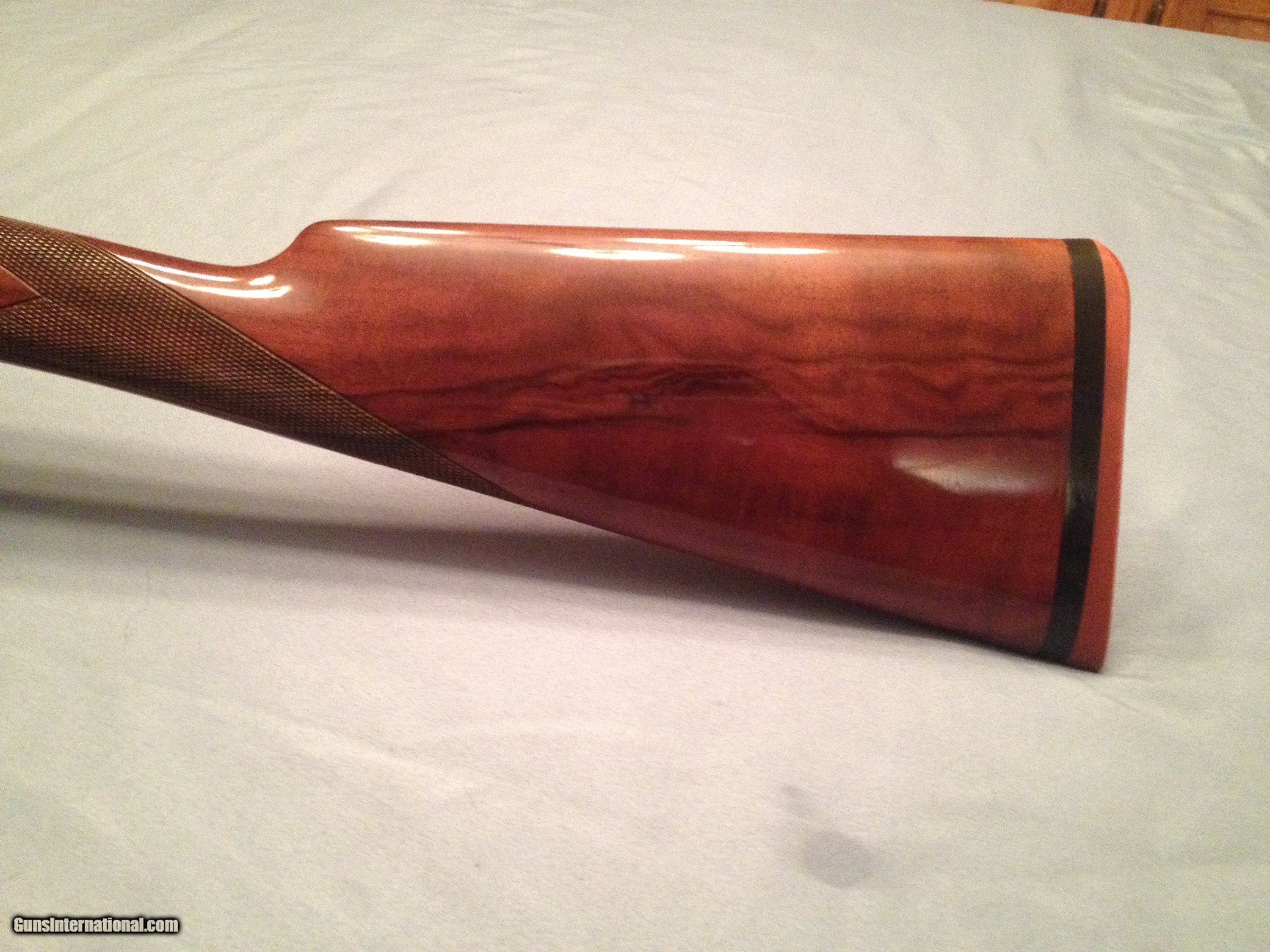 Description: Offered for sale is my Dickinson Estate shotgun in 20 ga. It has 28" barrels that are threaded for choke tubes. Comes with 5 flush mounted choke tubes (Cyl, IC, Mod, Imp Mod,Full). This shotgun is built on a true 20 ga Round Body frame. It is a trigger plate action. If you are not familar with these guns they are quality well built shotguns with really nice fit and finish. This shotgun has been hunted with some and I have shot a little Sporting Clays with it. It is a beautiful gun and is in Exc Cond with a couple of tiny handling marks in the wood finish. Blue looks like new. I also have 12 and 16 ga Estates that match this shotgun. All 28" barrels, etc. All 3 have NECG red recoil pads with quick release mounts. I will sell them separately or make a great deal on the 3. The 20 ga is priced at $1250 plus shipping SALE PENDING . Please call or text me with your questions at 479-209-2375, Bob. SOLD Manufacturer: Dickinson Model: Estate Ejectors: yes Condition: Exc Metal Condition: Exc Wood Condition: VG Bore Condition: Exc Gauge Info: 20 Stock: English/Straight grip Chokes: Choke Tubes |