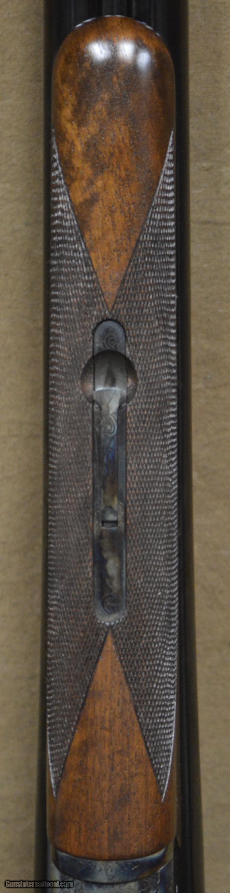 Description: New Dickinson Estate Game 12GA with 28" factory choke tubed barrels, solid checkered rib. Factory case-color hardened boxlock action. Factory double triggers, English Straight-Hand stock to checkered butt, splinter forearm. Includes factory case, chokes. SOLD |