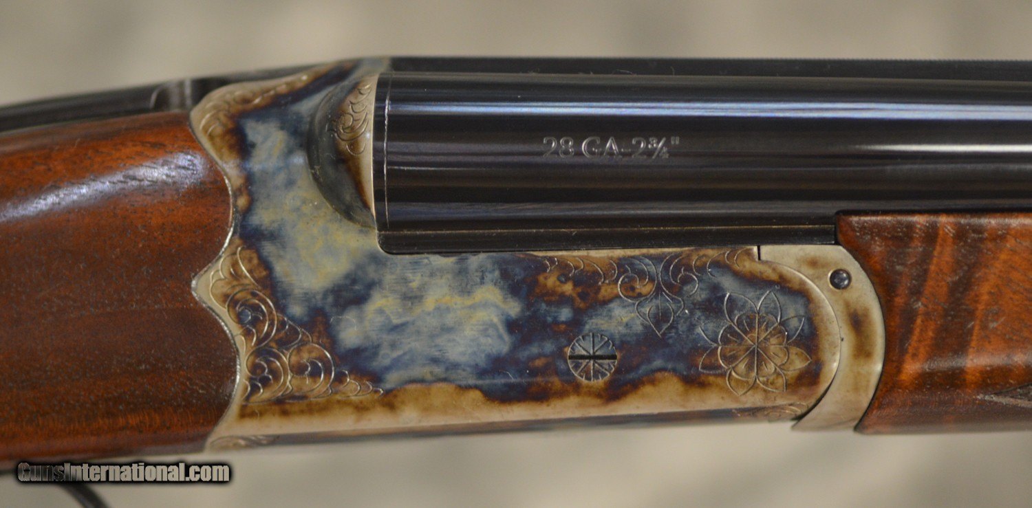 Description: New Dickinson Estate Boxlock Game 28GA with 28″ factory choke tubed barrels, factory removable choke tubes. Boxlock action, factory case-color hardened receiver with double triggers and ejectors. Factory English straight-hand stock, checkered butt and splinter forearm. Includes case, chokes and tools. SOLD Shotgun Gauge: 28 Gauge |