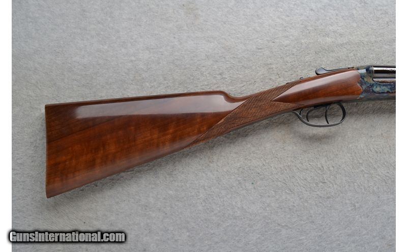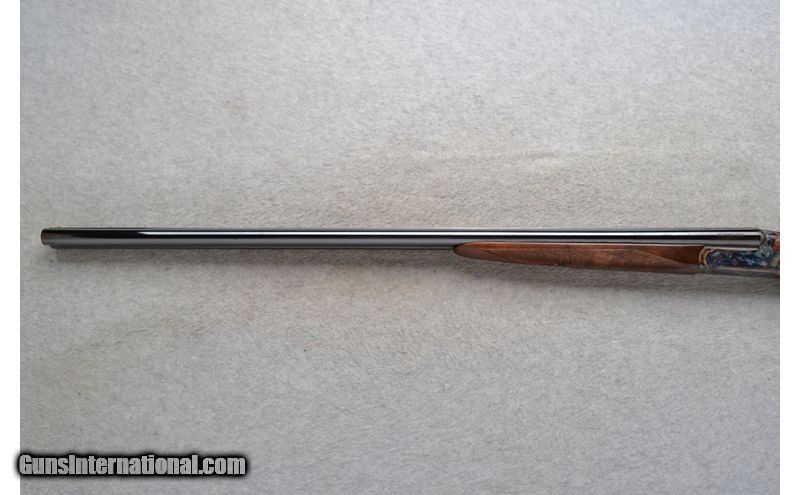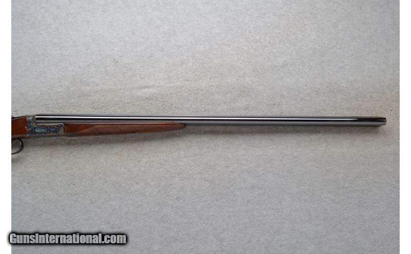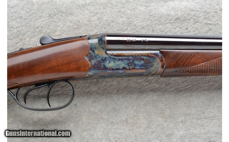 Description: This Dickinson Arms Model Estate M Series is a side by side 28 Ga. shotgun. It has 28 inch barrels with ejectors and a solid rib. A brass bead front sight. With 2 3/4 inch chambers it comes with 5 choke tubes. The butt stock is a checkered grip walnut straight grip. The forearm is a checkered grip walnut splinter. It has double triggers and a lightly engraved case colored receiver. 28 Gauge SOLD Chambers: 2 3/4 inch. Metal Condition: Excellent. Wood Condition: Excellent. Bore Condition: "Clean, bright and shiny. Barrels: 28 inch with ejectors and a solid rib. Triggers: Double. Stock Dimensions: LOP 14 5/8 inch. Fore End: Checkered grip splinter. Butt Pad: Checkered butt stock end. Weight: 5 lb. 4 oz. Sights: Brass front bead. Chokes: "Comes with 5 choke tubes - F, IM, M, IC & CL Item Location: Richfield, WI |