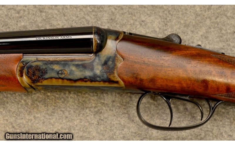 Description: This is a new Dickinson Estate SXS shotgun. SOLD Caliber Info: 20 Gauge Chambers: 3 Metal Condition: New. Wood Condition: New. Bore Condition: New. Barrels: 28 Triggers: Double triggers. Stock: Checkered straight grip Turkish Walnut stock. Stock Dimensions: 14 ¾" LOP Fore End: Checkered Turkish Walnut splinter forend. Butt Pad: Checkered Turkish Walnut. Weight: 6 ½ lbs. Sights: Brass bead. Chokes: Interchangeable chokes. Extras: Comes with the factory box, factory soft case, manual, snap caps, choke wrench, and 5 flush choke tubes (Full ~ Imp Mod ~ Mod ~ Imp Cyl ~ Cyl). Item Location: Glendale, AZ |