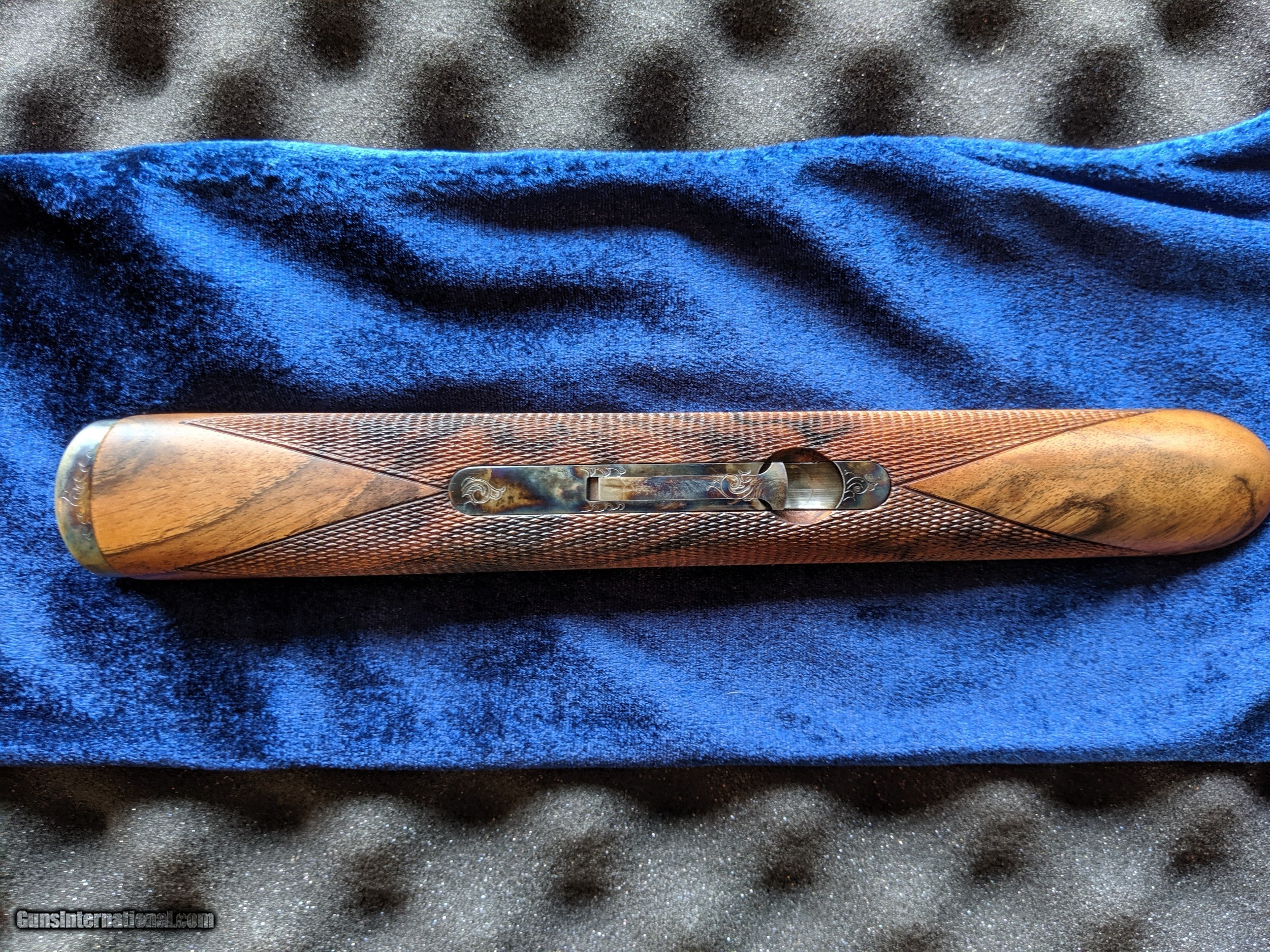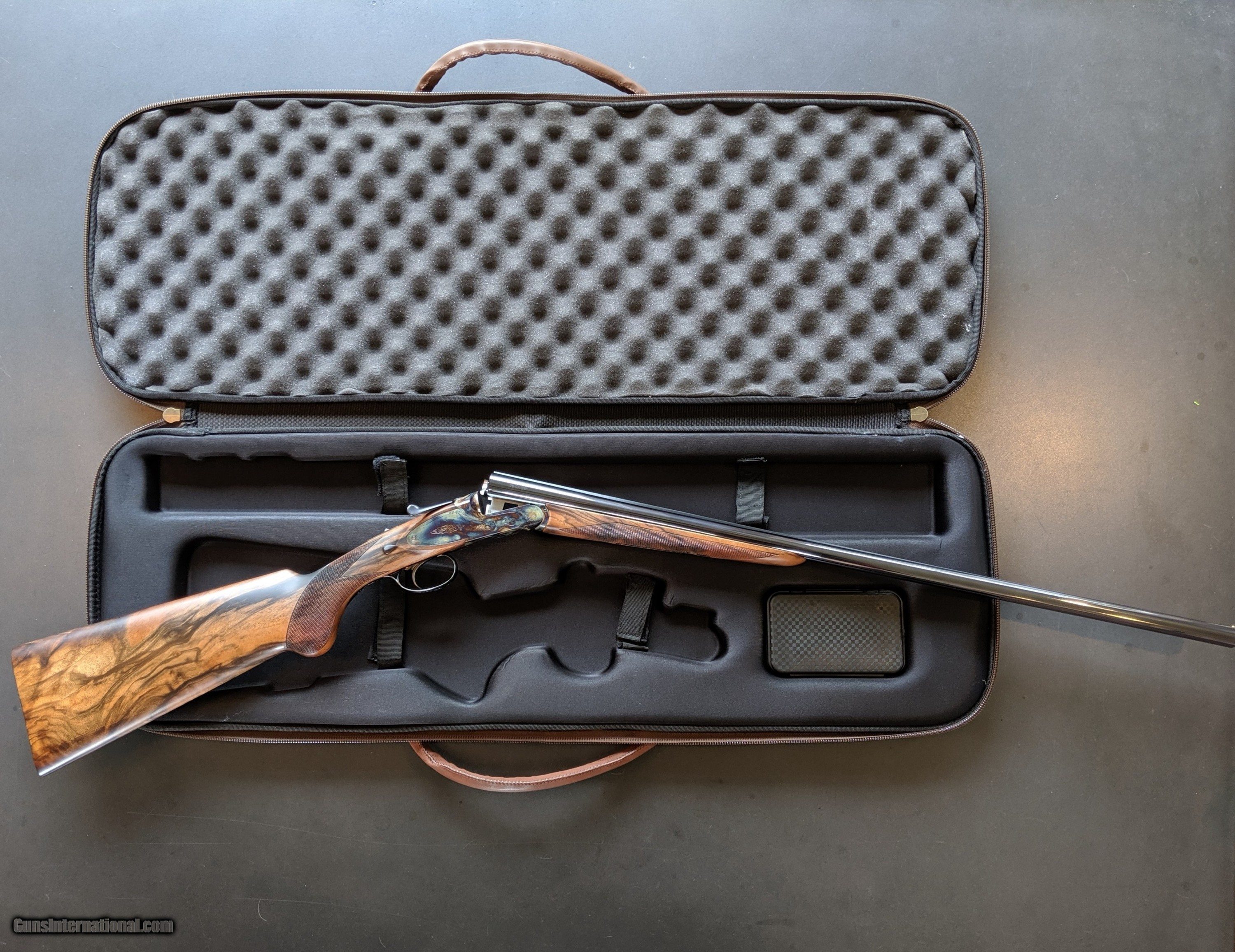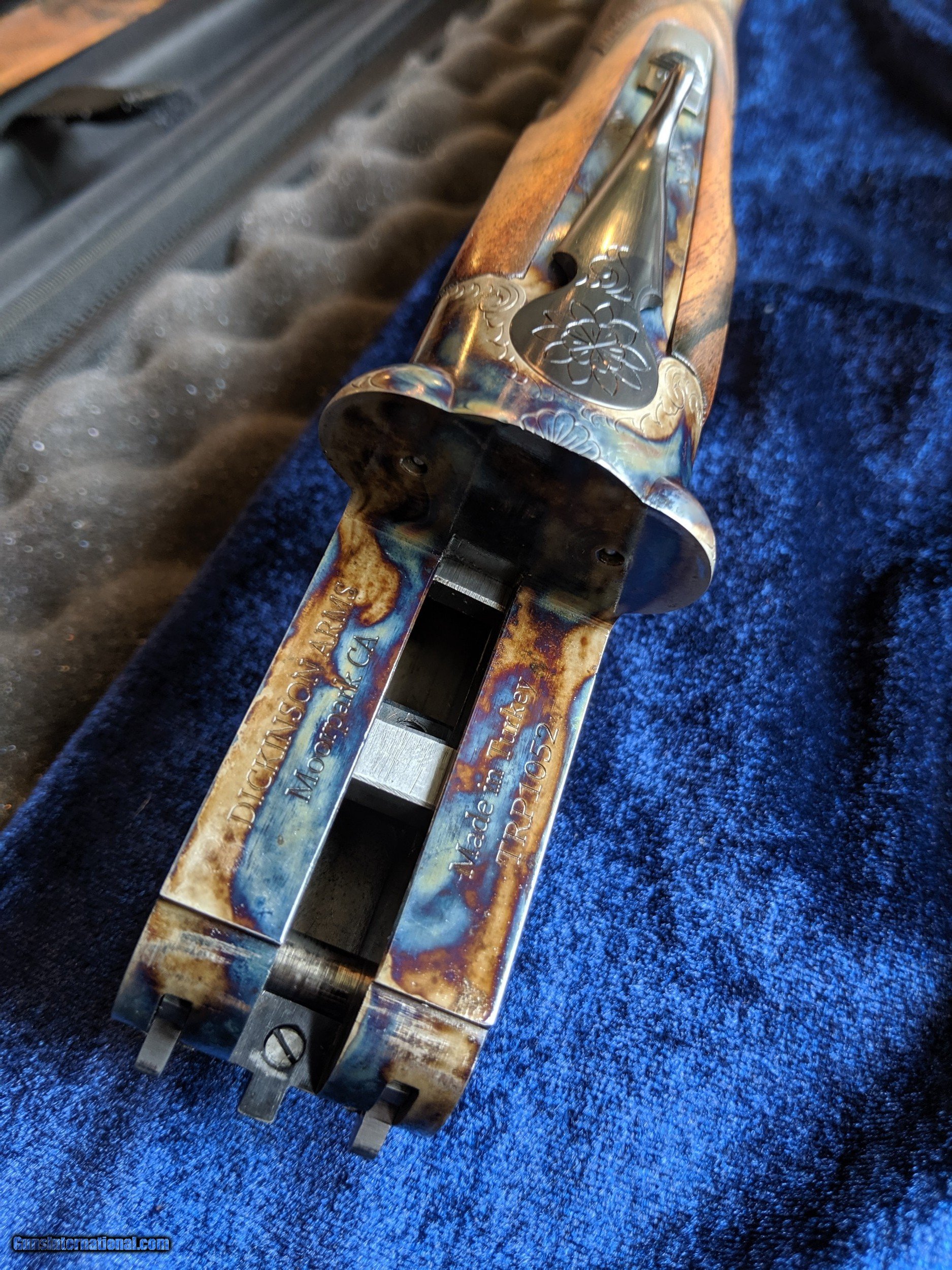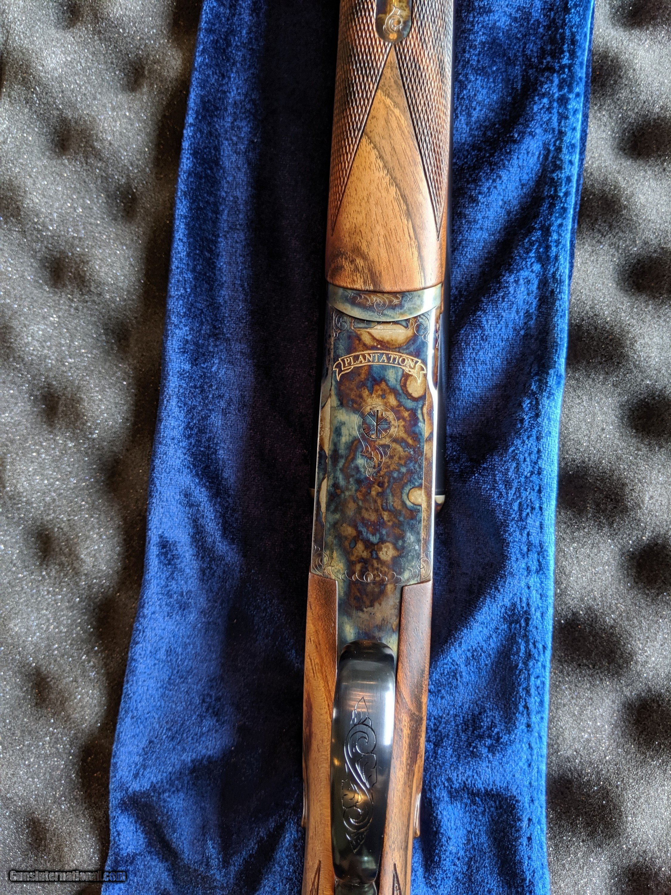 Description: A truly remarkable Grade IV Plantation from Dickinson Arms in spectacular condition! The Plantation Series side-by-side shotgun features a precision trigger plate mechanisms with cosmetic side plates, beautifully finished and engraved receivers, and premium grade, hand-fitted Turkish walnut stocks and fore-ends. This is truly a shotgun that will meet the needs of the most demanding sportsman. A pleasure to shoot as well as to look at, this distinctive side-by-side offers a receiver with a true bone-charcoal case hardening and accented by hand-engraved English scroll. This gun was a Custom Order and is valued "new" today at $3,195.00 SOLD Manufacturer: Dickinson Model: Grade IV Plantation Bore: 28 Chambers: 2.75 Ejectors: Yes Condition: Like NIB Metal Condition: Exceptional, brilliant Wood Condition: Exceptional, beautiful Bore Condition: Bright, shinny and clean Barrels: 28 Action: Side by Side Triggers: Single Gauge Info: 28 Stock: Round Knob Stock Dimensions: Standard Stock Comb: 1.5 Stock Cast: Yes, 1/8", right handed Fore End: Splinter Butt Pad: Wood, Hand Checked LOP: 14.7 Rib: Solid Finish: Oil Weight: 5.75 lbs Sights: Brass Bead Chokes: English, Notch-less, 5 Engraving: English Scroll Extras: Snap Caps (2) Case: Included |