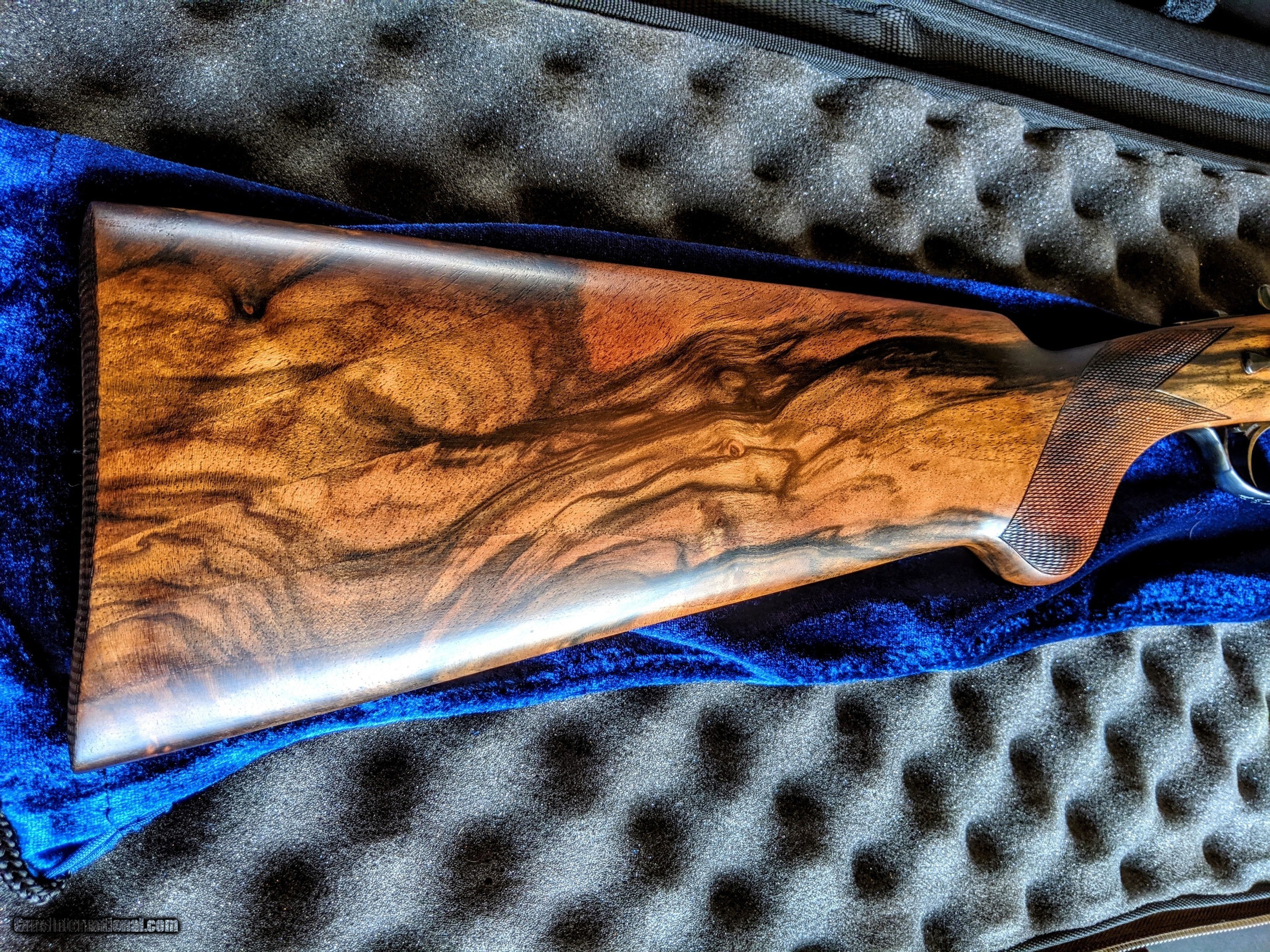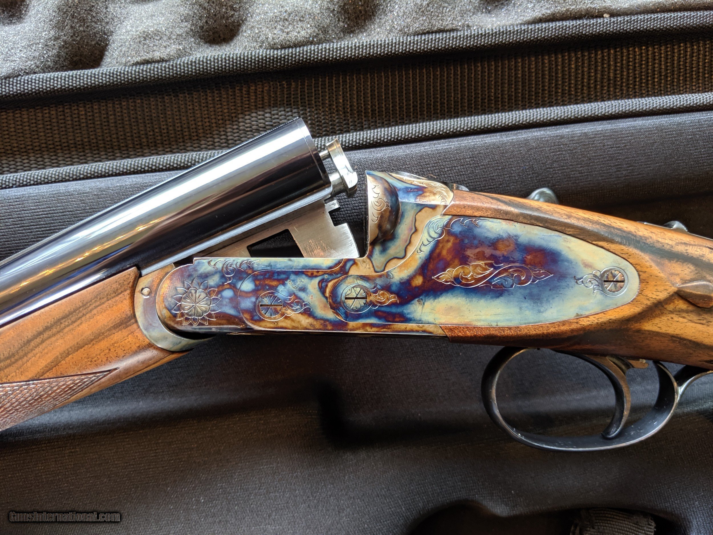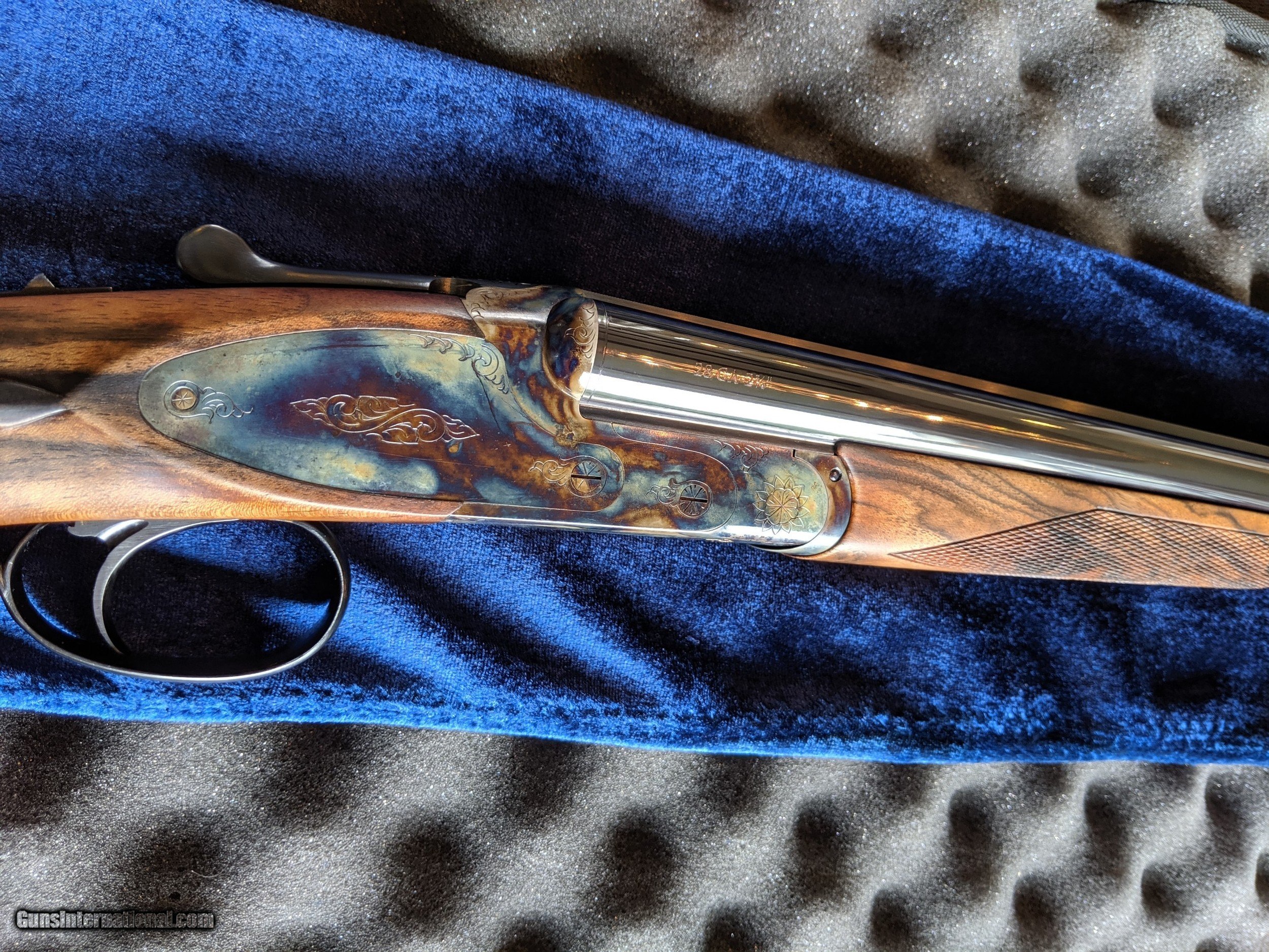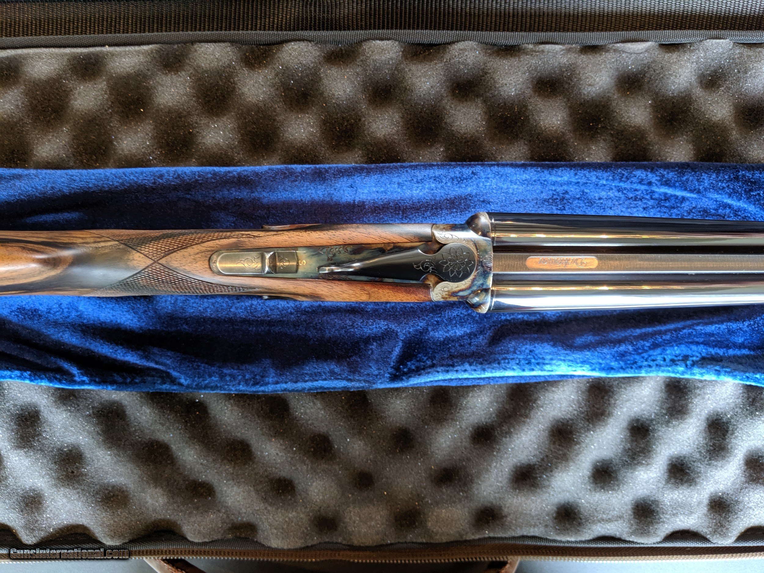 Description: A truly remarkable Grade IV Plantation from Dickinson Arms in spectacular condition! The Plantation Series side-by-side shotgun features a precision trigger plate mechanisms with cosmetic side plates, beautifully finished and engraved receivers, and premium grade, hand-fitted Turkish walnut stocks and fore-ends. This is truly a shotgun that will meet the needs of the most demanding sportsman. A pleasure to shoot as well as to look at, this distinctive side-by-side offers a receiver with a true bone-charcoal case hardening and accented by hand-engraved English scroll. This gun was a Custom Order and is valued "new" today at $3,195.00 SOLD Manufacturer: Dickinson Model: Grade IV Plantation Bore: 28 Chambers: 2.75 Ejectors: Yes Condition: Like NIB Metal Condition: Exceptional, brilliant Wood Condition: Exceptional, beautiful Bore Condition: Bright, shinny and clean Barrels: 28 Action: Side by Side Triggers: Single Gauge Info: 28 Stock: Round Knob Stock Dimensions: Standard Stock Comb: 1.5 Stock Cast: Yes, 1/8", right handed Fore End: Splinter Butt Pad: Wood, Hand Checked LOP: 14.7 Rib: Solid Finish: Oil Weight: 5.75 lbs Sights: Brass Bead Chokes: English, Notch-less, 5 Engraving: English Scroll Extras: Snap Caps (2) Case: Included |