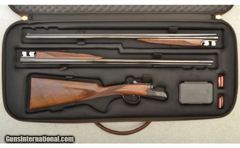 Description: A truly beautiful sub-gauge double! Built on a scaled receiver for the .410 bore it is light-weight and handles like a dream. Get your hands on one now. SOLD Caliber Info: 28 gauge/.410 bore Chambers: 2 3/4" chambers Metal Condition: Factory new Wood Condition: Factory new Bore Condition: Factory new Barrels: 28" barrel sets Triggers: Narrow double triggers Stock: Walnut straight grip stock, fine two-panel checkering Stock Dimensions: 13 3/4" LOP to rear trigger, 14 3/4" LOP to front trigger; 2 1/4" DAH; 1 7/8" DAC (center); 1 1/2" DAC (front) Fore End: Walnut splinter fore end with fancy fine cut single-panel checkering Butt Pad: Checkered wooden butt Weight: 5 pounds 6 ounces Sights: Solid tapered rib with silver tone front bead Chokes: Screw-in chokes on 28 gauge barrel set, 5 total; cylinder, improved cylinder, modified, improved modified, full. .410 bore is fixed choke; full and full Item Location: Green Bay, WI |