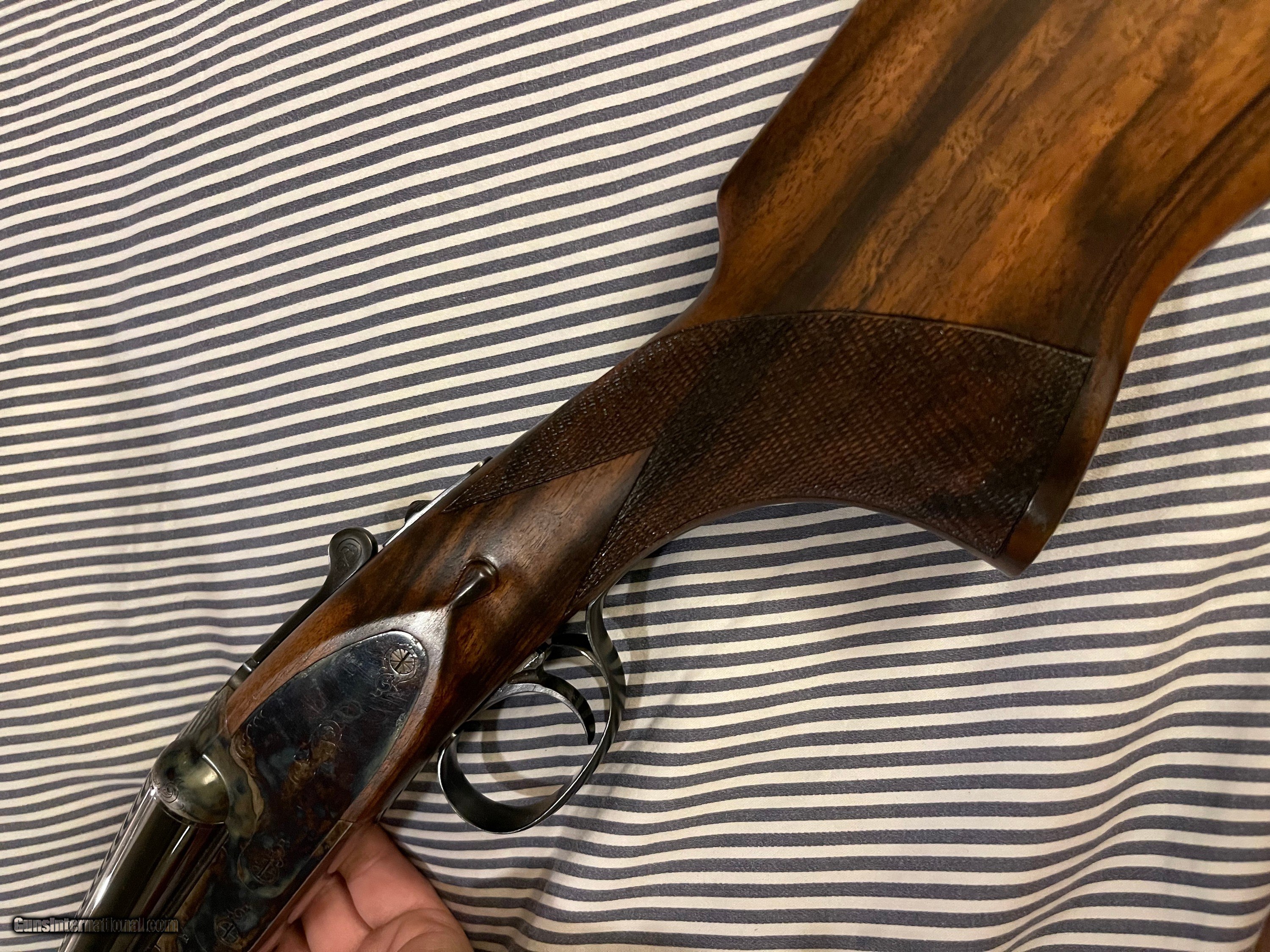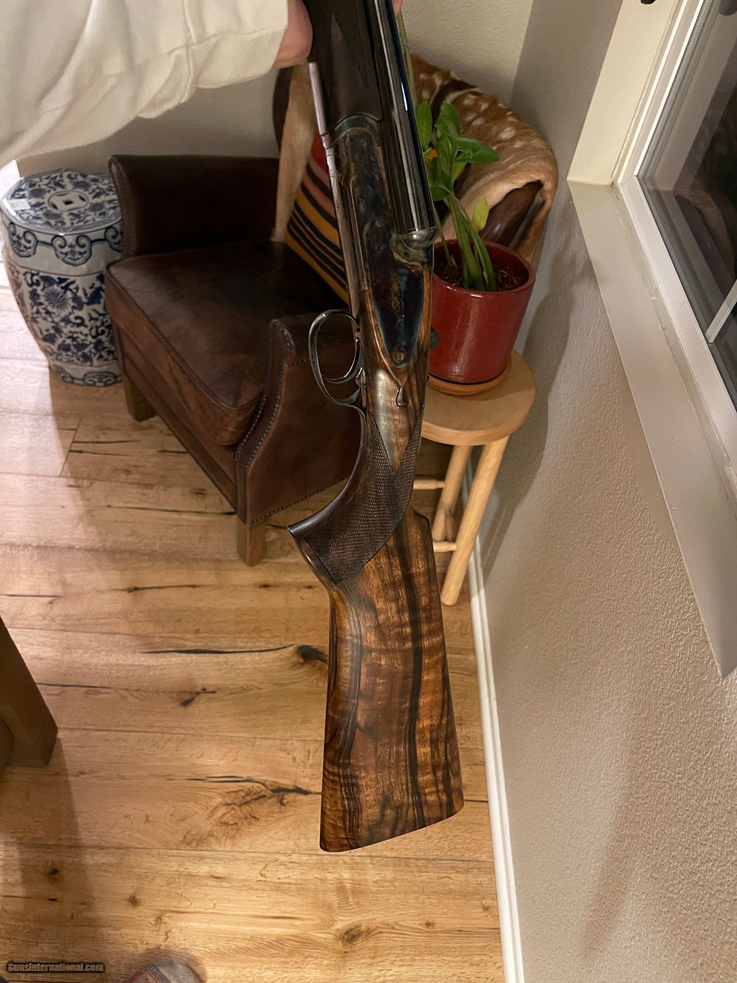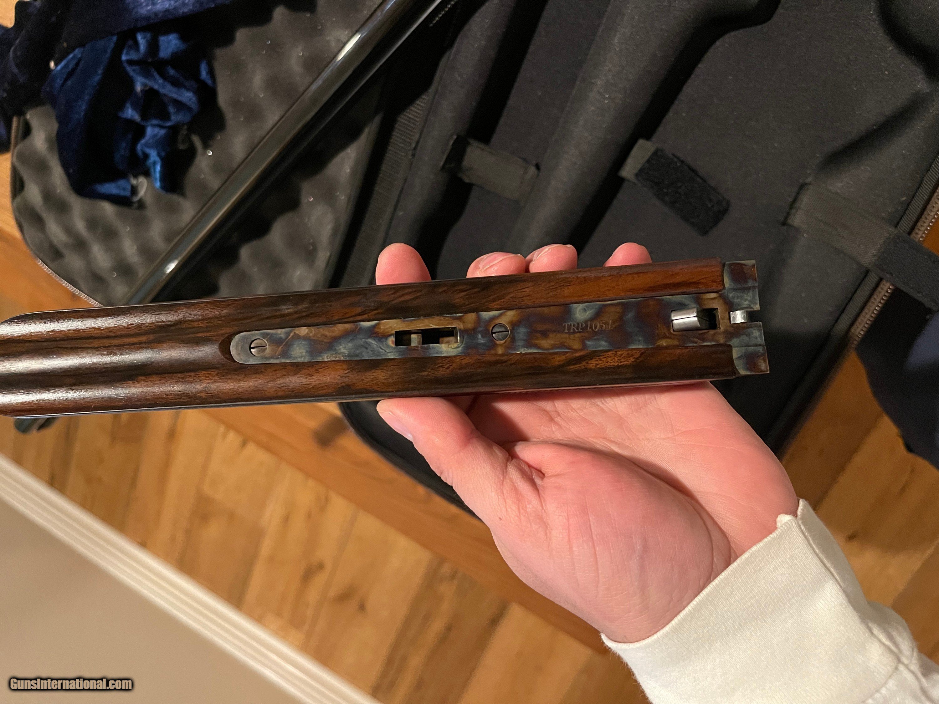 Description: SOLD PENDING SHIPMENT This is one special SxS. Dickinson Plantation model made in Turkey and completely custom. This shotgun was ordered in 2016 with grade III Turkish Walnut, single trigger, pistol grip, and schnabel forend. Gun took about a year to be built and delivered. This shotgun has fixed chokes (Left -Skeet II and Right - Skeet I). Extremely rare combination At 6.7 lbs it woule be outstanding in the field with 1 1/4 oz of plated lead for late season phesants or with 1 oz of 7.5 shot for early season grouse/woodcock. This gun is balanced perfectly to point and shoot effeciently, is extremely comfortable with a full pistol grip and swings like a dream with 28" barrels. Bores are bright and shiny. Gun has been fired approx 50 times. No flaws or field markings on this gun $75.00 for Shipping Via UPS Cashiers Check Only. Will be shipped via FFL once check is recieved Any and all questions welcome. Reasonable Offers Considered SOLD PENDING SHIPMENT SOLD Shotgun Gauge: 20 Gauge Manufacturer: Dickinson Model: Plantation Serial Number: TRP1051 Barrel Length: 28 Bore: 20 Chambers: 3 Ejectors: YES Condition: Excellent Metal Condition: Excellent Wood Condition: Excellent Bore Condition: Excellent Triggers: SINGLE Stock: TURKISH WALNUT |