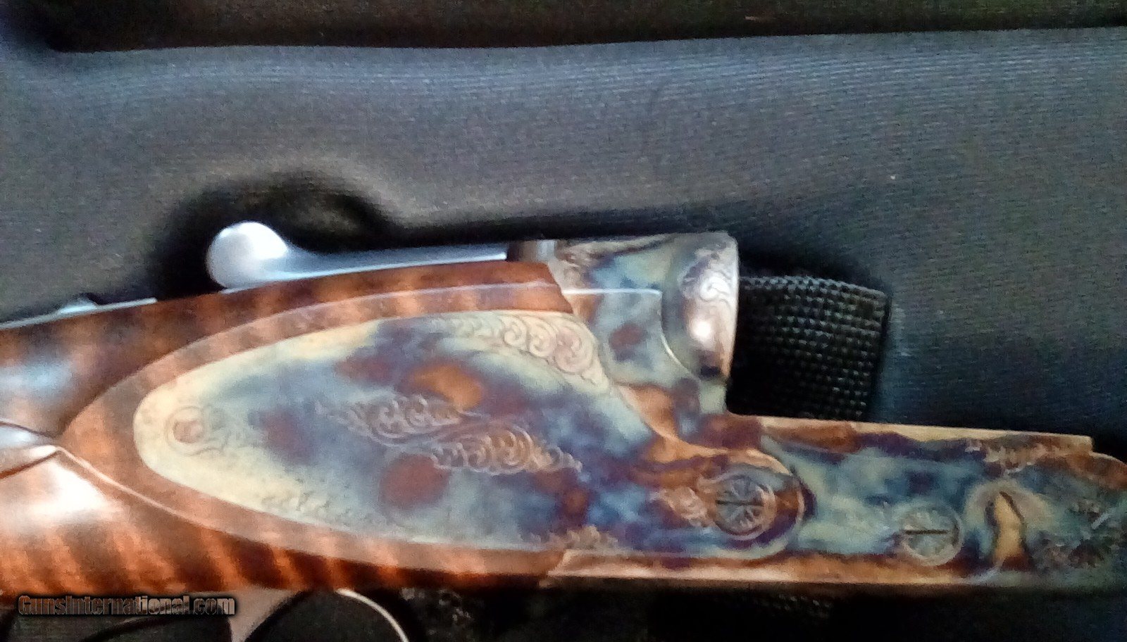 Description: DICKINSON Plantation grade 28 gauge SxS outstanding bone and charcoal case hardened. Scroll engraving on sideplated action, 28 inch barrels, level file cut rib, five thinwall choked C, IC, M, IM, F, Double trigger, Automatic ejectors, Schnabel forearm, Turkish walnut straight griped stock with checkered butt, LOL 14 3\4 . Like New in Makers Case and sleves. Is my personal gun about three hundred rounds of less through it. If you need more pictures of information please let me know. Sold SOLD Manufacturer: Dickinson Model: Plantation Bore: 28 gauge Ejectors: Yes Condition: Like New Metal Condition: Very Good Wood Condition: Very good Bore Condition: Very good Barrels: 28 inch good Barrel Type: Side by side Triggers: Double Gauge Info: 28 Stock: English straight grip Butt Pad: Wood checkered LOP: 14.75 Finish: Case hardened \ oil Weight: A little over 5lbs Chokes: Screw in Case: Yes |