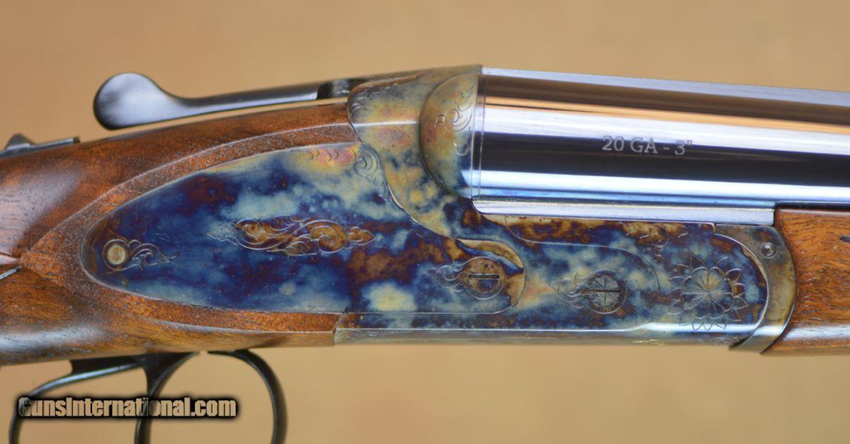 Description: New Dickinson Plantation Game 20GA with 30" factory choke tubed barrels, solid checkered rib. Factory case-colored boxlock action with sideplates. Factory double triggers, English straight-hand stock to checkered butt, splinter forearm. Includes factory case, chokes. SOLD |