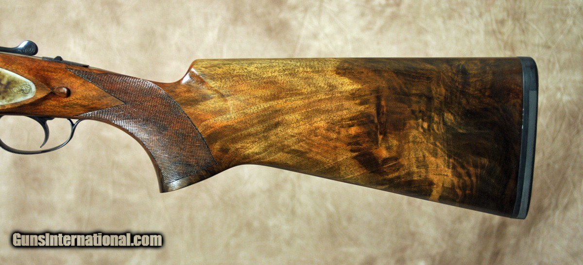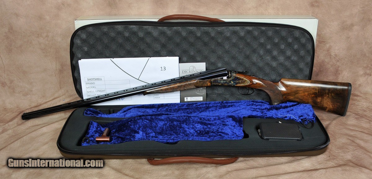 Description: New Exclusive to Pacific Sporting Arms Dickinson Plantation Sporting 16GA with 30″ factory ventilated rib, factory removable choke tubes (5). Bone charcoal case-color hardened box lock scaled 20GA action with side plates, single non-selective trigger. Outstanding factory pistol grip stock with right-hand palm swell, beaver tail forearm with Schnabel. Includes factory case, chokes and tools. SOLD |