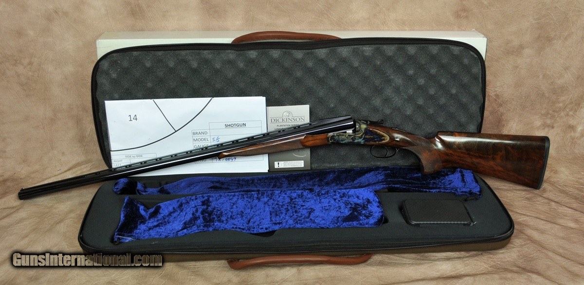 Description: New Exclusive to Pacific Sporting Arms Dickinson Plantation Sporting 16GA with 30″ factory ventilated rib, factory removable choke tubes (5). Bone charcoal case-color hardened box lock scaled 20GA action with side plates, single non-selective trigger. Outstanding factory pistol grip stock with right-hand palm swell, beaver tail forearm with Schnabel. Includes factory case, chokes and tools. SOLD |
