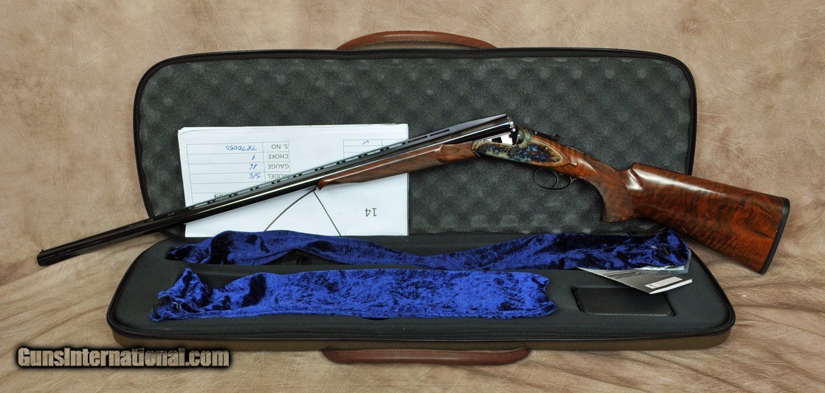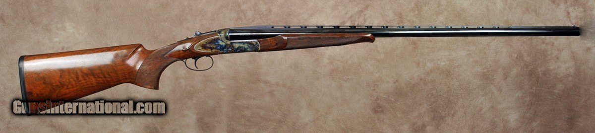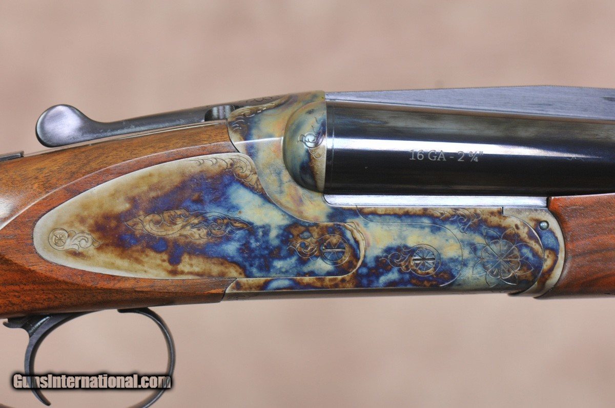 Description: New Exclusive to Pacific Sporting Arms Dickinson Plantation Sporting 16GA with 30″ factory ventilated rib, factory removable choke tubes (5). Bone charcoal case-color hardened boxlock scaled 12GA action with side plates, single non-selective trigger. Outstanding factory pistol grip stock with right-hand palm swell, beaver tail forearm with Schnabel. Includes factory case, chokes and tools. SOLD |
