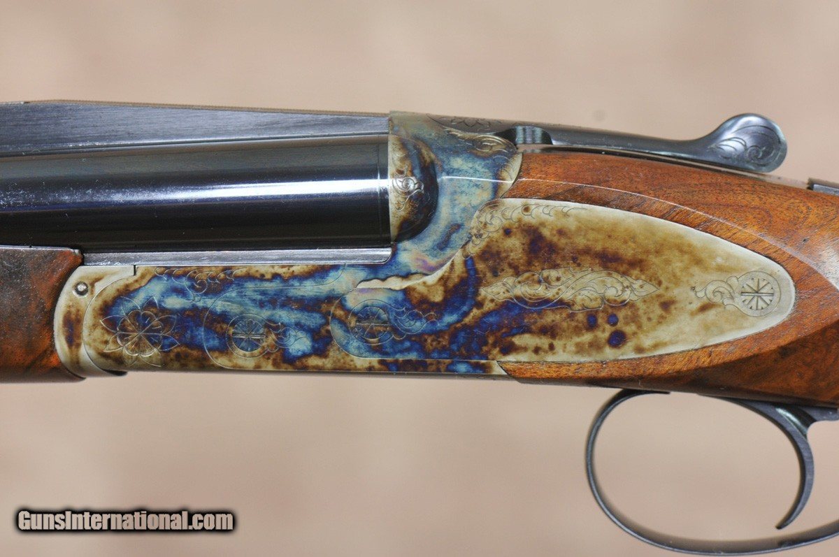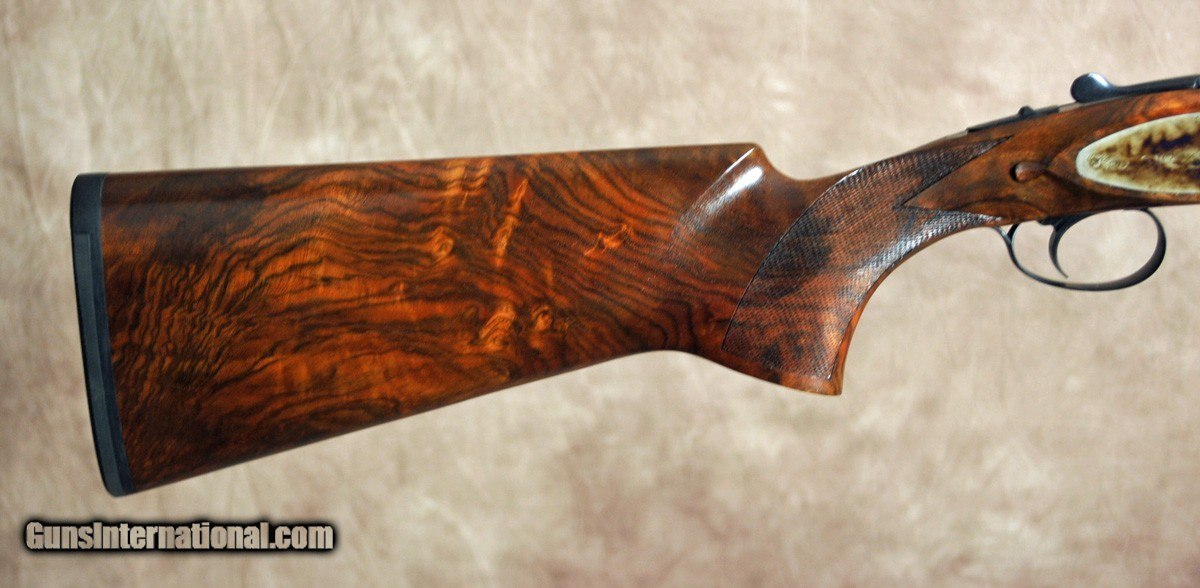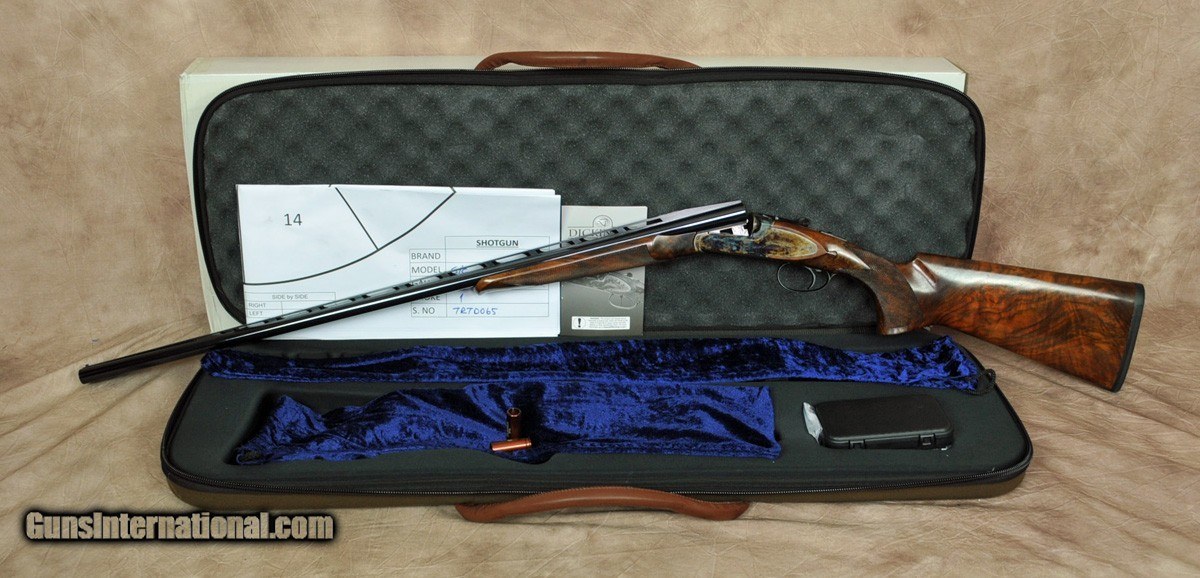 Description: New Exclusive to Pacific Sporting Arms Dickinson Plantation Sporting 28GA with 30″ factory ventilated rib, factory removable choke tubes (5). Bone charcoal case-color hardened box lock scaled 20GA action with side plates, single non-selective trigger. Outstanding factory pistol grip stock with right-hand palm swell, beaver tail forearm with Schnabel. Includes factory case, chokes and tools. SOLD |