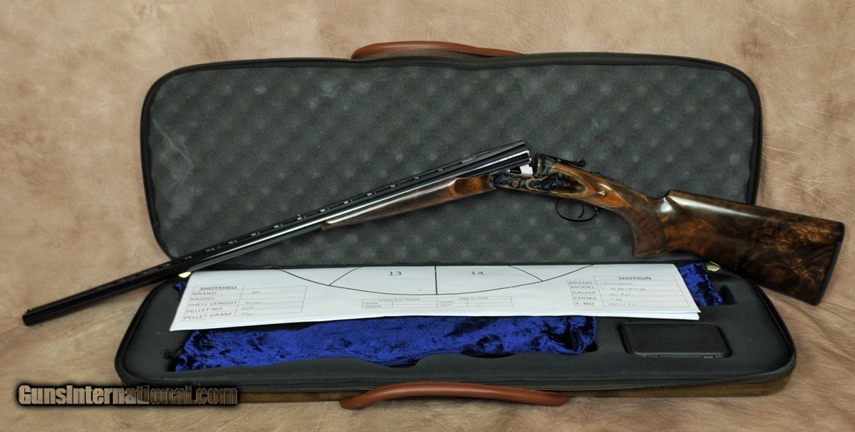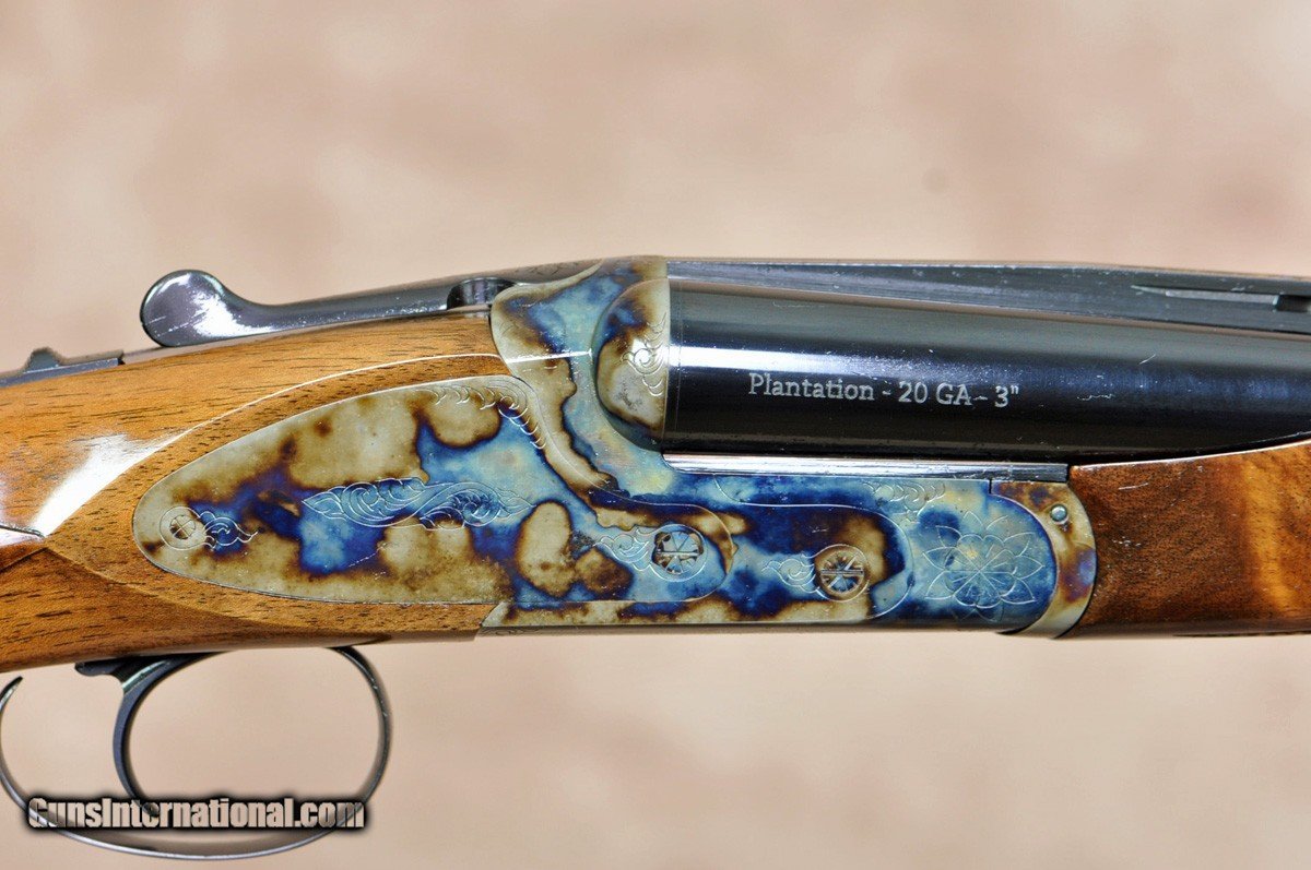 Description: New Exclusive to Pacific Sporting Arms Dickinson Plantation Sporting 20GA with 30″ factory ventilated rib, factory removable choke tubes (5). Bone charcoal case-color hardened boxlock scaled 20GA action with sideplates, single non-selective trigger. Outstanding factory pistol grip stock with right-hand palmswell, beavertail forearm with schnabel. Includes factory case, chokes and tools. SOLD |