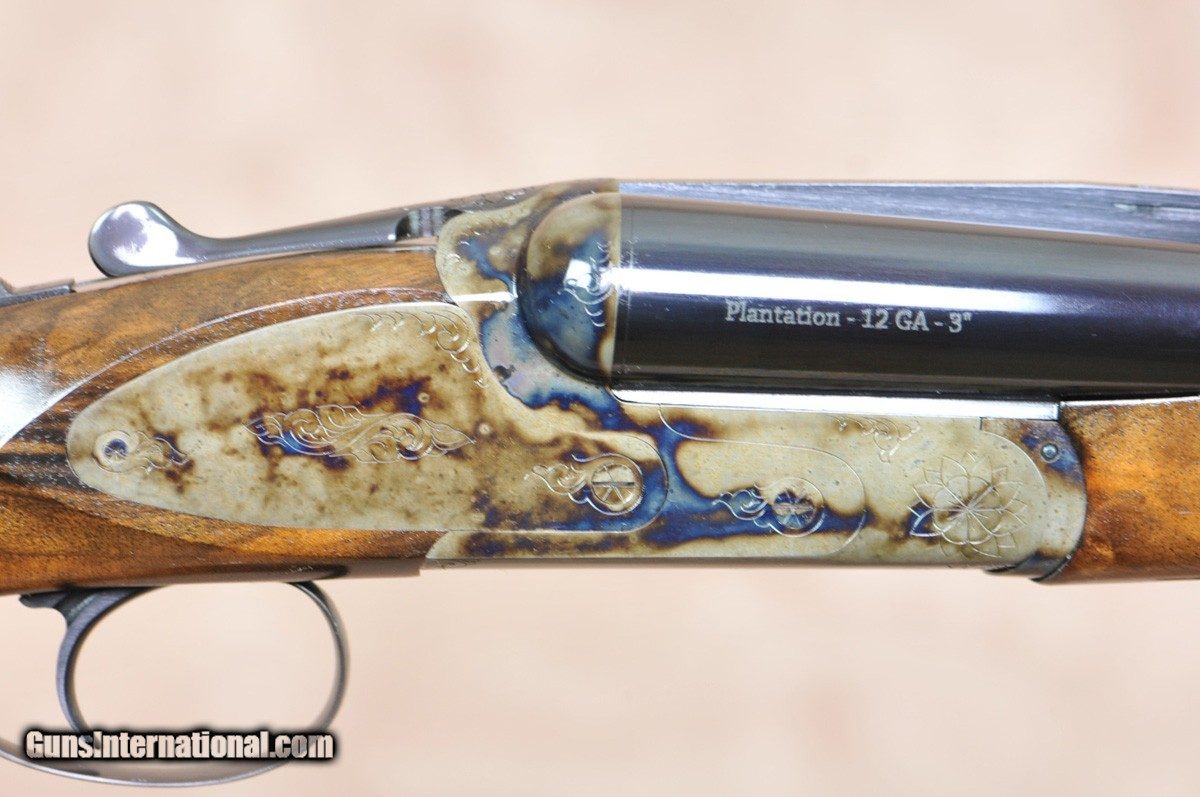 Description: New Exclusive to Pacific Sporting Arms Dickinson Plantation Sporting 12GA with 30″ factory ventilated rib, factory removable choke tubes (5). Bone charcoal case-color hardened boxlock scaled 12GA action with side plates, single non-selective trigger. Outstanding left handed factory pistol grip stock with right-hand palm swell, beaver tail forearm with Schnabel. Includes factory case, chokes and tools. SOLD |