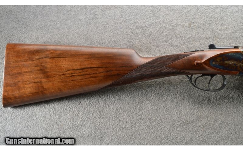 Description: 28 inch barrel with hand-rubbed English-oil finish. Classic English stock made with Turkish walnut. Trigger-plate action and double triggers. A Cabela's exclusive, the Dickinson Plantation Side-by-Side Shotgun boasts a 28 inch barrel with a classic, hand-rubbed English-oil finish as well as a timeless English stock made with premium Turkish walnut. Also features trigger-plate action, color cased hardening receiver, double triggers, selective automatic ejectors and manual safety. English scroll engraving completes the package. Includes snap caps, five choke tubes and choke tube pouch. SOLD Manufacturer: New From Dickinson. Caliber Info: 20 Gauge Chambers: Side X Side trigger plate action with ejectors. Metal Condition: New From Dickinson. Wood Condition: New From Dickinson. Bore Condition: New From Dickinson. Barrels: 28 Inch blue with a solid rib. Triggers: Double Stock: Checkered Turkish walnut English stock and fore grip Stock Dimensions: 14 3/4 Inch LOP. Fore End: Matching checkered walnut. Butt Pad: Checkered wood. Weight: 6 Lbs 3 Oz. Sights: Single front bead on the solid rib. Chokes: Full set of 5 Extras: Comes with a leather covered hard case and all the factory accessories. Item Location: Owatonna, MN |