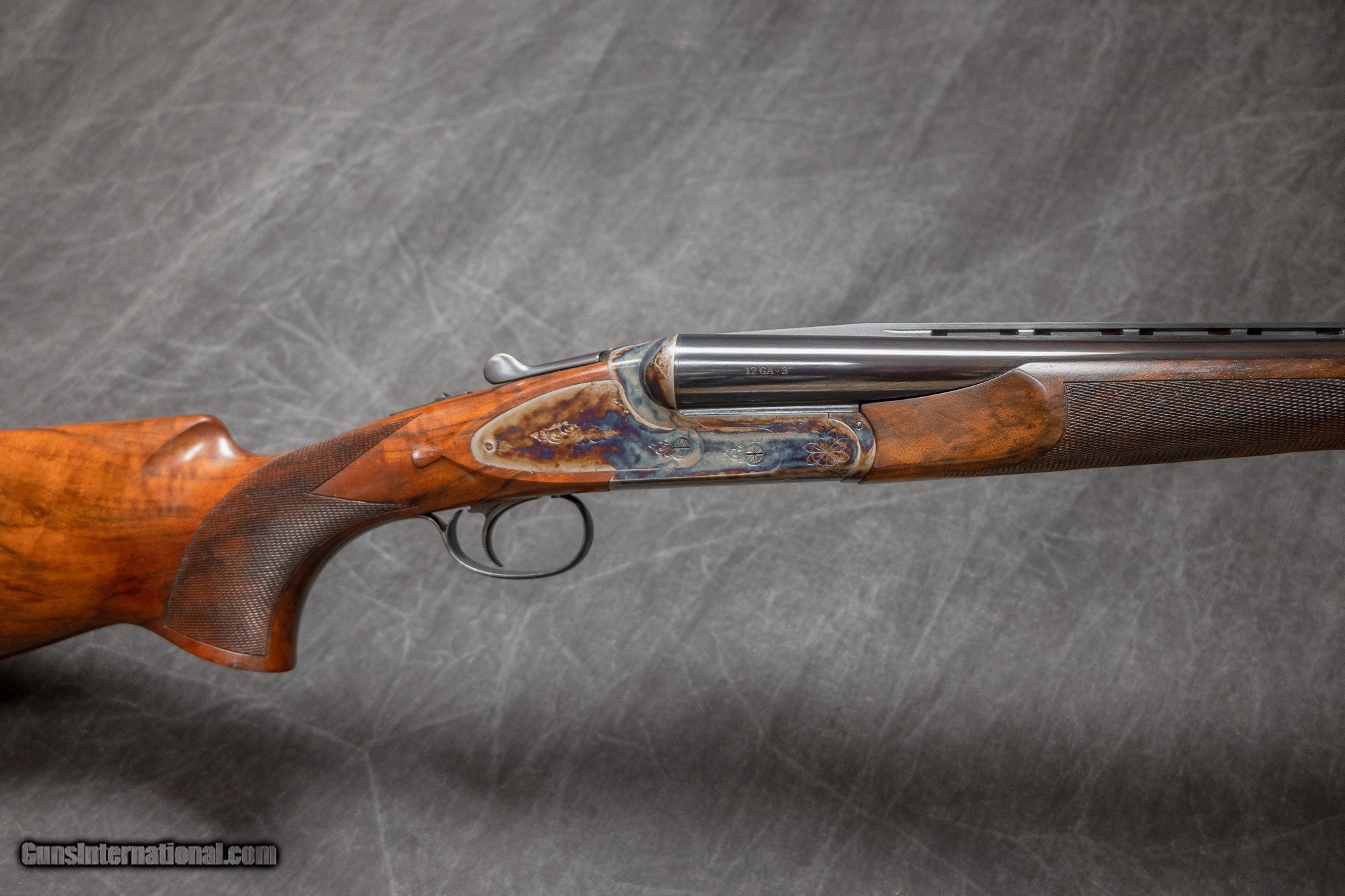Description: Specifications Maker:DICKINSON Model:PLANTATION SPORTING Gauge/Caliber:12GA Barrel Length:32" Chambers:2 3/4" & 3" Rib Design:HIGH VENTILATED RIB Weight:7LBS 9OZS Bore/Chokes Choke Tubes:5 TEAGUE STYLE FLUSH CHOKES C,I/C,M,I/M,F Stock Dimensions Drop At Comb:1 3/8" Drop At Face:1 5/8" 4 1/2" Drop At Heel:2" Cast At Face:1/16" OFF 4 1/2" Cast At Heel:1/8" OFF Length Of Pull:14 3/4" Pitch:2" / 4 DEGREES Special Features: BOXLOCK, SIDEPLATES, COLOR CASE HARDENED (BONE & CHARCOAL) SPORTING HIGH VENTILATED RIB, SINGLE NON SELECTIVE TRIGGER, MANUAL SAFETY, FULL PISTOL GRIP WITH RIGHT HAND PALM SWELL & BEAVERTAIL FOREARM, MAKERS RECOIL PAD, MAKERS CASE, MADE IN TURKEY. CONDITION: NEW Circa: NEW / SN TRR0456 Number:N9084 Price:$ 3,295.00 SOLD |