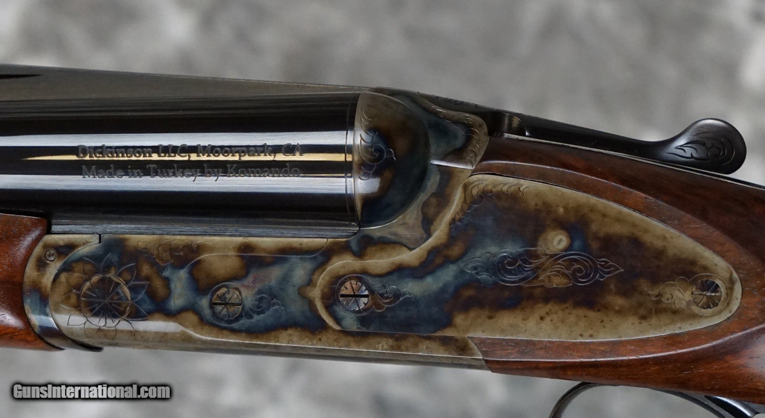 Description: New Dickinson Plantation Vent Rib Sporting 12GA with 32" factory choke tubed barrels, factory ramped ventilated rib. Case-color hardened side-plates, single non-selective trigger and ejectors. Factory pistol grip sporting stock with right-hand palmswell and schnabel forearm. Includes case, chokes and tools. SOLD Shotgun Gauge: 12 Gauge |