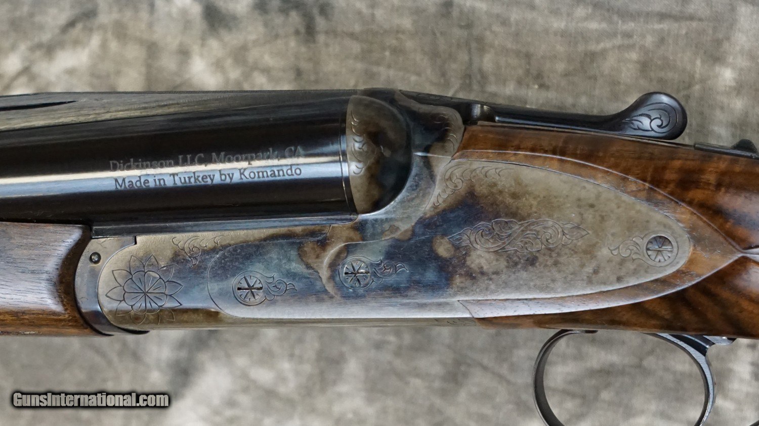Description: New Dickinson Plantation Vent Rib Sporting 12GA with 32" factory choke tubed barrels, factory ramped ventilated rib. Case-color hardened side-plates, single non-selective trigger and ejectors. Factory pistol grip sporting stock with right-hand palmswell and schnabel forearm. Includes case, chokes and tools. SOLD Shotgun Gauge: 12 Gauge |
