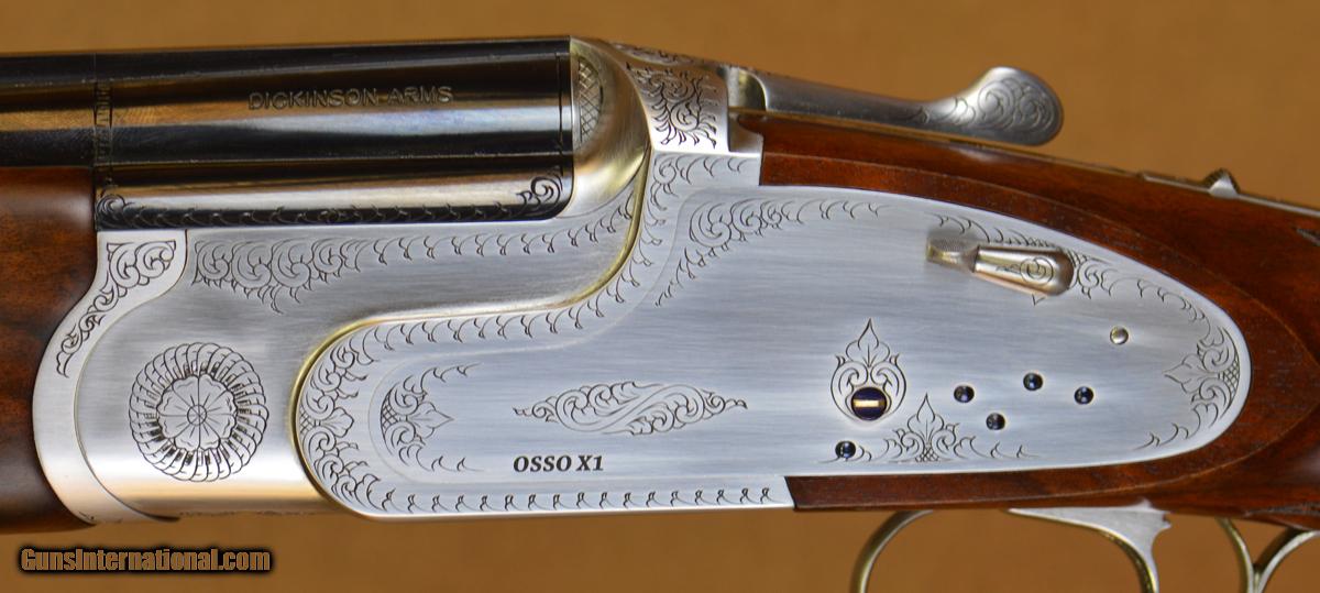 Description: New Dickinson Side-Lock Sporting 12GA with 30" factory Choke tubed barrels, flat tapered rib. Coin finished, hand-detachable full side-lock action with scroll engraving. Factory adj. comb sporting stock with right-hand palmswell and beavertail forearm. This is a full side-lock action target gun that represents and outstanding value. Includes factory case, chokes and tools. SOLD |