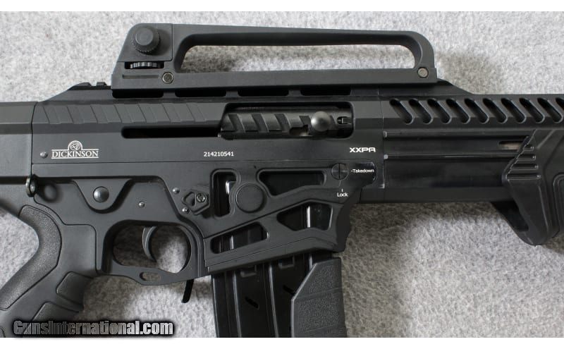 Description: Dickinson XXPA-12 shotgun is a combat dual-mode shotgun, adjustable for semi-automatic or pump-action operation. In semi-automatic mode a gas piston drives a bolt carrier; in pump-action mode the same components are driven by sliding the fore-end backwards. XXPA-12 is fed by 5 round detachable box magazine. 12 Gauge SOLD Chambers: 3 inch Metal Condition: Very good with some scratches Bore Condition: "Excellent, with signs of use Barrels: 18.5 inch barrel Stock Dimensions: 13 3/4 inch LOP Weight: 9 lbs. 13 oz. Sights: Aperture rear sight with post front and rail for mounting optics Item Location: Lehi, UT |