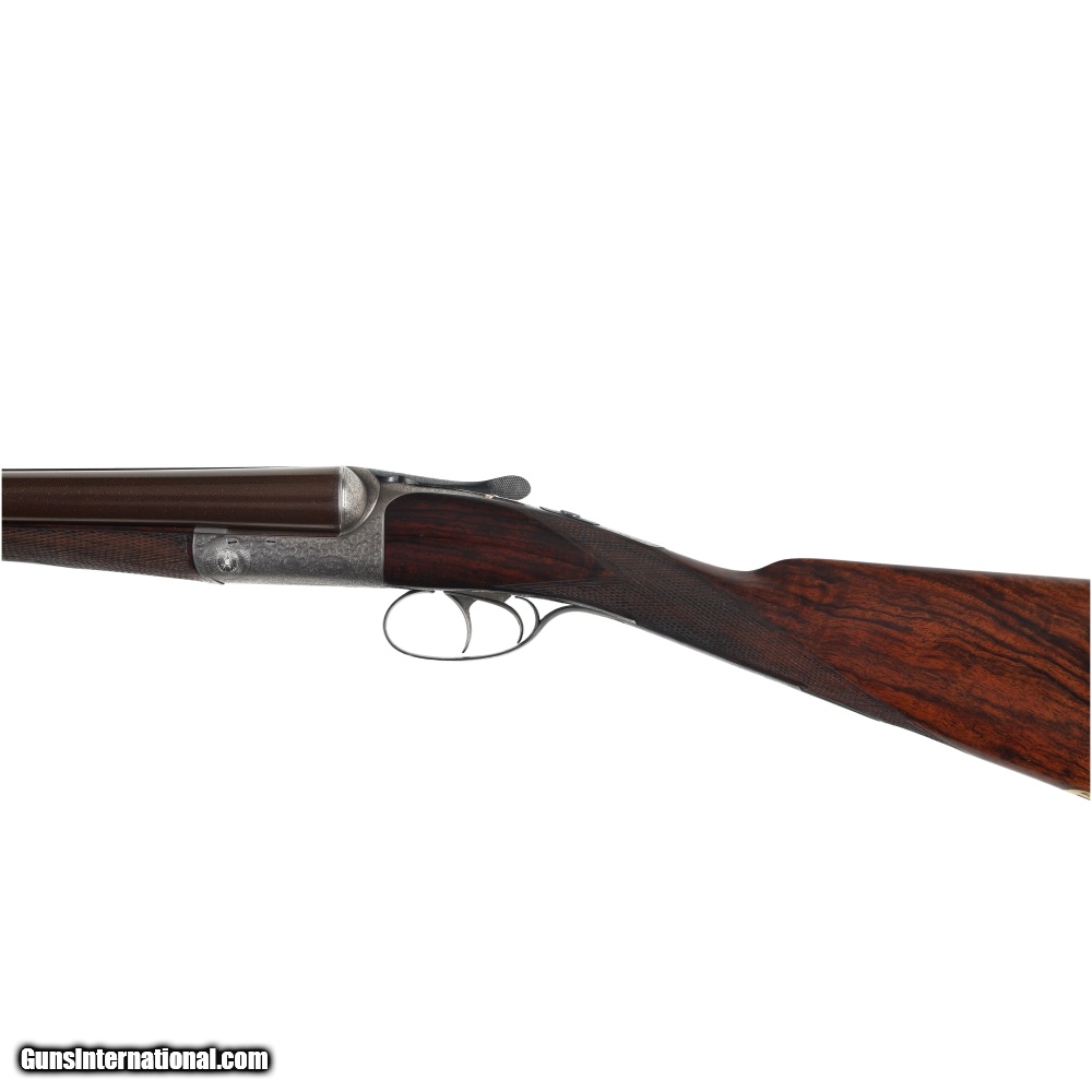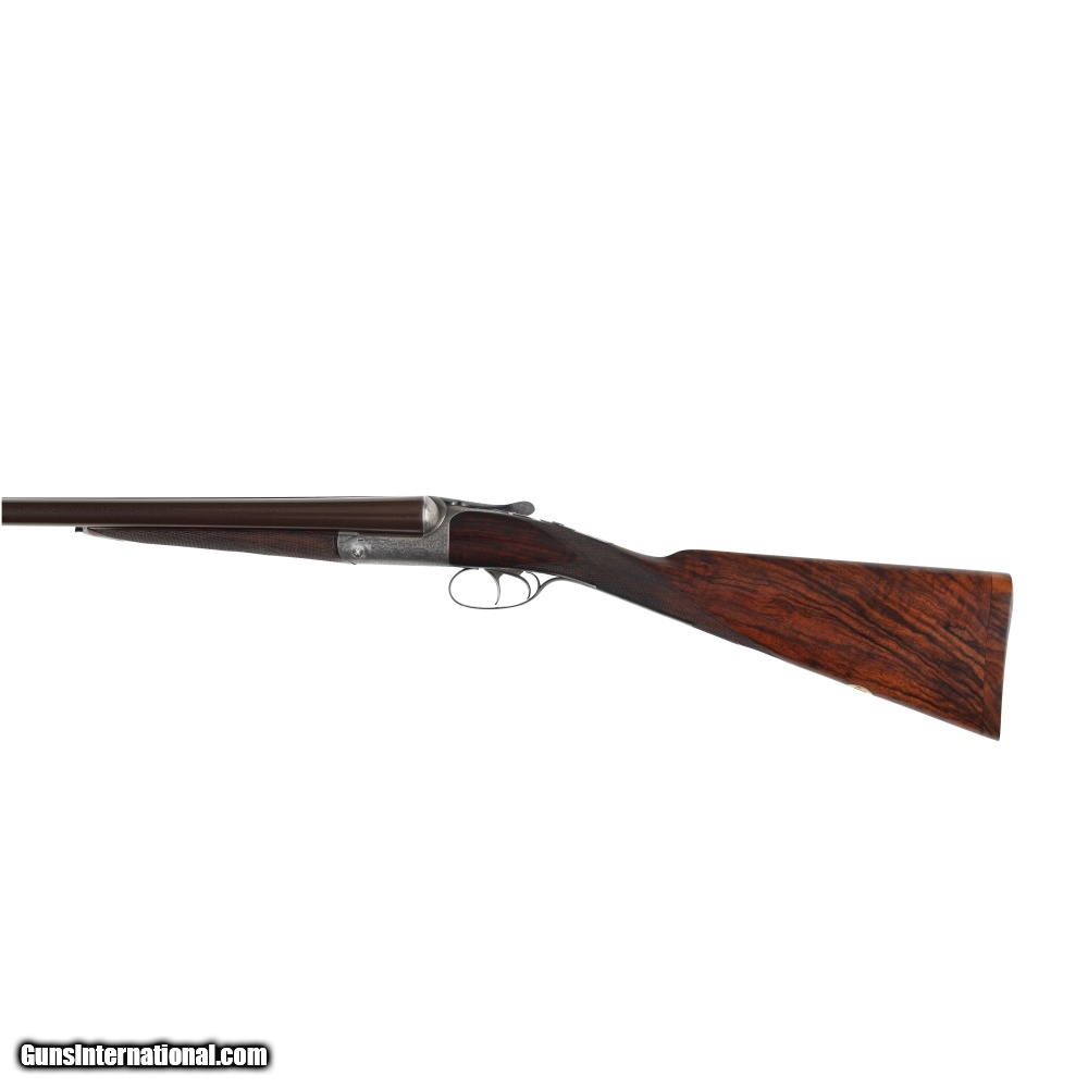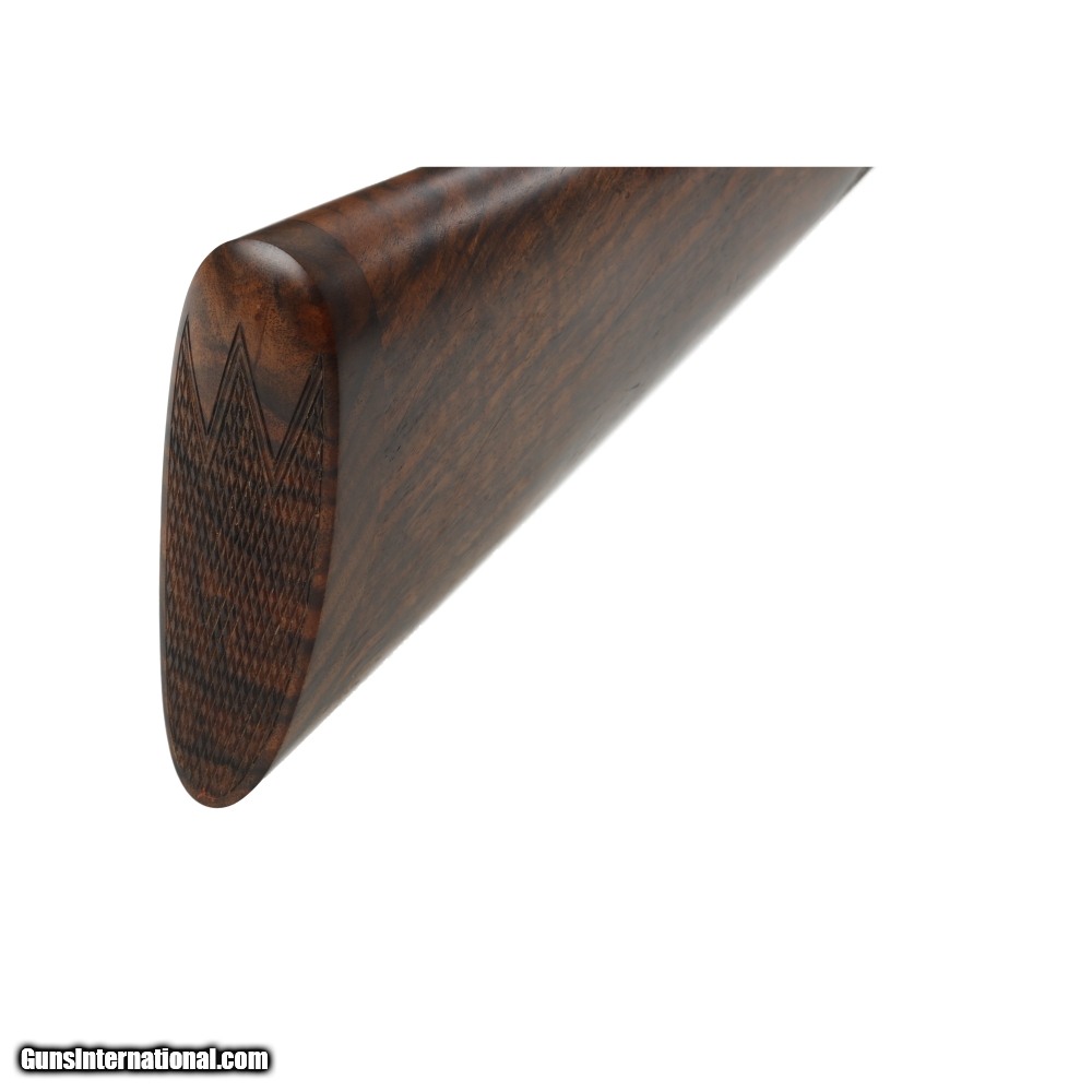 Description: This John Dickson & Son Round action boxlock, manufactured around 1887 is in magnificent condition for its age. It is furnished handsomely in a set of hand checkered figured walnut stocks and fitted with a 29 inch Damascus barrel set made in a bold twist pattern and finished in a characteristic English brown. Something of note on this particular shotgun is that despite its age it has been re proofed with CIP nitro proofs, though discretion is always advised with Damascus barrels. The receiver is engraved with a beautiful fine scroll pattern and shows almost no signs of wear. The stocks are the only aspects that show any signs of this firearm's age, they show very light marks from handling and one of the past owners had the stock lengthened by approximately ¾ of an inch. Manufactured in: England Hand: Right Hand Action Finish: Engraved Action Description: Side by Side Metal Finish: Original Barrel Length: 29 Inches Barrel Condition: Very Good Stock Finish: Original Stock Condition: Very Good Type of Butt: Checkered Butt Pad Thickness: NONE Grip: Straight Grip Forend: Checkered Splinter Cast Amount: 1/2" Extra Barrels: No. SOLD Antique: Yes Manufacturer: John Dickson & Son Model: Round Action Chambers: 2 3/4 Ejectors: Yes Condition: Preowned Metal Condition: Excellent Action: Boxlock Triggers: Double Gauge Info: 12 Gauge Stock Comb: 1 1/2 Stock Heel: 2 1/4 Stock Cast: Off Fore End: Checkered Splinter Butt Pad: NONE LOP: 15 Rib: Concave Game Finish: Original Weight: 6.5 lbs Manufacture Date: 1887 Chokes: IC/M Extras: No. Case: NONE |