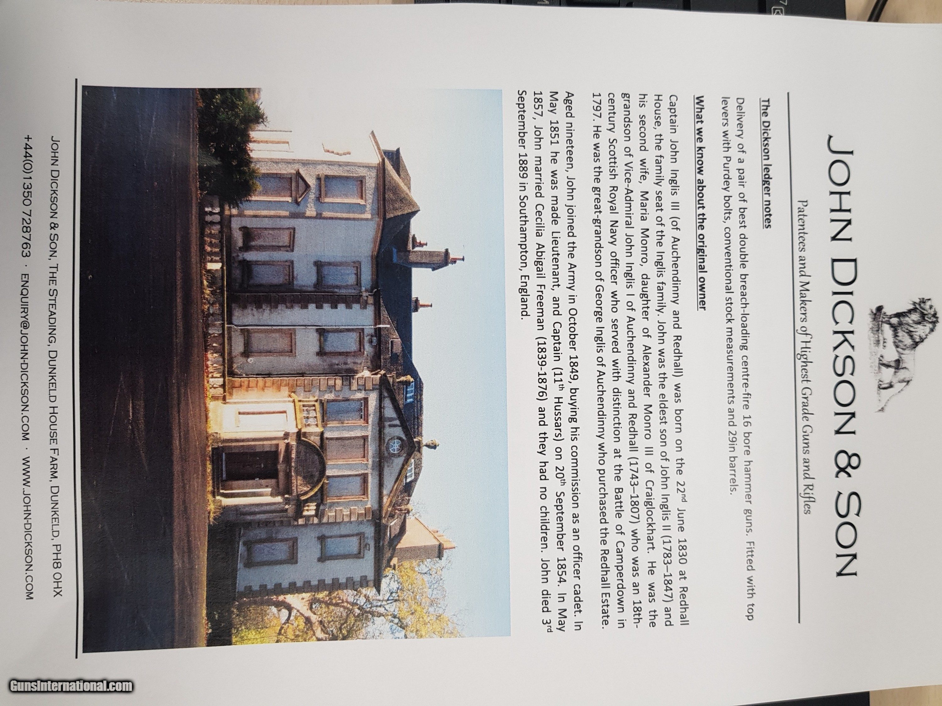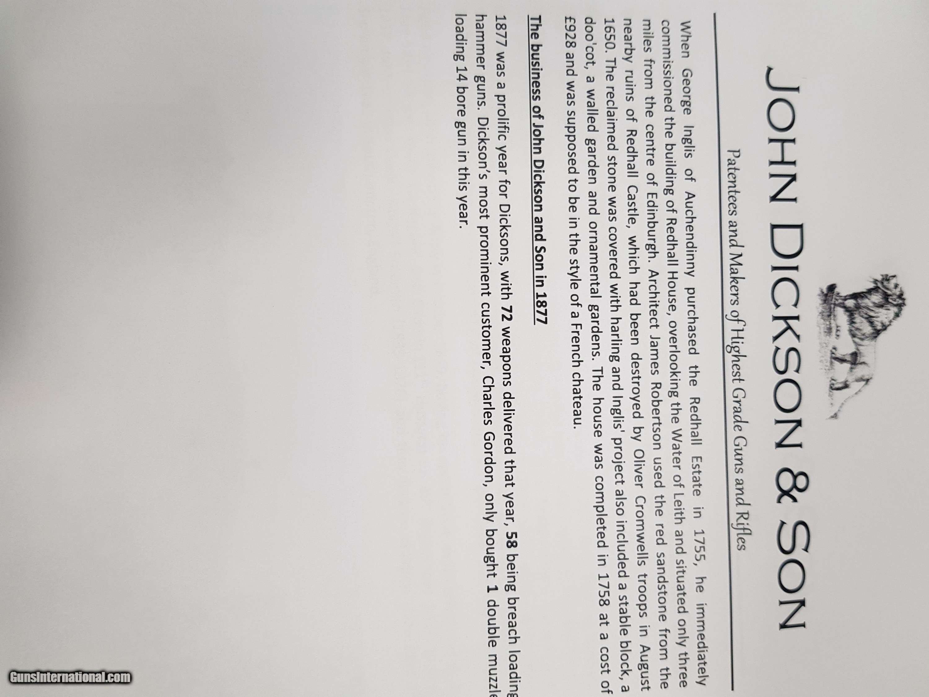 Description: A rare 16 bore Dickson recentley restocked by top British craftsman and resleeved . Price includes international shipping . SOLD Shotgun Gauge: 16 Gauge Manufacturer: Dickson Chambers: 2 1/2 Ejectors: No Barrel Type: Resleeved LOP: 15 1/4 Manufacture Date: 11 December 1877 Choke Left: 1/4 Choke Right: 1/2 Proof:Nitro: 2 1/2 |