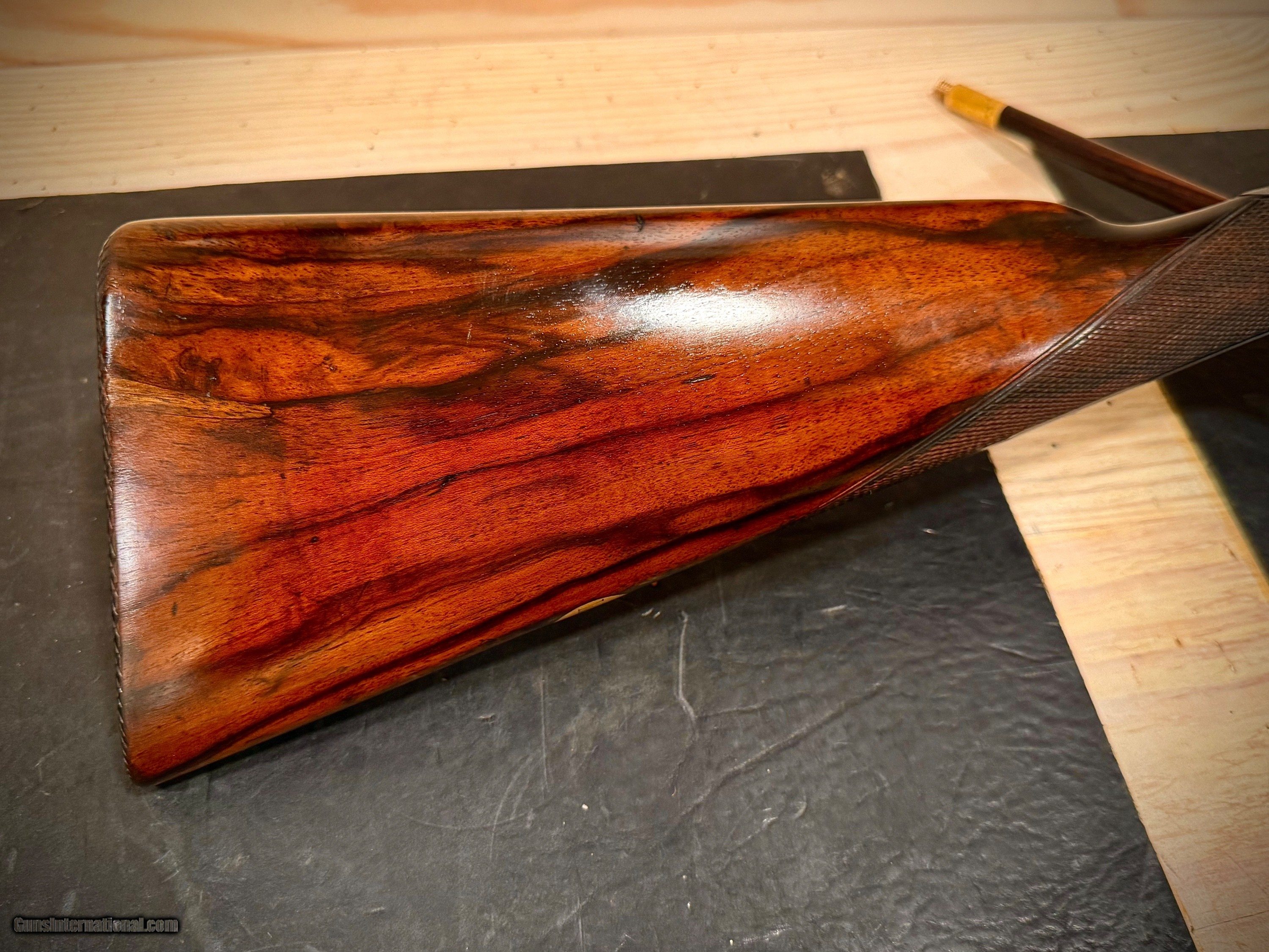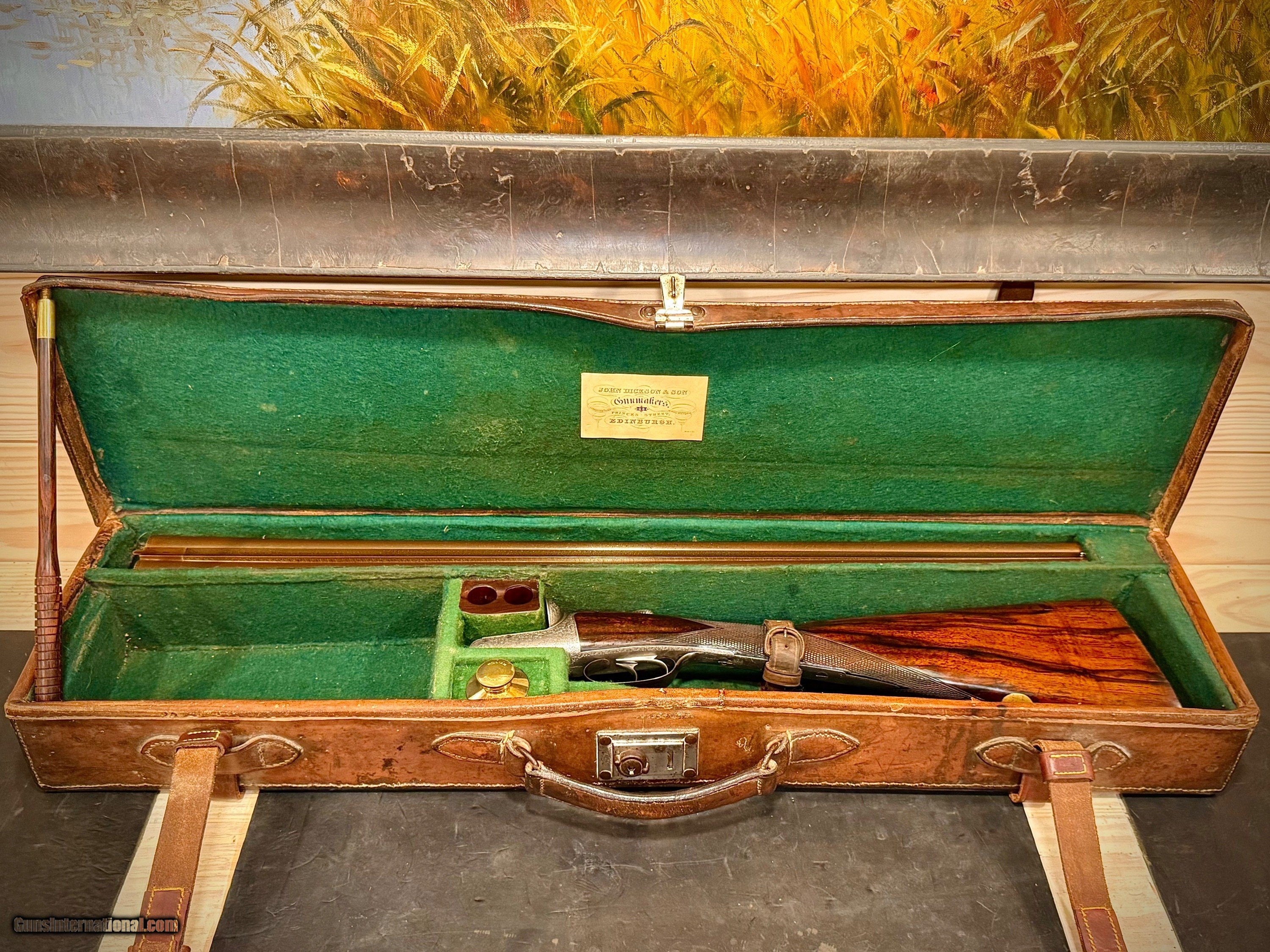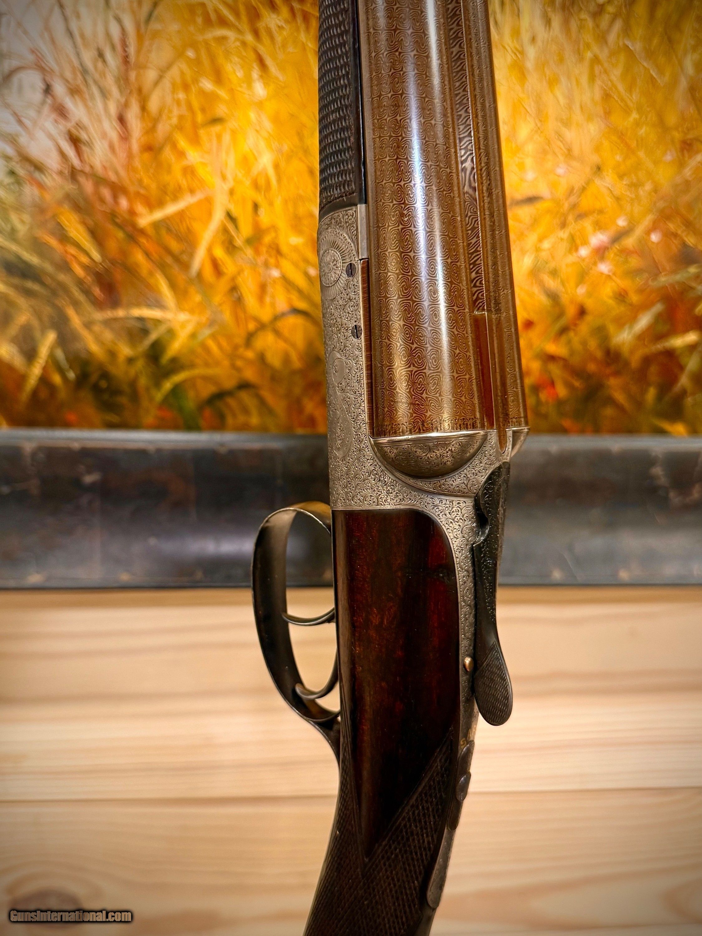 Description: Just arrived from a private collection. John Dickson & Son 12 bore round action ejector, serial number 46xx. Made in 1893, wall thickness measurements 24,000+th & 24,000+th. 28” barrels 15” stock, original proof marks. Widely regarded as Scotland’s finest gunmaker, with his round-action guns on par with Holland, Purdey & Boss. In Dickson gun case. Beautiful old growth wood, the damascus pattern on the barrels and rib are exceptional and a work of art. Feel free to give us a call to discuss a price out the door, shipping to an FFL of your choice. Cash, Check, Money Order or Credit Card - (3% fee) Also be sure to stop by our gun vault, located on our to see new Beretta, Rizzini and Krieghoff inventory. selwoodfarm/gun-vault/ Price: $19,500.00 Contact Seller |